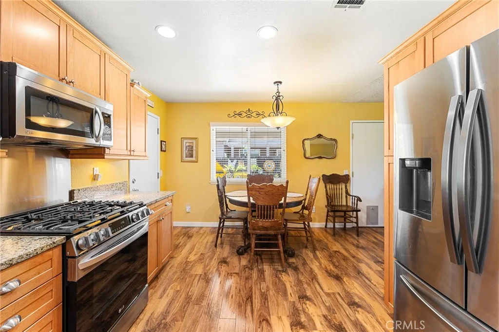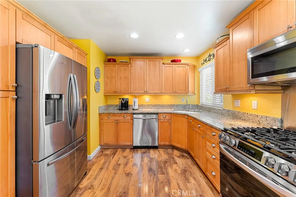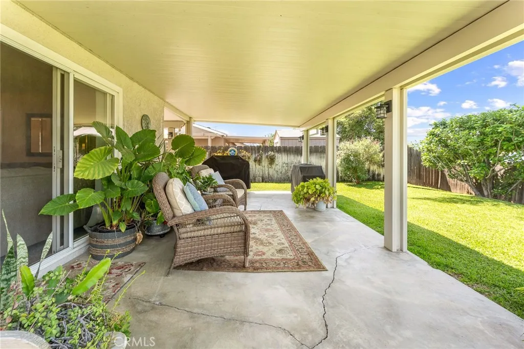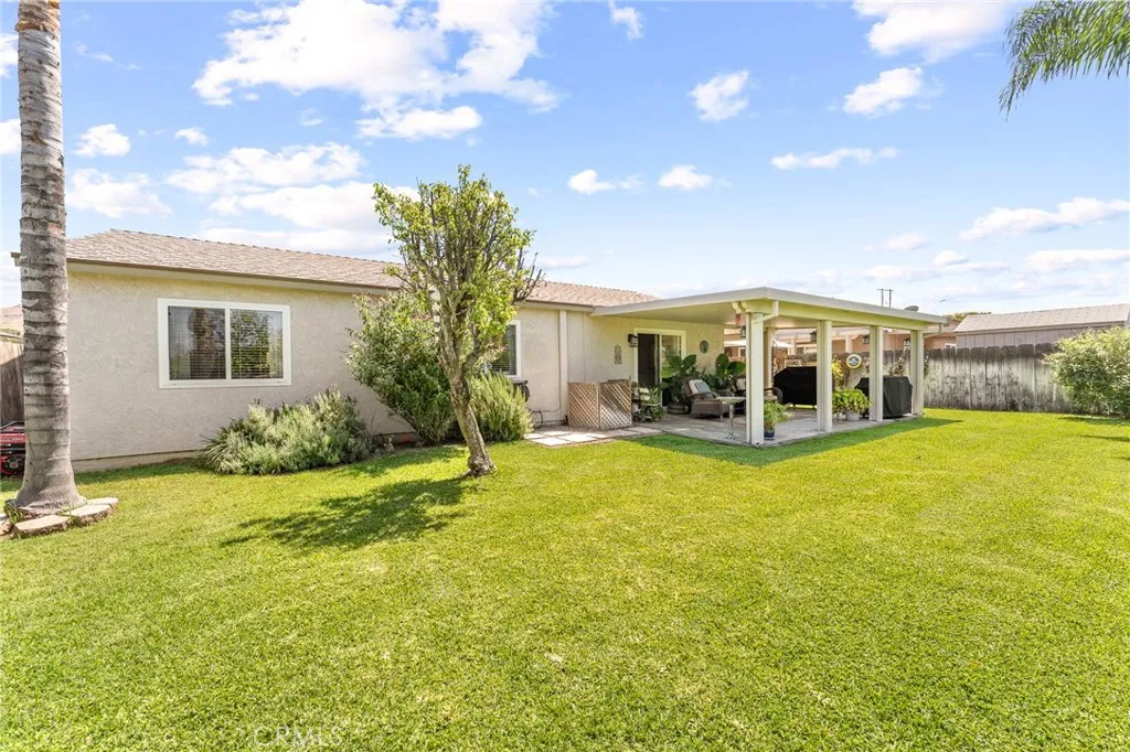 Welcome to your new home in the charming community of Grand Terrace! This delightful residence features three spacious bedrooms and two bathrooms, perfect for first time buyers, families or those seeking extra space. The heart of the home is the beautifully updated kitchen, equipped with new appliances, pullout cabinets for easy access, and modern recessed lighting that creates a warm and inviting atmosphere. Best of all, the refrigerator is included, making your move-in process a breeze. The cozy living room offers a comfortable space to relax and entertain, while the landscaped backyard becomes your personal oasis. With a large covered patio, it’s ideal for outdoor gatherings or simply enjoying a quiet morning coffee. The home also boasts a roof that’s only about seven years old and newer windows, ensuring both functionality and energy efficiency. This property is a perfect blend of comfort and style, and waiting for you to make it your own. Close to schools, shopping, about 10 minutes to Loma Linda University and centrally located to the freeways.
