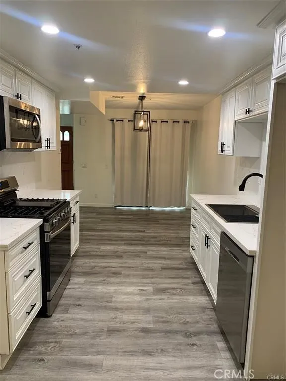 Lovely updated 3 bedroom and 2.5 bath two-story townhome in a prime Monrovia location. Enter into the living room to find vaulted ceiling, fireplace, and a versatile dining area. The remodeled kitchen features quartz countertops, tiled backsplash, and plenty of counter space. A laundry room, powder room, and direct access to the private attached 2-car garage. Upstairs you'll find a spacious primary suite with private bath, dual sink vanities, and abundant closet space. There are two additional spacious bedrooms and another full bath in the hall. Two private outdoor patios offer opportunities for lounging, dining or BBQ. Additional features include: Central AC and Heating and newer laminator floor. Conveniently close by to diverse blend of great shops/restaurants and supermarkets. Trader Joe's, Starbucks, and new In-n-Out Burger just down the street on Huntington Drive. The growing popular and vibrant Old Town Monrovia off Myrtle Ave - all within a few minutes by car. Santa Anita Golf Course and Arcadia County Park as well as other local parks and recreation within 1-2 mile proximity. Half-mile 10 min walk to nearby light rail station's access to Metro A 'Blue' line. 15 minute drive to Pasadena and 5 minutes to Arcadia (all time was estimated). Property address is zoned to the most sought-after Monrovia High School...