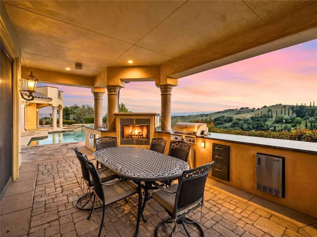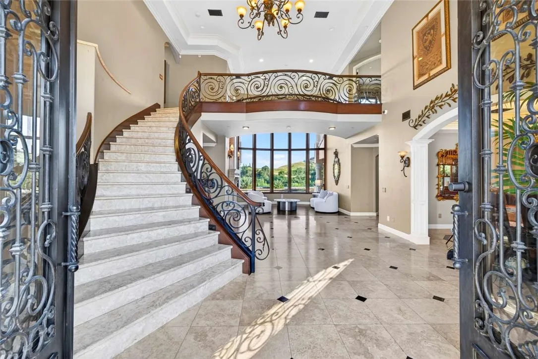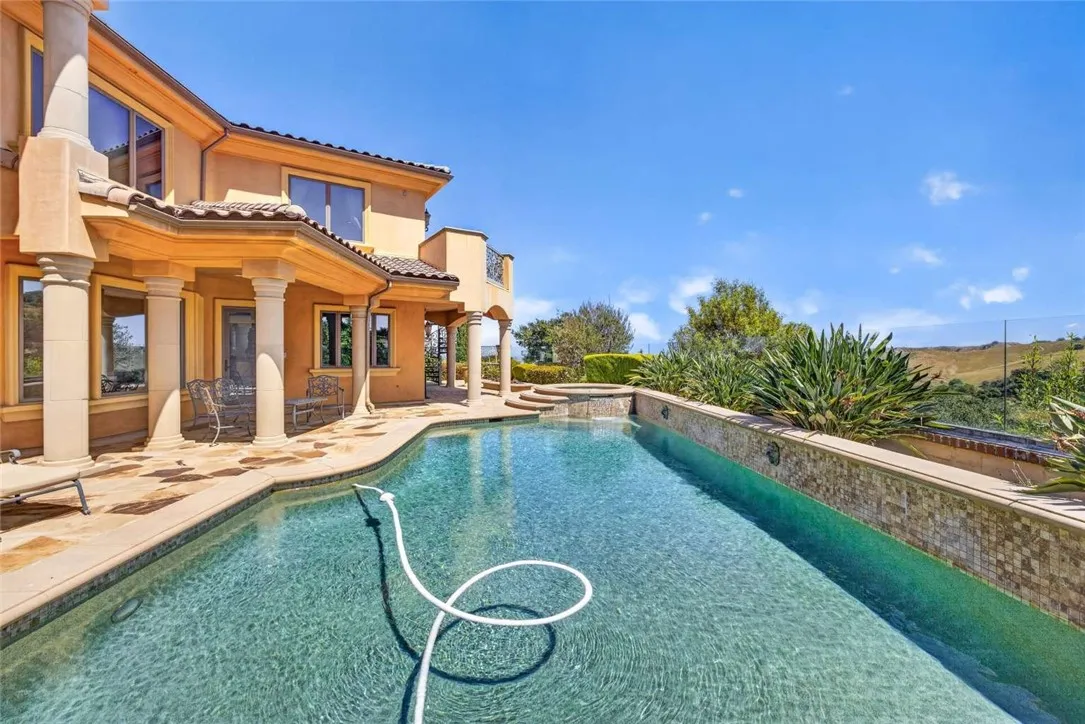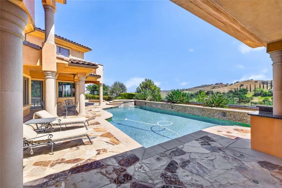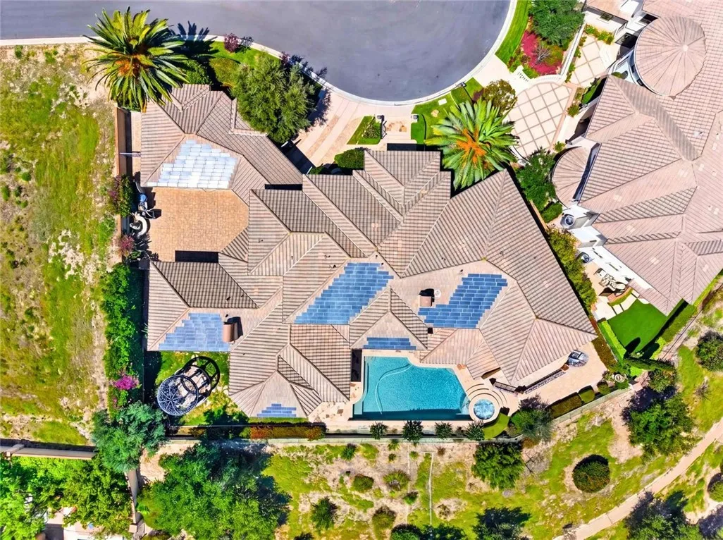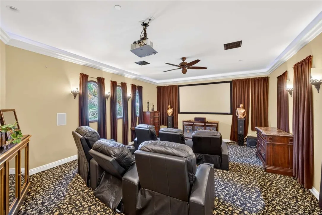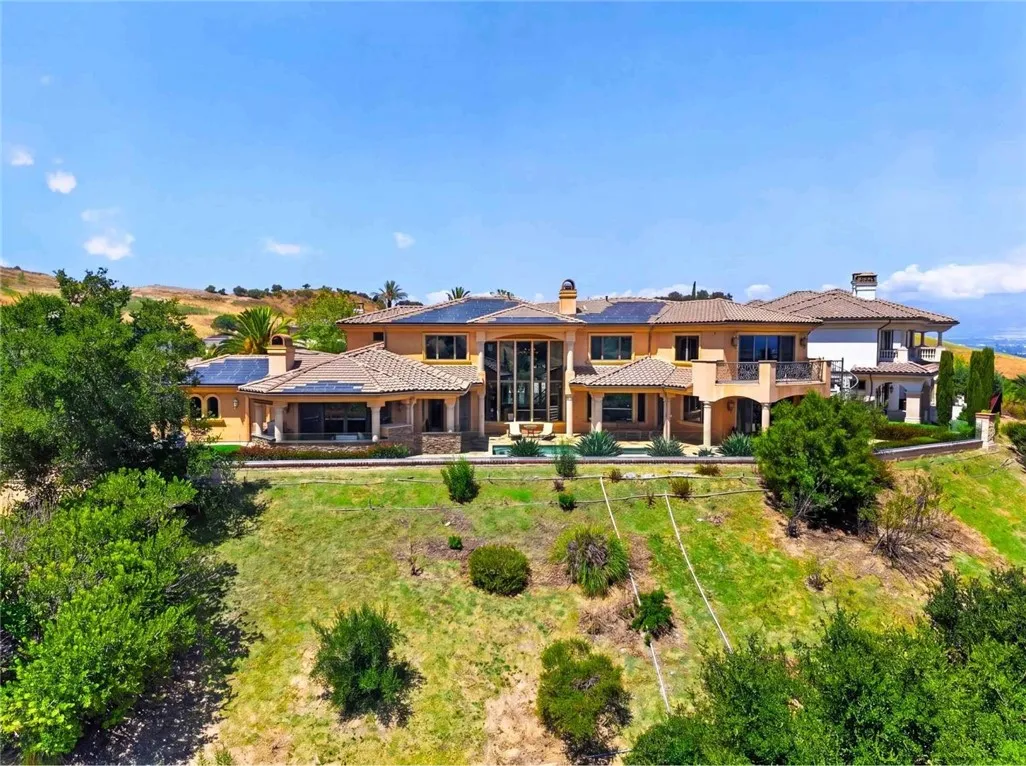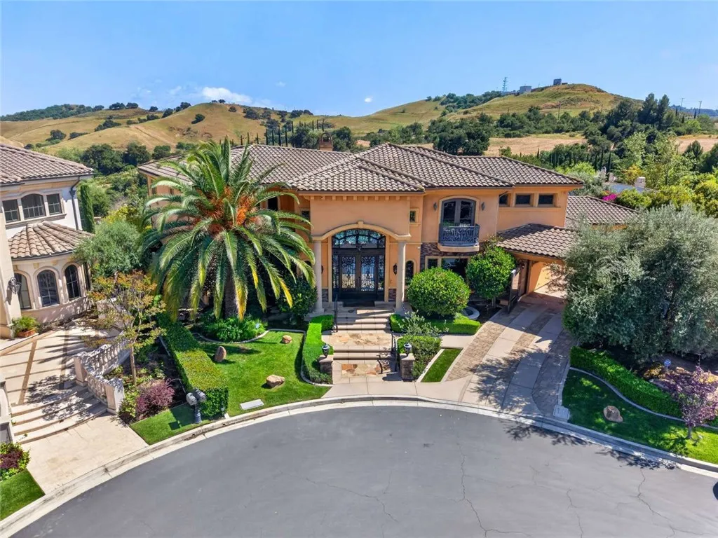 Stunning Cornell Custom Home nestled within the prestigious Vellano Private Gated Community in Chino Hills. Built in 2008, this magnificent two-story estate offers 7,434 square feet of Italian-inspired architecture with soaring ceilings, an open floorplan, and panoramic city light and hillside views. The chef's kitchen features a butler's pantry, walk-in pantry, stone counters, and a large center island that opens seamlessly to the great room — ideal for grand entertaining. Five bedrooms and six spa-caliber bathrooms with jetted tubs, dual sinks, granite counters, and multiple shower heads throughout. Grand interiors showcase formal dining, a full bar, gas fireplaces, and whole-home sound wiring. The private in-home theatre provides an unparalleled entertainment experience. A rare detached guest structure sits on a 14,712 square foot lot. The resort-style backyard features a pool, spa, deck, and covered lanai beneath breathtaking panoramic views of the city lights and surrounding hills. Premium flooring in stone, hardwood, and carpet throughout. Zoned central air and heating. Full laundry room. Three-car garage. The Vellano Country Club golf course is reopening soon, further elevating the lifestyle and long-term value of this extraordinary property. 24-hour guard-gated community with resort amenities. Just 45 minutes from Los Angeles.
