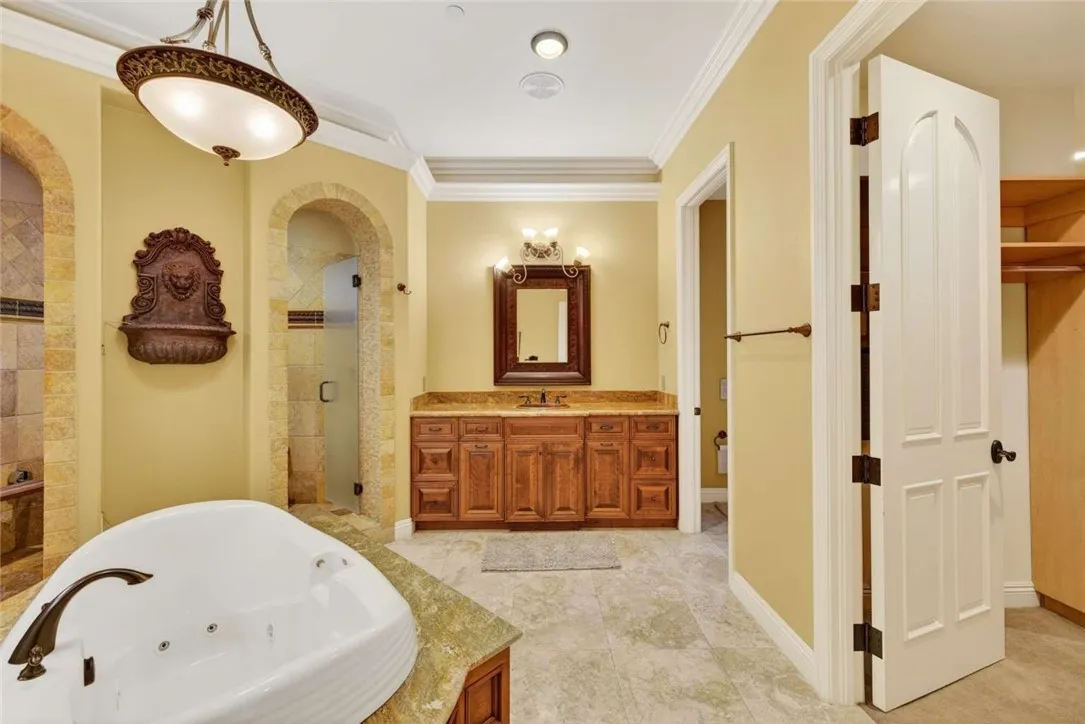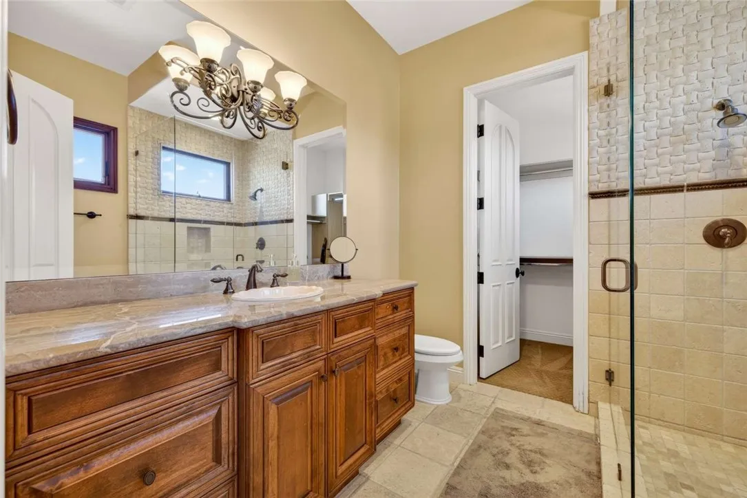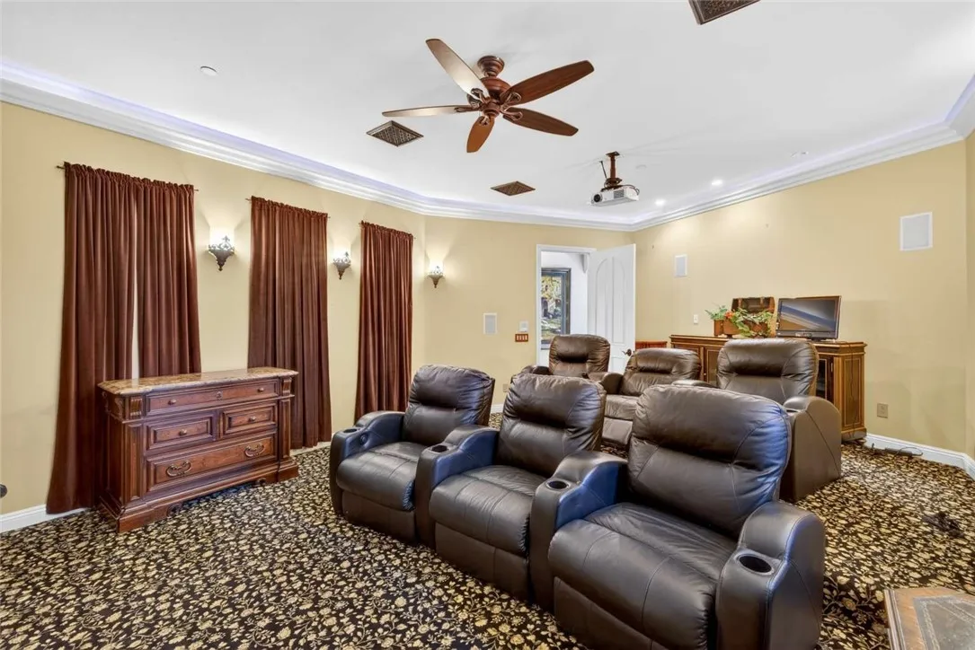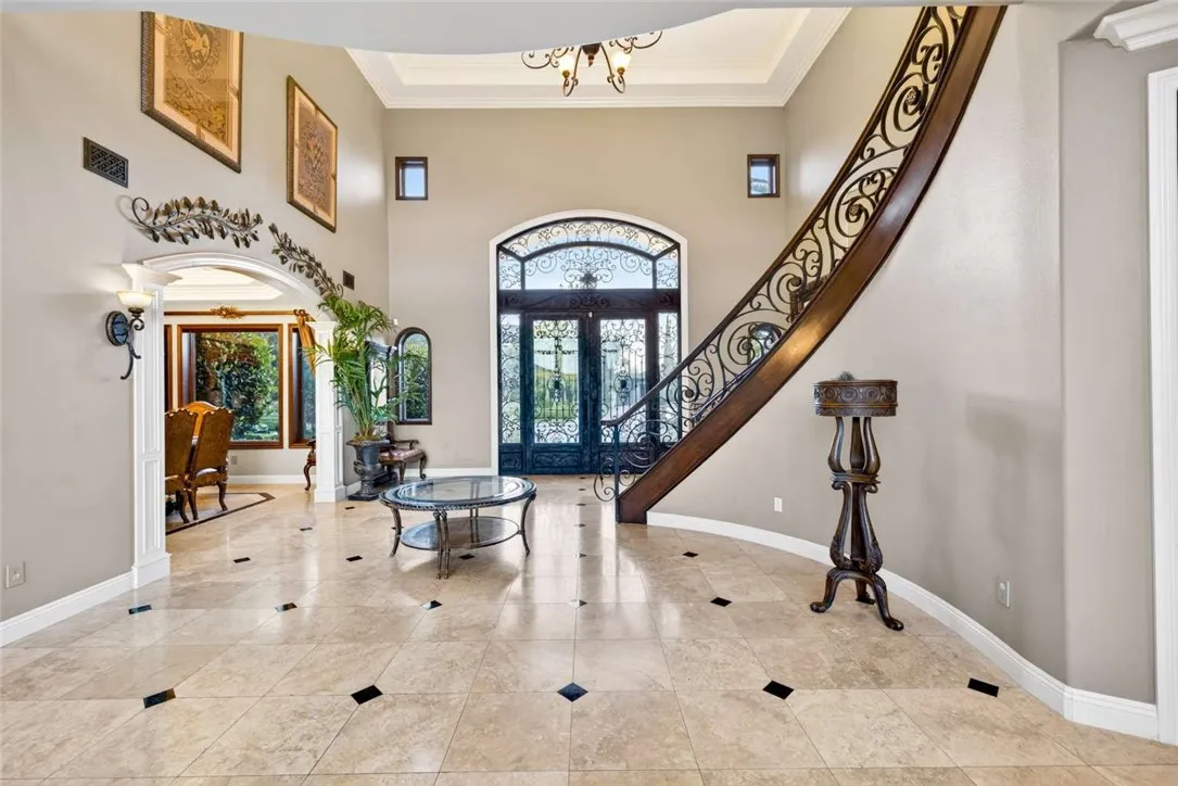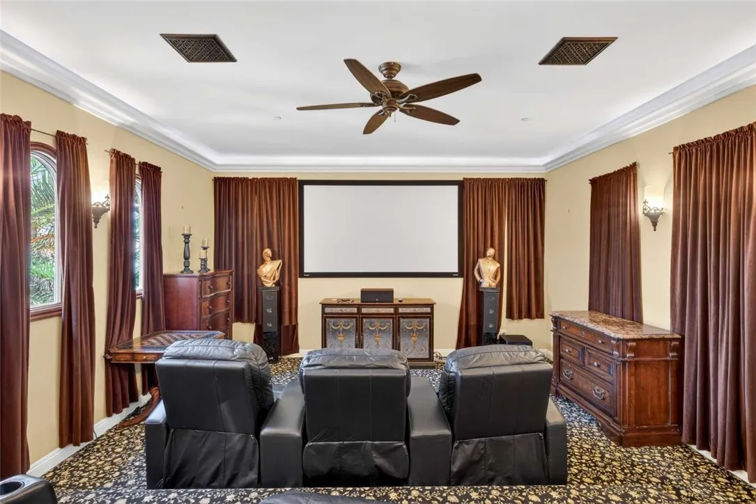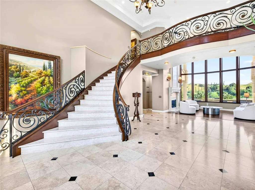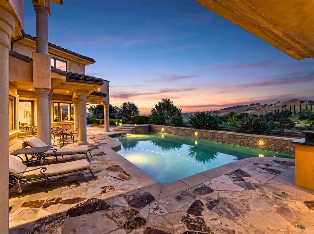 Stunning Cornell Custom Home nestled within the prestigious Vellano Private Gated Community in Chino Hills. Built in 2008, this magnificent two-story estate offers 7,434 square feet of Italian-inspired architecture with soaring ceilings, an open floorplan, and panoramic city light and hillside views. The chef's kitchen features a butler's pantry, walk-in pantry, stone counters, and a large center island that opens seamlessly to the great room — ideal for grand entertaining. Five bedrooms and six spa-caliber bathrooms with jetted tubs, dual sinks, granite counters, and multiple shower heads throughout. Grand interiors showcase formal dining, a full bar, gas fireplaces, and whole-home sound wiring. The private in-home theatre provides an unparalleled entertainment experience. A rare detached guest structure sits on a 14,712 square foot lot. The resort-style backyard features a pool, spa, deck, and covered lanai beneath breathtaking panoramic views of the city lights and surrounding hills. Premium flooring in stone, hardwood, and carpet throughout. Zoned central air and heating. Full laundry room. Three-car garage. The Vellano Country Club golf course is reopening soon, further elevating the lifestyle and long-term value of this extraordinary property. 24-hour guard-gated community with resort amenities. Just 45 minutes from Los Angeles.