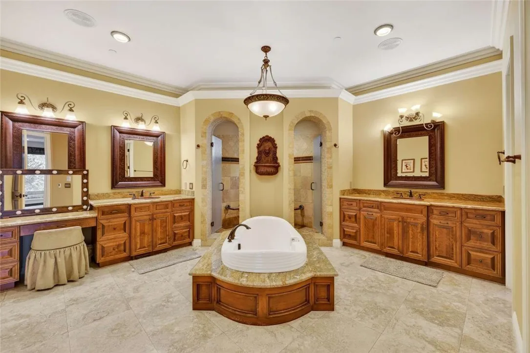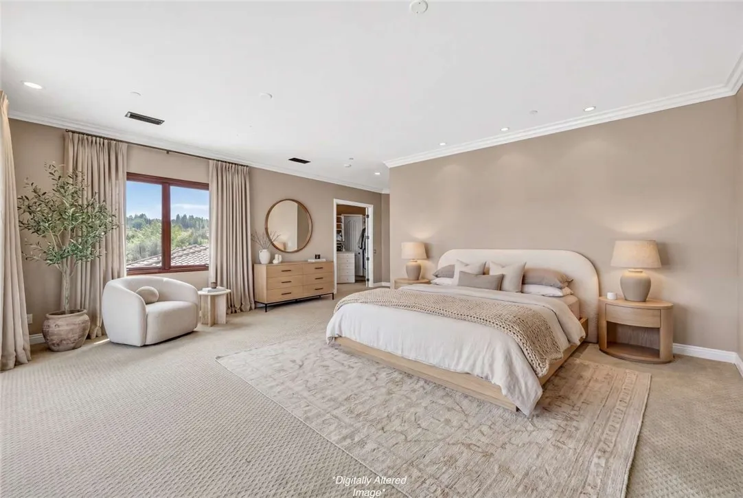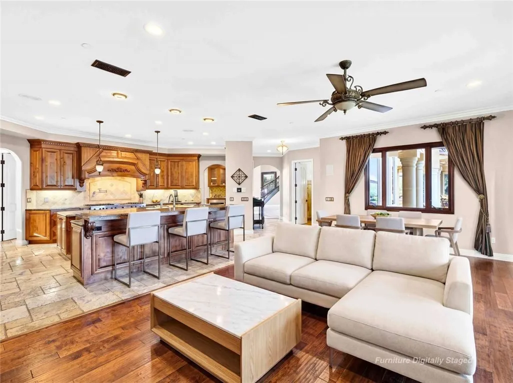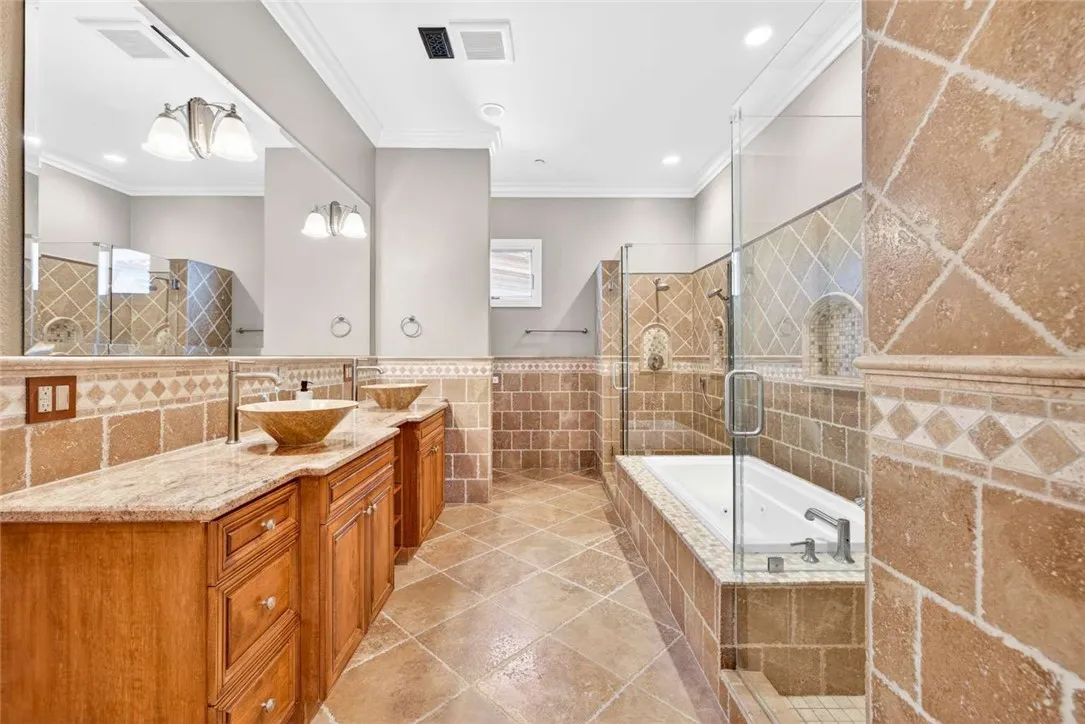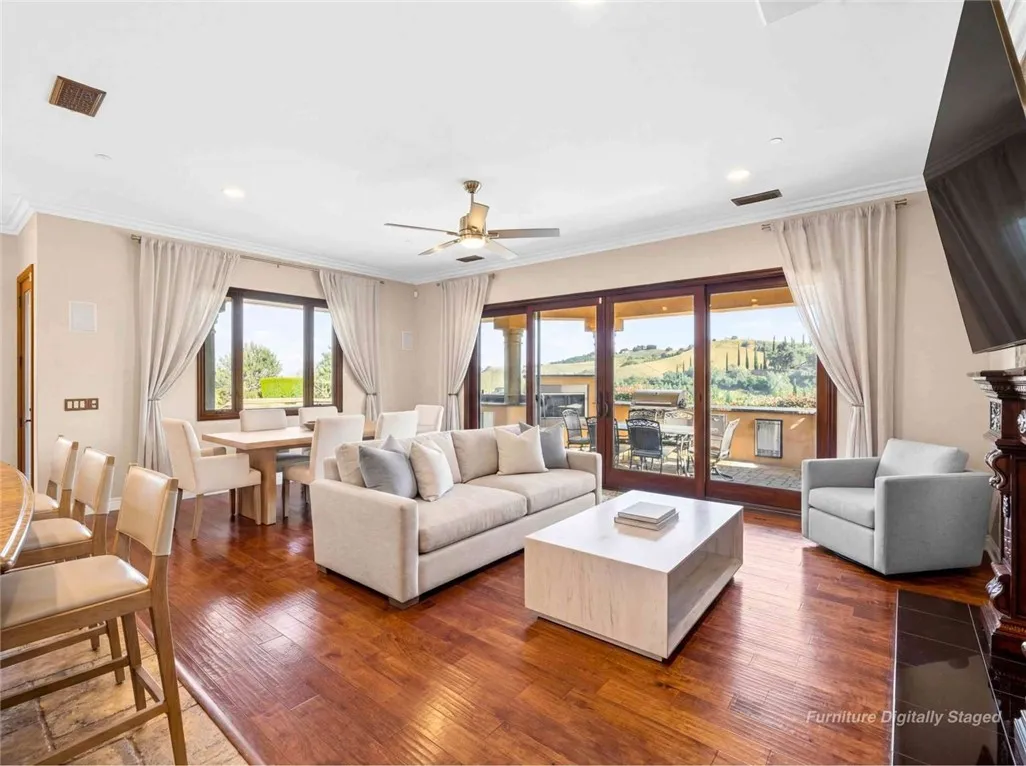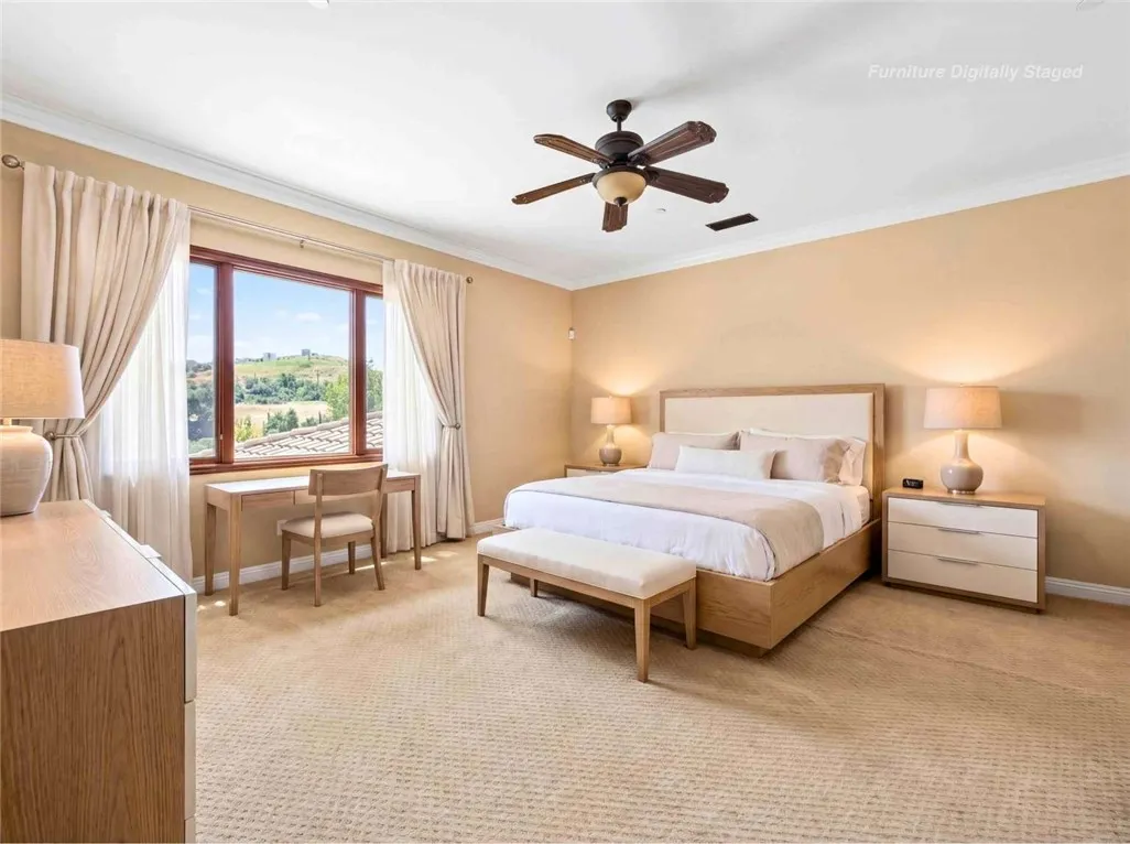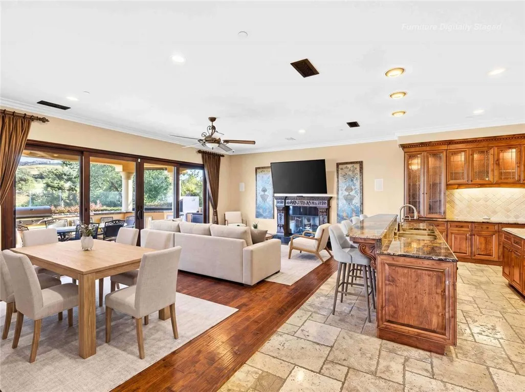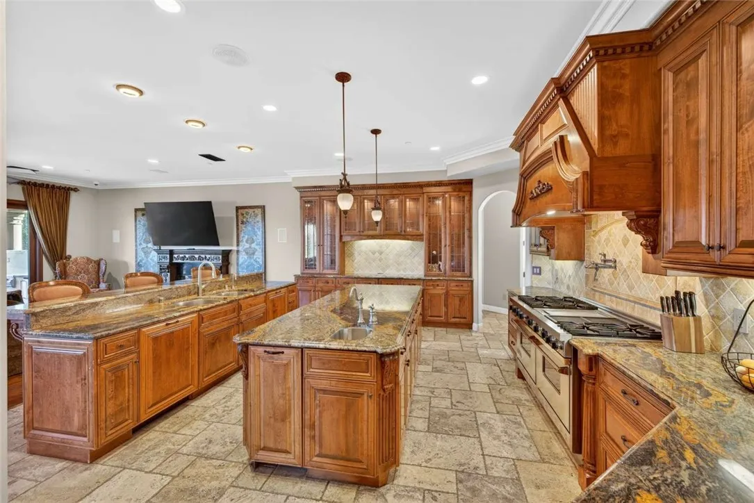 Stunning Cornell Custom Home nestled within the prestigious Vellano Private Gated Community in Chino Hills. Built in 2008, this magnificent two-story estate offers 7,434 square feet of Italian-inspired architecture with soaring ceilings, an open floorplan, and panoramic city light and hillside views. The chef's kitchen features a butler's pantry, walk-in pantry, stone counters, and a large center island that opens seamlessly to the great room — ideal for grand entertaining. Five bedrooms and six spa-caliber bathrooms with jetted tubs, dual sinks, granite counters, and multiple shower heads throughout. Grand interiors showcase formal dining, a full bar, gas fireplaces, and whole-home sound wiring. The private in-home theatre provides an unparalleled entertainment experience. A rare detached guest structure sits on a 14,712 square foot lot. The resort-style backyard features a pool, spa, deck, and covered lanai beneath breathtaking panoramic views of the city lights and surrounding hills. Premium flooring in stone, hardwood, and carpet throughout. Zoned central air and heating. Full laundry room. Three-car garage. The Vellano Country Club golf course is reopening soon, further elevating the lifestyle and long-term value of this extraordinary property. 24-hour guard-gated community with resort amenities. Just 45 minutes from Los Angeles.