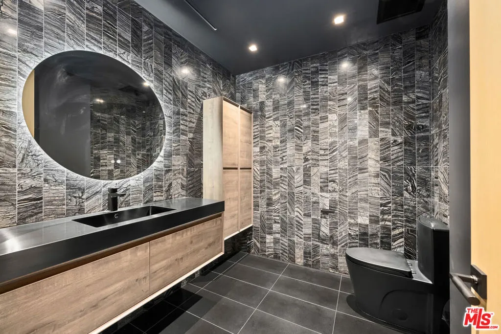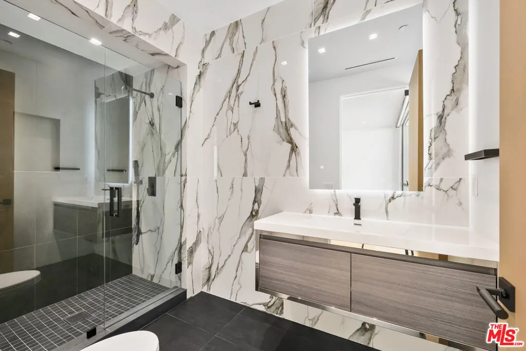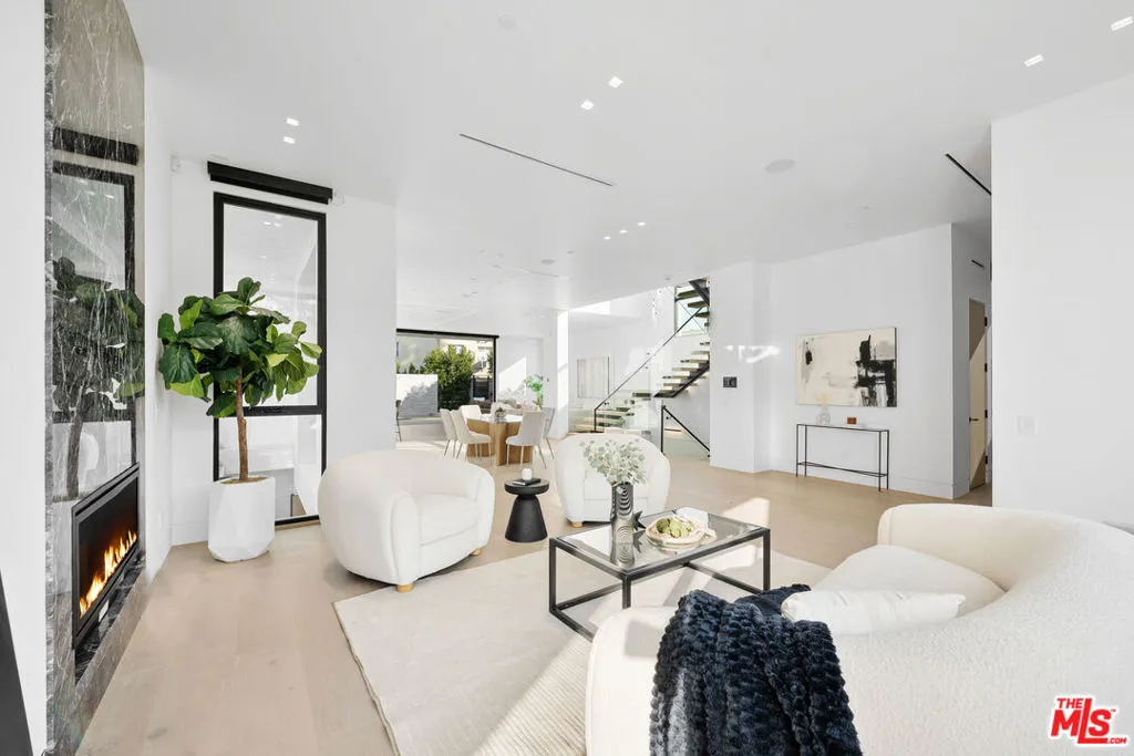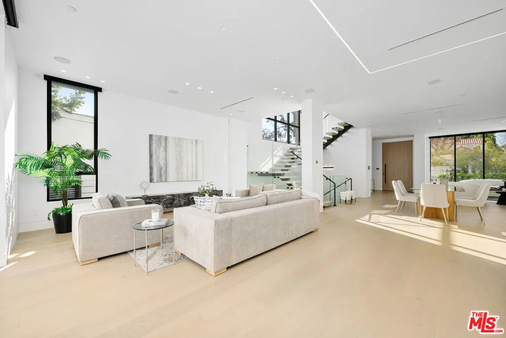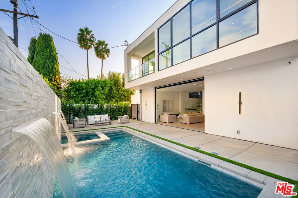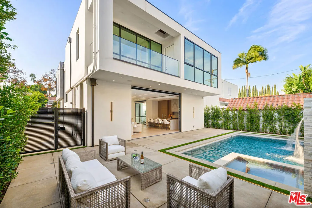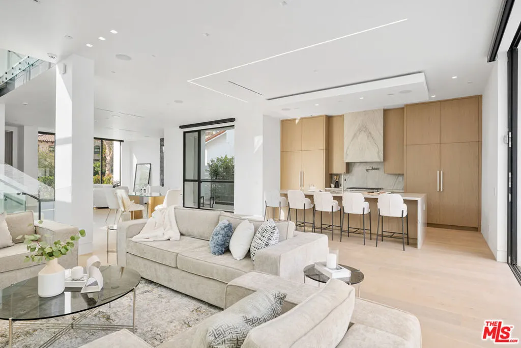 Presenting a masterpiece of luxury, technology, and design: Welcome to this custom-built, architectural gem in the heart of Beverly Hills. Nearly four years of meticulous planning and construction culminated in a stunning home that offers a refined living experience like no other. This state-of-the-art two-story plus basement single-family home offers easy access to the best of Beverly Hills, Beverly Wood, and West Hollywood. This one-of-a-kind residence seamlessly blends luxury, comfort, and cutting-edge technology. Step past the grand pivot door, one enters a massive open space with wide-plank white oak floors and is greeted by an impressive staircase with a sleek glass railing. Designed for open-concept living, the first floor effortlessly flows between the formal living and dining areas, gourmet kitchen, and outdoor space. The formal living area features a beautiful gas fireplace with a marble accent wall. The kitchen is a chef's dream, featuring custom-made wood cabinetry and top-of-the-line Miele appliances, including a refrigerator, freezer, gas range, oven, and microwave. The kitchen features two full-height cabinets with drawers and retractable pocket doors with a countertop continuing through it. This space can be utilized for countertop appliances or as a coffee station. The massive island comfortably seats 5 people and is great for entertaining and for eating on the go. The kitchen island, hood, and countertops are wrapped in a meticulously curated, one-of-a-kind Denali white premium quartzite stone. Fleetwood pocket doors disappear into the walls, creating a seamless indoor-outdoor transition to a stunning outdoor area featuring a swimming pool with waterfalls, a whirlpool jacuzzi, and a lounge area. Ascend the enormous stairway to discover four additional bedrooms featuring en-suite bathrooms. The primary suite offers a fabulous view of the pool, a private patio, and a spa-like bathroom featuring a freestanding tub and one of Beverly Hills' best makeup vanities. Live like royalty with the primary bedroom's expansive closet built with a custom linen finish. Flooded with natural light, the basement feels anything but underground. It offers a versatile open space perfect for entertaining or relaxing. Highlights include a sleek bar with a marble countertop and a flexible area for a pool and poker table. The basement also includes a well-appointed guest suite with an en-suite bathroom and access to its outdoor patio. This room may also be utilized as a maid's room, office, or fitness room. A massive laundry room with ample storage is also situated in the basement. The home is equipped with three independently operated AC systems for the basement, first and second floor, alarm, security cameras, and electronic shades. This exquisite residence is ready for occupancy in June 2026. Admission to Beverly Hills schools is now within reach, without purchasing a $10 to $20 million residence.