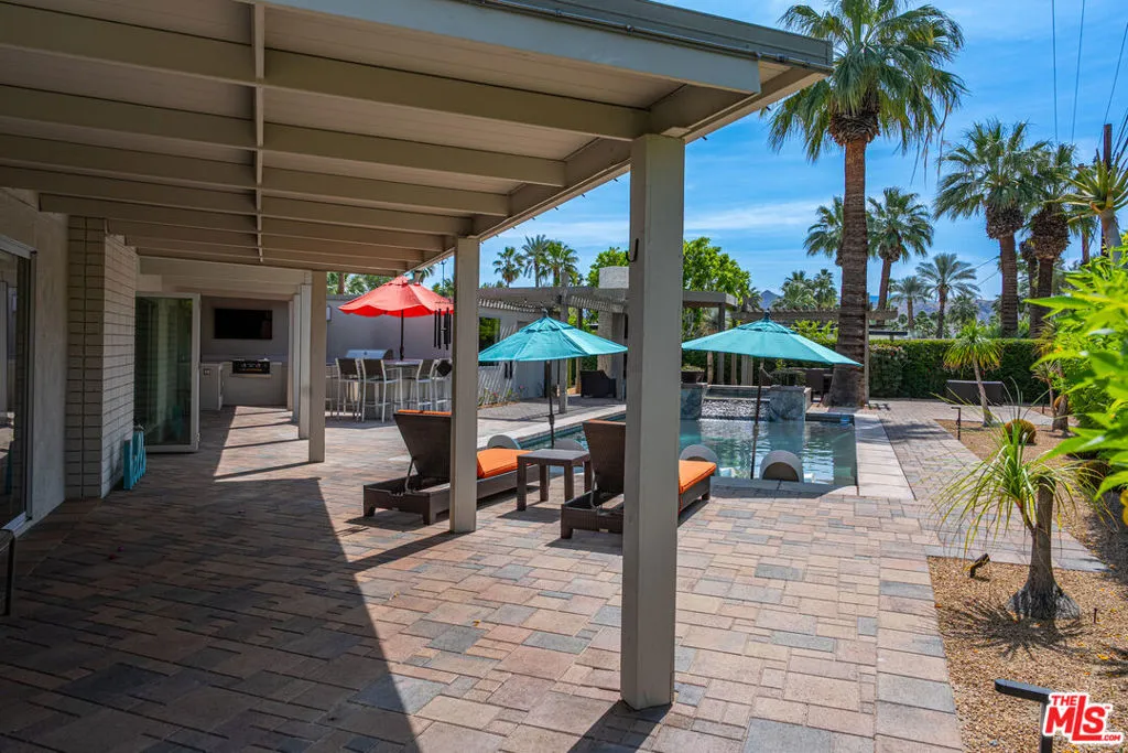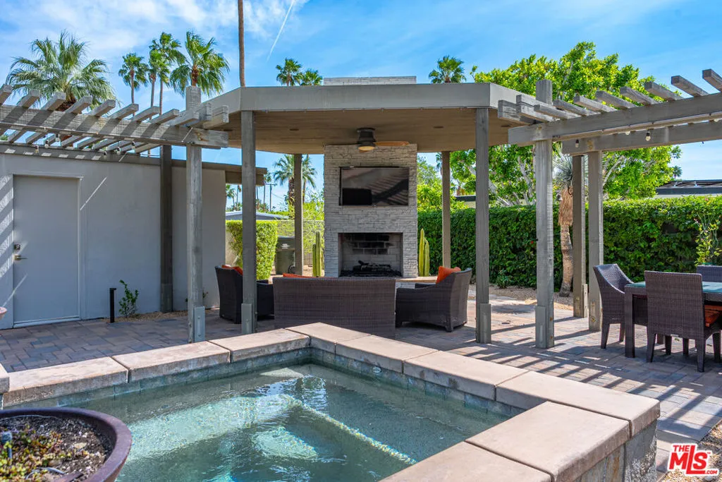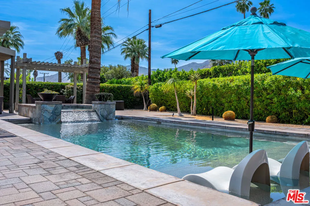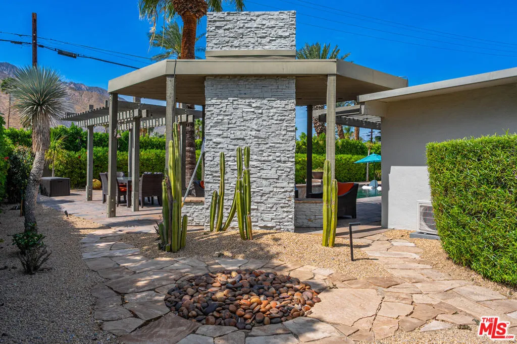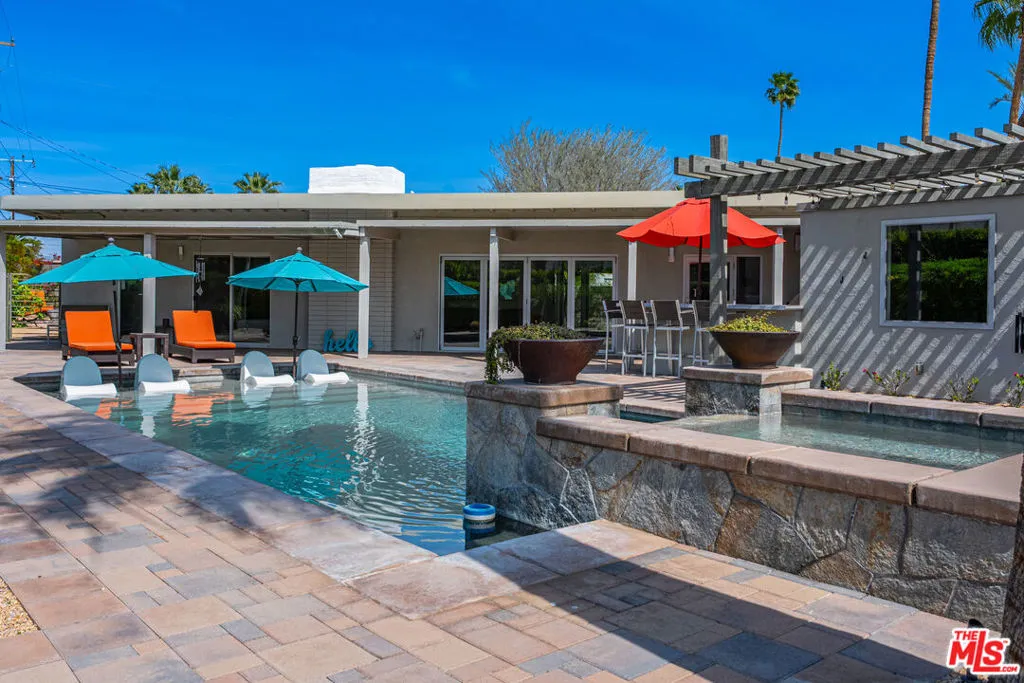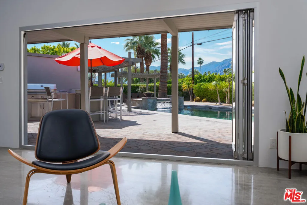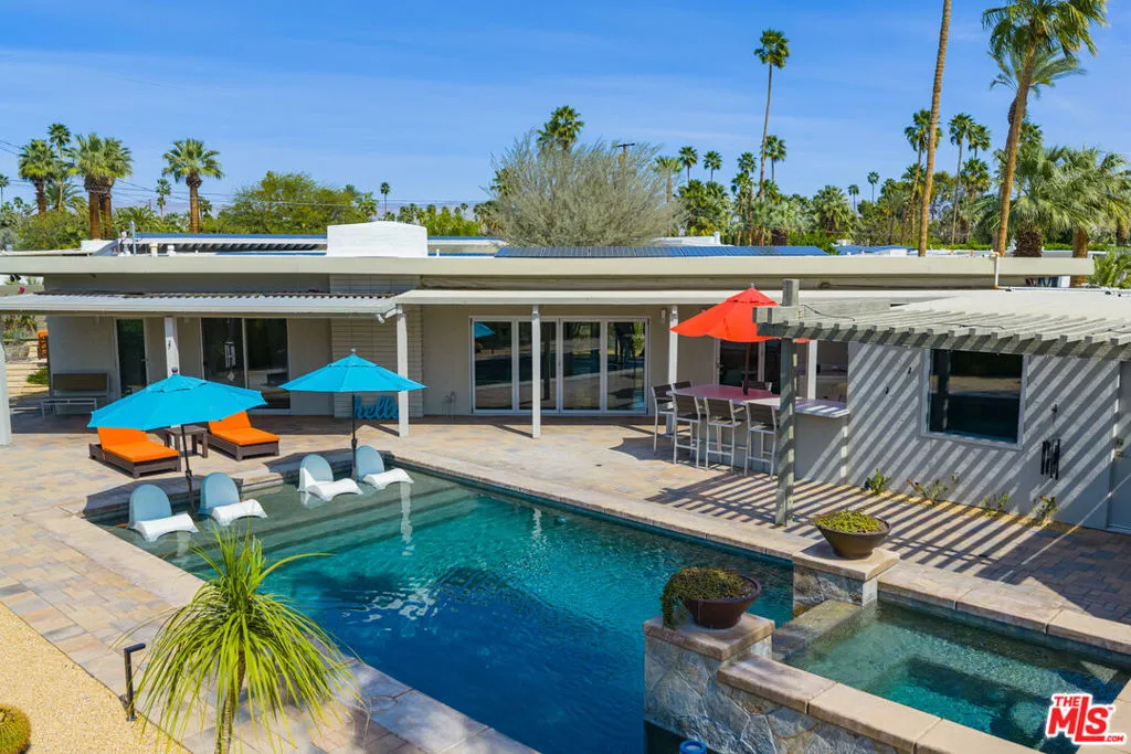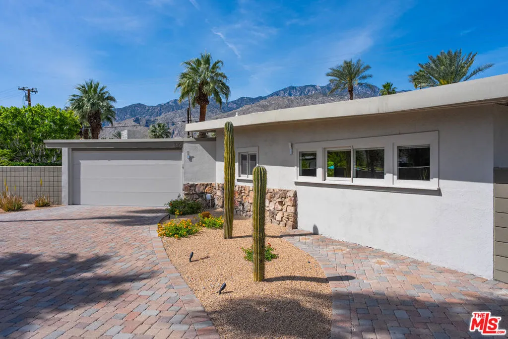 Set against a dramatic mountain backdrop in the coveted Sunrise Park enclave, this fully reimagined mid-century residence delivers the rare balance of architectural clarity and resort-level living. Renovated top-to-bottom, every inch of the home has been thoughtfully curated to reflect both modern design and the effortless indoor-outdoor lifestyle Palm Springs is known for. A seamless open-concept layout unfolds beneath polished concrete floors, where expansive glass blurs the line between interior living and the lush outdoor retreat beyond. The kitchen features custom cabinetry, sleek countertops, and a complete suite of upgraded appliances designed as much for entertaining as for everyday living. The primary suite offers a private sanctuary with direct access to the backyard, while two additional guest bedrooms provide comfort and flexibility, complemented by beautifully remodeled baths with designer tile, modern vanities, and frameless glass enclosures. Outside, the experience elevates. Set on an expansive lot, the grounds are a curated desert landscape with intentional lighting, and multiple zones designed for gathering and retreat. A sparkling pool and elevated spa anchor the space, while the fully redesigned outdoor kitchen creates a true entertainer's environment. Additional upgrades include Milgard aluminum windows, upgraded electrical and plumbing systems, solid core doors throughout, mineral wool insulation for enhanced efficiency, and a 34-panel (owned) solar system paired with updated HVAC for modern sustainability. The garage has also been finished with epoxy floors, climate control, and workspace functionality, offering flexibility for creative or practical use. This is not a cosmetic remodel, this is a comprehensive reinvention, where design, infrastructure, and lifestyle converge in one of Palm Springs' most desirable neighborhoods.