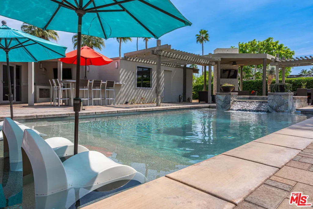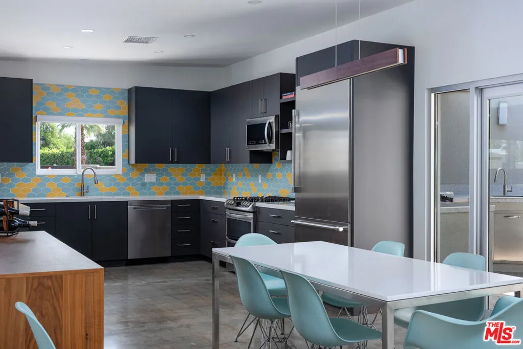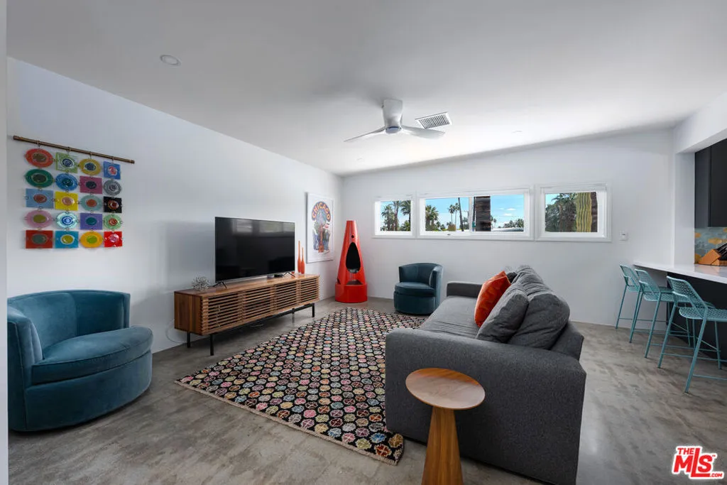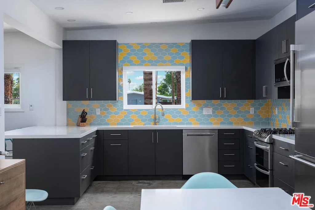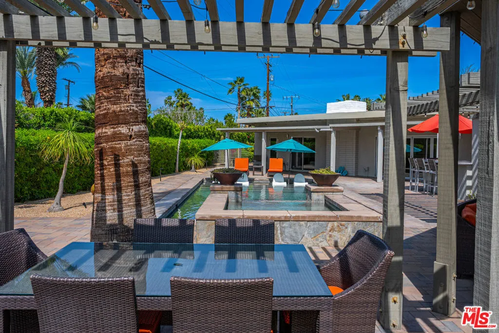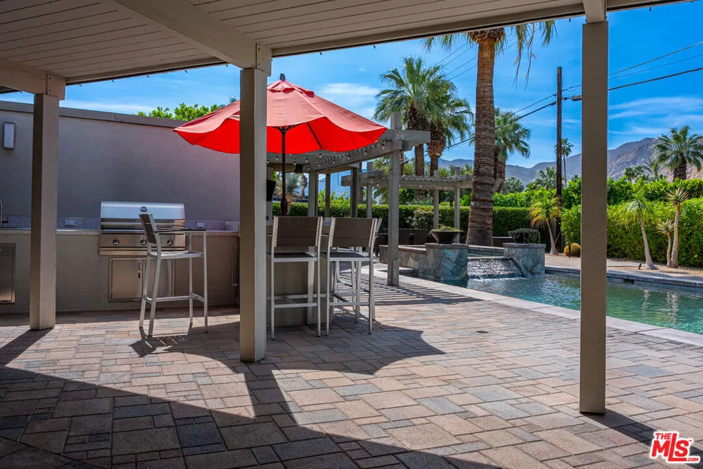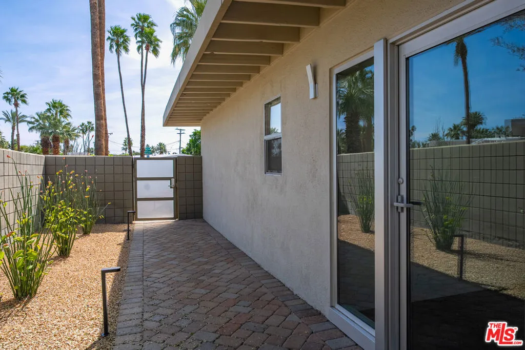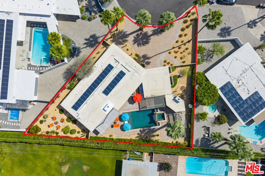 Set against a dramatic mountain backdrop in the coveted Sunrise Park enclave, this fully reimagined mid-century residence delivers the rare balance of architectural clarity and resort-level living. Renovated top-to-bottom, every inch of the home has been thoughtfully curated to reflect both modern design and the effortless indoor-outdoor lifestyle Palm Springs is known for. A seamless open-concept layout unfolds beneath polished concrete floors, where expansive glass blurs the line between interior living and the lush outdoor retreat beyond. The kitchen features custom cabinetry, sleek countertops, and a complete suite of upgraded appliances designed as much for entertaining as for everyday living. The primary suite offers a private sanctuary with direct access to the backyard, while two additional guest bedrooms provide comfort and flexibility, complemented by beautifully remodeled baths with designer tile, modern vanities, and frameless glass enclosures. Outside, the experience elevates. Set on an expansive lot, the grounds are a curated desert landscape with intentional lighting, and multiple zones designed for gathering and retreat. A sparkling pool and elevated spa anchor the space, while the fully redesigned outdoor kitchen creates a true entertainer's environment. Additional upgrades include Milgard aluminum windows, upgraded electrical and plumbing systems, solid core doors throughout, mineral wool insulation for enhanced efficiency, and a 34-panel (owned) solar system paired with updated HVAC for modern sustainability. The garage has also been finished with epoxy floors, climate control, and workspace functionality, offering flexibility for creative or practical use. This is not a cosmetic remodel, this is a comprehensive reinvention, where design, infrastructure, and lifestyle converge in one of Palm Springs' most desirable neighborhoods.