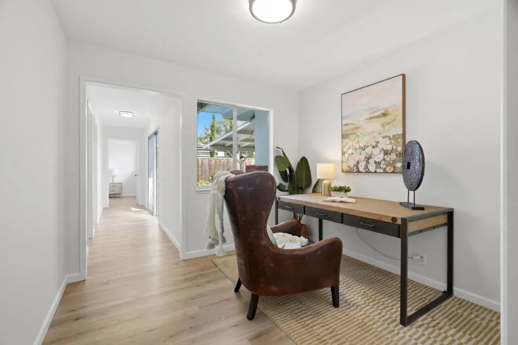 Welcome home to 1763 Walnut Drive , a beautiful single story residence located on a quiet, tree lined street in the highly regarded Blossom Valley neighborhood near Los Altos border with distinguished schools. This thoughtfully designed home offers 4 bedrooms plus an office, 3 bathrooms and 1,920 sqft of bright open living space. The spacious living and dining area connect effortlessly to the private backyard for a seamless indoor outdoor living. This gorgeous home features a functional kitchen, a family room along with a bonus versatile space perfect for a homework station or large pantry area. Additional highlights include central heating and cooling, new interior and exterior paint, new Luxury Vinyl Plank floors and recessed lighting. The private backyard retreat offers a covered patio, curved brick hardscape and multiple areas for relaxing and entertaining. Walking and biking distance to top rated schools and Cuesta Park. Ideally Located just minutes from downtown Los Altos and downtown Mountain View as well as parks, shopping, dining, Caltrain and major Tech employers. This home offers the perfect blend of comfort and convenience in a prime Silicon Valley Location. This one is a MUST SEE!