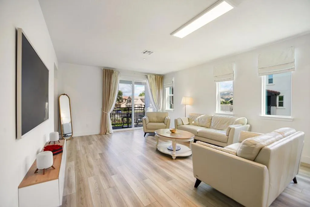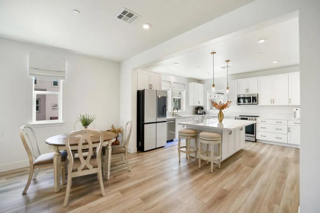 Welcome to this beautifully upgraded, like-new end-unit townhome, built in 2024, offering rare privacy, open outlooks, and abundant natural light. Ideally positioned to face greenery rather than neighboring homes, it creates a bright and airy feel throughout. The open-concept layout features a light-filled living space with large windows and seamless flow for everyday living and entertaining. Entire home upgraded to LVP Flooring. Enhanced by $55K+ in builder upgrades, plus high-end appliances, smart home features, Samsung Frame TVs, Solar and an attached two-car garage with epoxy flooring + EV charging. Enjoy a ground-floor bedroom and full bath for added flexibility, with spacious and bright bedrooms upstairs. Conveniently located near parks, shopping, dining, and major commuter routes- this is a RARE opportunity to own one of the best-situated homes in the community!!