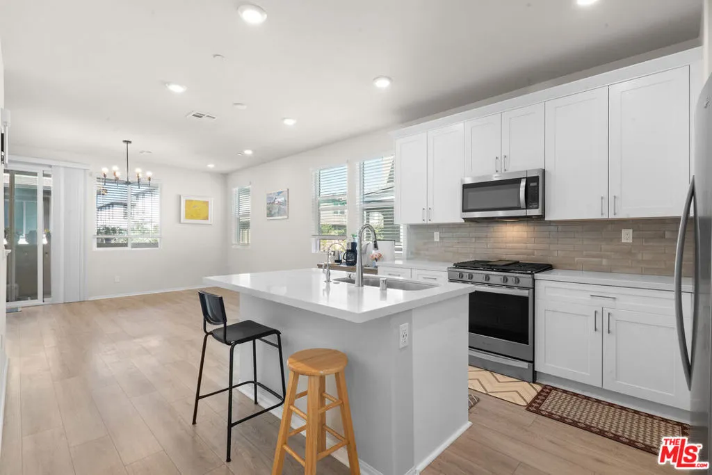 Brand new corner end unit townhouse located in a well maintained safe Stratus community boasting 10-year structural warranty in the city of Pomona. The best homesite lot in the Stratus community featuring premium location with views, two bay side by side garage, extra guest parking spaces and great privacy. First floor features a huge and expansive flex space for a family room or entertainment and as you step up to the second floor, you will be facing well upgraded living room, kitchen, office area, a bedroom and a full bath. Highly upgraded Interior including vinyl flooring throughout, premium backsplash over the quartz counter top, recessed lights all over and more. 3rd floor is your rest nest with good size master bedroom ensuite and another bedroom ensuite with views. Luxury appliances including stainless refrigerator, microwave, oven, washer and dryer are fully equipped. Not to mention fully paid off solar panels that saves you tons of energy. Don't forget the amenities within the community such as pool, barbecue, dog park, walking paths surrounded by well maintained landscaping, guest parking and more. It's also located in the best and easy traffic, right off of 10 fwy before meeting the interchanges.