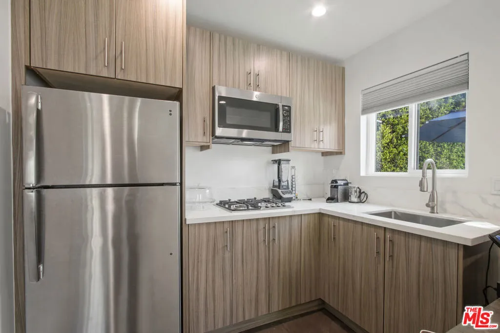 Fully Remodeled 4BR + Guesthouse Pool Home. Prime West LA Stunning, light-filled home offering 4 bedrooms and 3 bathrooms, plus a detached 1 bed / 1 bath guesthouse, perfect for a home office, gym, or private guest suite. Designed for modern living, the home features soaring 12-foot ceilings in the main living areas and primary suite, a high-end chef's kitchen, spacious closets, and a dedicated laundry room. Fully remodeled in 2018 with clean, contemporary finishes throughout. Step outside to a private backyard oasis with a sparkling pool and lush landscaping ideal for entertaining or relaxing in total privacy. Located on a quiet residential street in a prime West Los Angeles neighborhood, just minutes from top dining, shopping, and entertainment.
