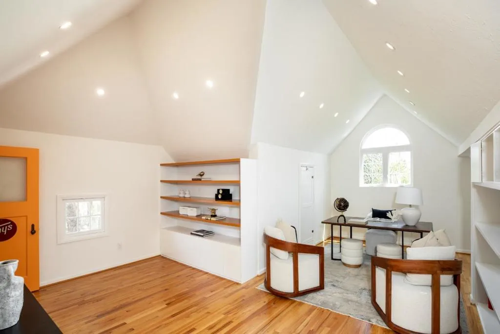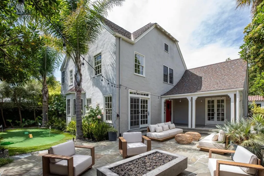 Set on a charming tree-lined street in the desirable South Gate neighborhood, this elegant Tudor blends timeless character with inviting indoor-outdoor living. Surrounded by mature landscapingincluding striking palm and olive treesthe property welcomes you with a covered front porch and expansive patio with a fire table, while the side yard features a putting green, and the rear offers a deck for al fresco dining. Inside, a formal entry leads to a stunning LR w/ soaring vaulted ceilings, a FP, and abundant natural light. A bright formal DR opens to the front patio, and the handsome eat-in kit boasts SS appliances and a charming breakfast nook w/ bay window. The main level also includes a stylish powder & laundry rm, and a lovely family rm with French doors opening to the rear patio. Upstairs, the serene primary suite enjoys leafy green views, a beautifully appointed bathroom with dual sinks and a glass-enclosed shower, and a walk-in closet, while two add'l bedrooms share a hall bath. A third-floor finished attic with vaulted ceilings provides flexible living space, complemented by a partial basement for extra storage. Completing the property is refinished hardwood floors, fresh interior paint throughout, a detached 2-car garage/flex space, and outstanding public schools.