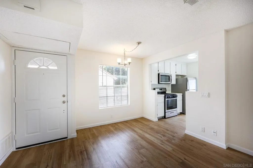 Welcome to this bright and inviting upper-level residence in the desirable Mira Mesa area of San Diego. The spacious living area features a cozy fireplace and abundant natural light, creating a comfortable space to relax or entertain. The home has been thoughtfully remodeled with new flooring, freshly painted kitchen cabinetry, and stainless steel appliances. An in-unit washer and dryer add everyday convenience. A private covered balcony extends from the living space, offering a spot to enjoy fresh air and neighborhood views. The home’s well-designed layout includes a generously sized living and dining area with large windows and a welcoming entry. Residents enjoy access to a community pool, along with well-maintained grassy areas and walkways throughout the community. Ideally located near major employment centers, shopping, dining, and outdoor recreation, with convenient access to the I-15 and I-805 freeways for easy commuting throughout San Diego. Enjoy comfortable living in one of San Diego’s most centrally located neighborhoods.