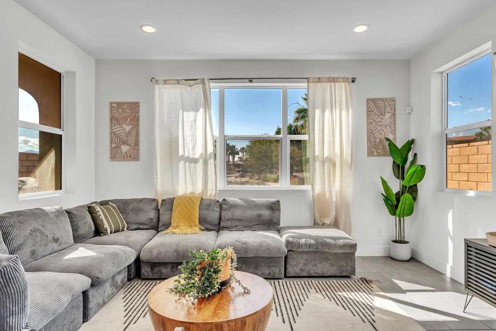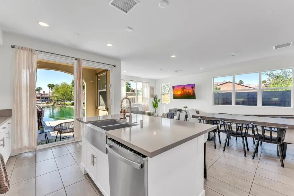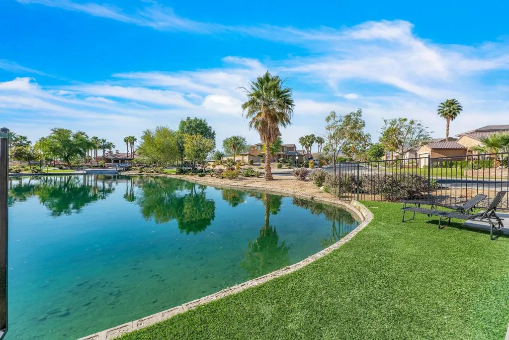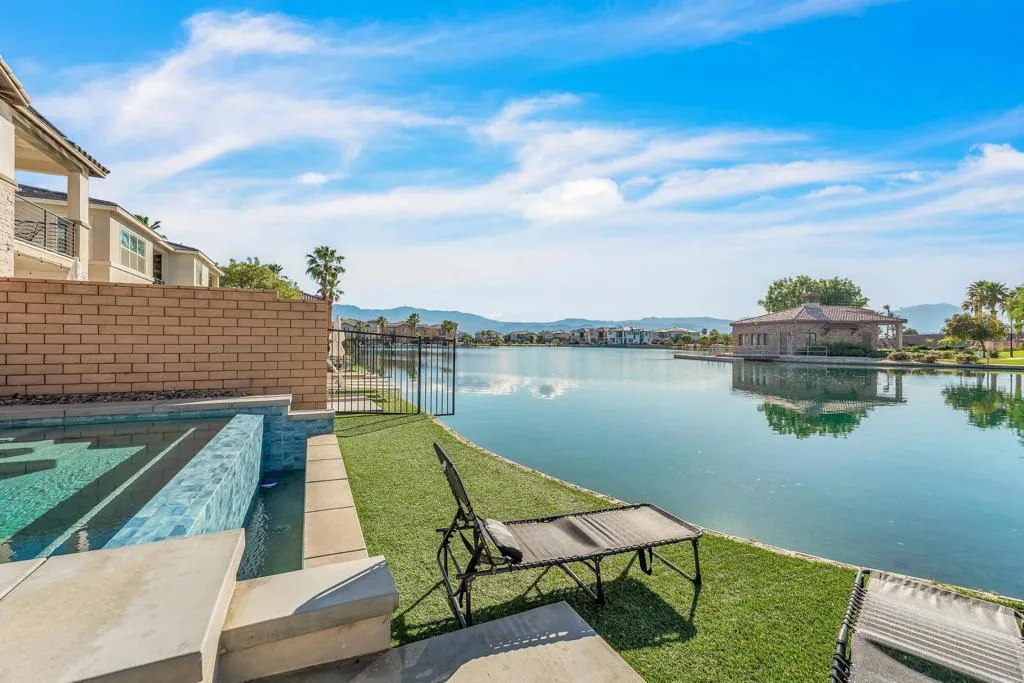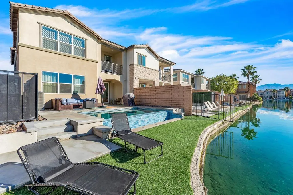 Welcome to lakefront living at its finest in Terra Lago--perfectly positioned on a premium lot with expansive, unobstructed water views.This 4-bedroom, 3-bath home offering over 2,400 sqft features an open-concept layout and seamless indoor-outdoor flow, ideal for both full-time living and short-term rental use. The property's true lakefront positioning provides direct water-facing views from the backyard, creating a highly desirable setting that enhances both lifestyle enjoyment and guest appeal.Designed for resort-style living, the backyard showcases a private infinity pool overlooking the lake, delivering a unique experience that stands out in the marketplace. From sunrise reflections to evening sunsets, the setting offers a sense of openness and privacy rarely found in interior locations. Offered fully furnished, this home is turnkey and ready for immediate use or rental.Located within Terra Lago, a community known for its short-term rental flexibility with no restrictions, this property is well-suited for a range of buyers, including those seeking an income-producing asset, second home, or 1031 exchange opportunity. The functional layout also provides potential for a 5th bedroom conversion, offering added flexibility and future value.Positioned in the Coachella Valley's ''City of Festivals,'' the home is just minutes from Coachella, Stagecoach, Acrisure Arena, golf, and upcoming surf developments, all of which continue to drive strong demand for short-term rentals in the area. For investors, the combination of location, layout, and lakefront exposure presents an opportunity to explore cost segregation strategies to potentially accelerate depreciation and enhance overall tax efficiency.A rare opportunity to own a well-positioned lakefront property that blends lifestyle, income potential, and long-term upside.