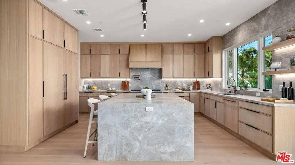 Major price improvement! This newly built modern home in prime Mar Vista offers ~4,134 sq ft with 5 bedrooms and 4.5 baths, blending sleek contemporary design with warm finishes. Bright, open living spaces feature expansive windows and Fleetwood pocket doors for seamless indoor-outdoor flow. The chef's kitchen includes Taj Mahal quartzite, rift oak cabinetry, Thermador appliances, and a butler's pantry. Spa-like bathrooms, built-in audio, and custom details elevate the home throughout. A main-level guest suite adds flexibility, while the upstairs primary boasts vaulted ceilings, a luxe bath, and walk-in closet. Enjoy inviting outdoor spaces, security cameras, and a prime location near Venice, Abbot Kinney, Santa Monica, and Culver City.