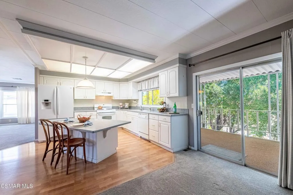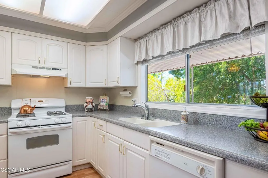 Welcome to the popular Ventu Estates Senior park in beautiful Conejo Valley. Boasting its location and incredible space for family gatherings, this well-maintained home checks so many boxes. Starting with the updated kitchen and large breakfast island which is open to the cozy den, to the expansive covered porch under the oak trees. Downsizing won't be an issue with the spacious living and dining areas and sunroom perched under the shade of the trees. The private primary bedroom has a lovely ensuite bathroom as does the guest room. Spend your mornings on the peaceful porch, enjoy an afternoon at the pool, take an evening walk to the nearby Stage Coach park, and finish your day in the spa under the stars! Making friends is easy at the monthly clubhouse events such as potlucks, wellness speakers, bingo/game days, and donuts & coffee. Ventu Estates is conveniently located to the 101 freeway, markets, restaurants, and miles of hiking & biking trails in the adjacent Santa Monica mountains. It truly doesn't get much better than this!