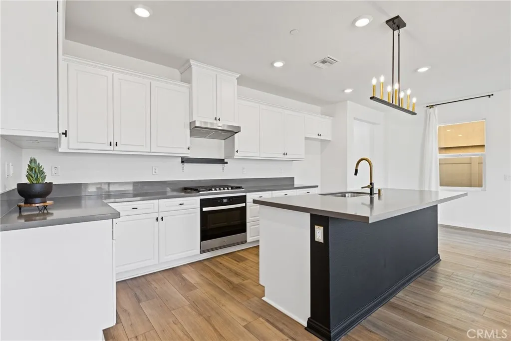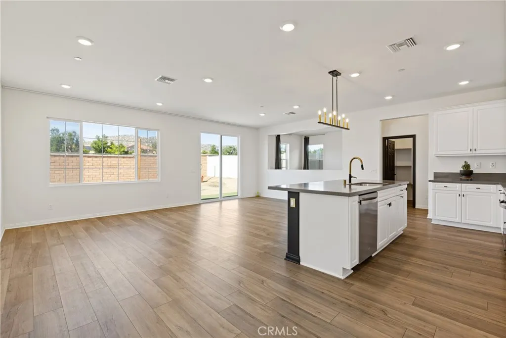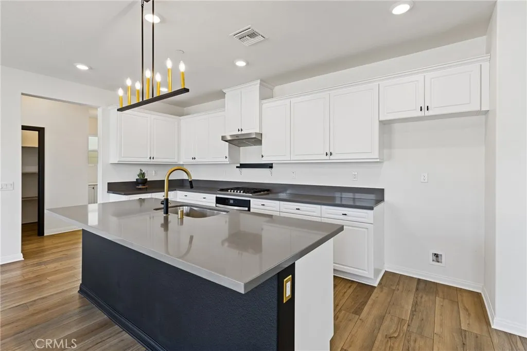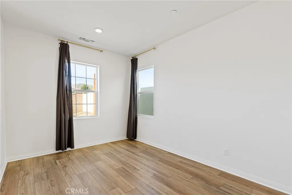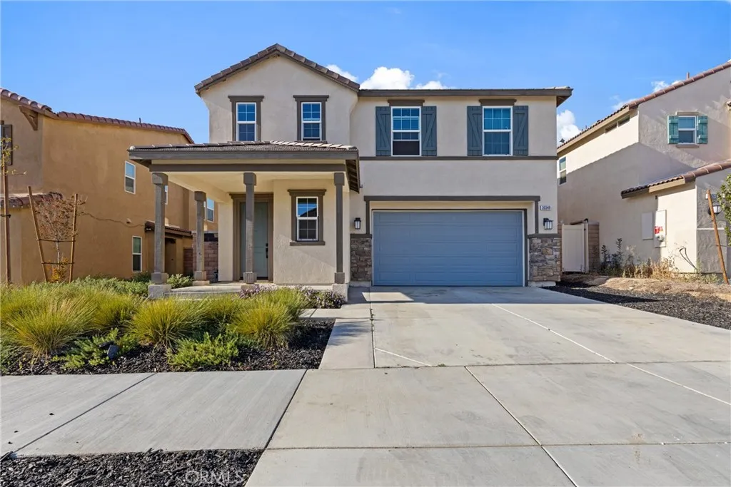Welcome to one of Homeland's newest communities, where modern 2023 construction meets thoughtful upgrades and true turnkey living — with NO HOA. This spacious 4-bedroom, 2.5-bath home offers 2,619 sq ft of well-designed living space on a 4,792 sq ft lot. Built in 2023, the home still carries the benefits of newer construction — modern systems, current building codes, and a fresh aesthetic — while already featuring the upgrades most buyers add after moving in. Step inside to find updated laminate flooring throughout the main living areas, modern lighting fixtures, and elegant gold-toned hardware — finishes that elevate the home well beyond standard builder-grade. The kitchen is the centerpiece of the main floor, featuring dark quartz countertops, a generous layout, and a walk-in pantry that offers the kind of storage most homes simply don't have. The floor plan is designed for real life. A downstairs bonus room gives you the flexibility for a dedicated home office, gym, playroom, or guest space without sacrificing a bedroom. Upstairs, a spacious loft adds a true second living area — ideal as a media room, study space, or lounge. The four bedrooms are well-proportioned, giving everyone in the household their own space to retreat to. A tankless water heater provides on-demand hot water while reducing energy costs — a feature typically found in higher-end builds. The low-maintenance lot means less time on yard work and more time enjoying your home. Located in a newer Homeland neighborhood with easy freeway access to the I-215, putting Menifee, Murrieta, Temecula, and the greater Inland Empire within comfortable reach. With no HOA fees, you get the pride and benefits of a newly built community without the monthly dues or added restrictions. Why wait for new construction when this one is already upgraded, completed, and move-in ready?
