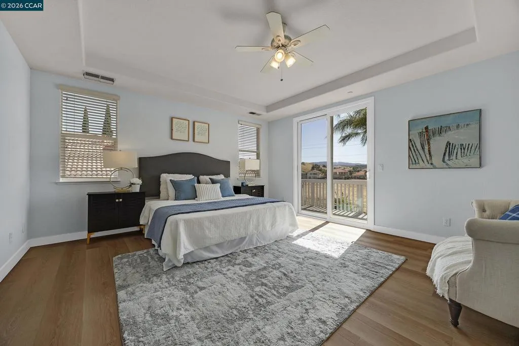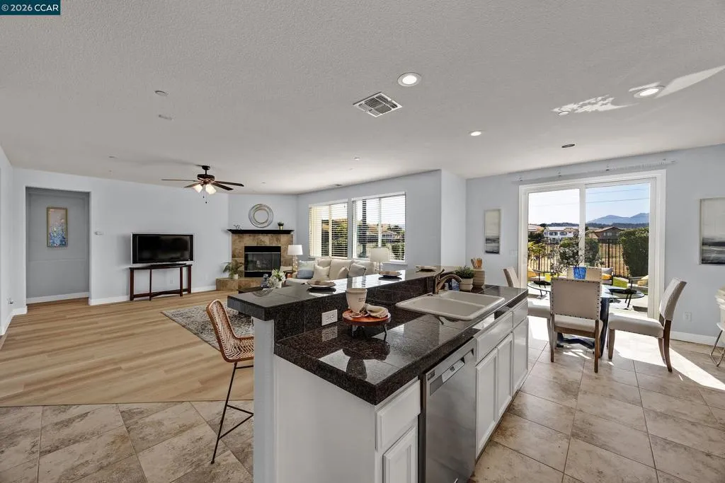 Commanding Mount Diablo views, modern upgrades, and a coveted Deer Ridge address — this stunning 5-bedroom, 3-bath home delivers 3,021 square feet of refined living just minutes from top-rated schools, shopping, restaurants, parks, and hiking trails. A grand entryway sets the tone, opening to soaring formal living and dining rooms bathed in natural light from dramatic two-story windows. The open floor plan flows seamlessly to the heart of the home: a chef's kitchen featuring a new 5-burner gas range, stainless steel dishwasher, and a generous island, all opening to the family room with its cozy fireplace and views of the backyard oasis. Fresh LVP flooring, new baseboards, new paint, updated lighting, and a newer AC unit complete the picture-perfect interior. The main level also offers a full bedroom and bath — ideal for guests, a home office, or multi-generational living. Upstairs, the luxurious primary suite is a true retreat, showcasing a walk-in closet and a private balcony with sweeping views of Mount Diablo. Three additional bedrooms and a spacious shared bath complete the upper level. Step outside to a private backyard designed for entertaining: a large patio, lush lawn, and beautiful landscaping create a serene escape with no rear neighbors. Welcome home.