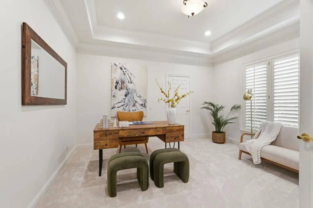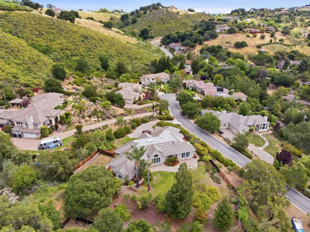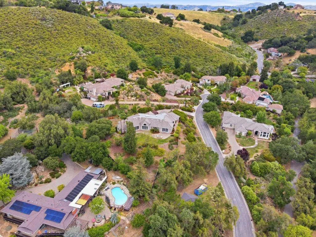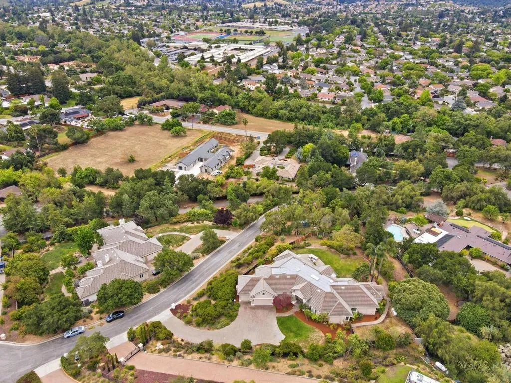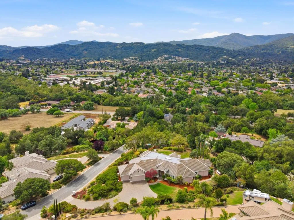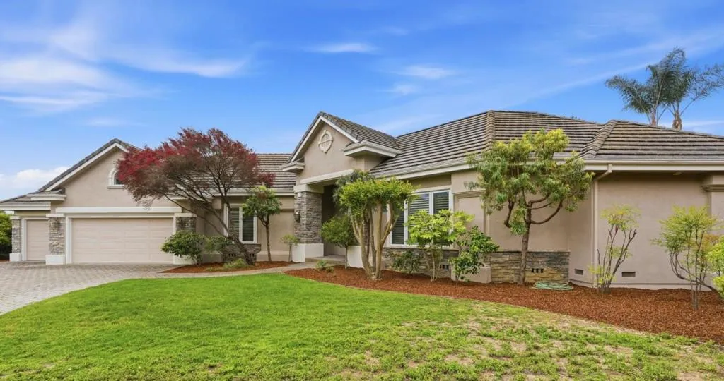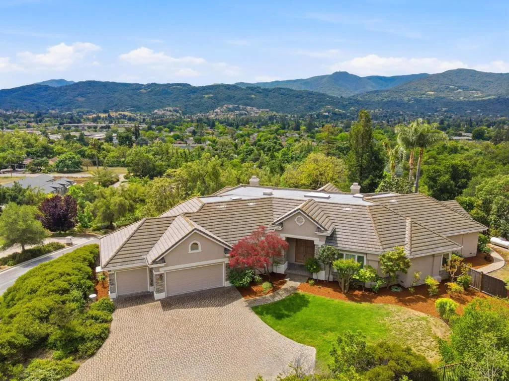 An exceptional opportunity awaits with this stunning single-story Almaden Valley estate set on over an acre of beautifully landscaped grounds. The 4,278 sq. ft. custom home, built by Pinn Brothers, offers sweeping views and outstanding attention to detail. Enter through the front door to an open-concept floor plan highlighted by soaring ceilings & abundant natural light. The elegant gourmet kitchen features stone countertops & finely crafted hardwood cabinetry. A separate family room is accented w/coffered ceilings & custom built-ins, offering warmth & functionality. The spacious combined living & dining area provides an ideal space for entertaining, w/panoramic views from nearly every window. The expansive primary suite includes a luxurious shower room, soaking tub & oversized walk-in closet. Add'l bedrooms are generously sized. A private office w/built-in cabinetry offers a perfect workspace. Step outside to a private backyard retreat surrounded by lush landscaping & a peaceful natural environment. The southern end of the property includes a graded area with a detached structure and two-car garage. Buyer to verify potential for SB9 lot split/ADU or future developments. Ideally located near shopping, dining, Quicksilver Park, major commuter corridors, and highly rated schools.