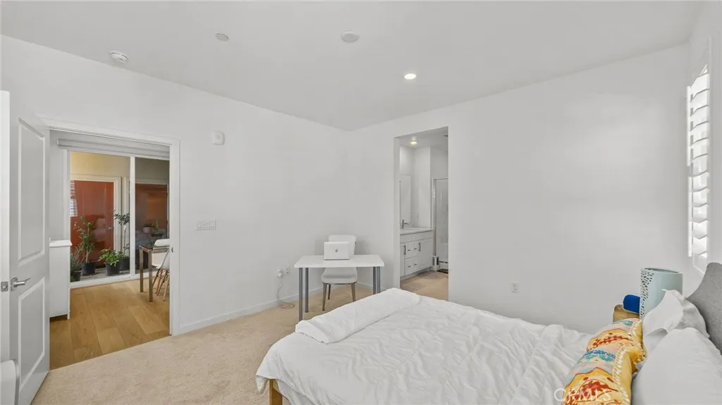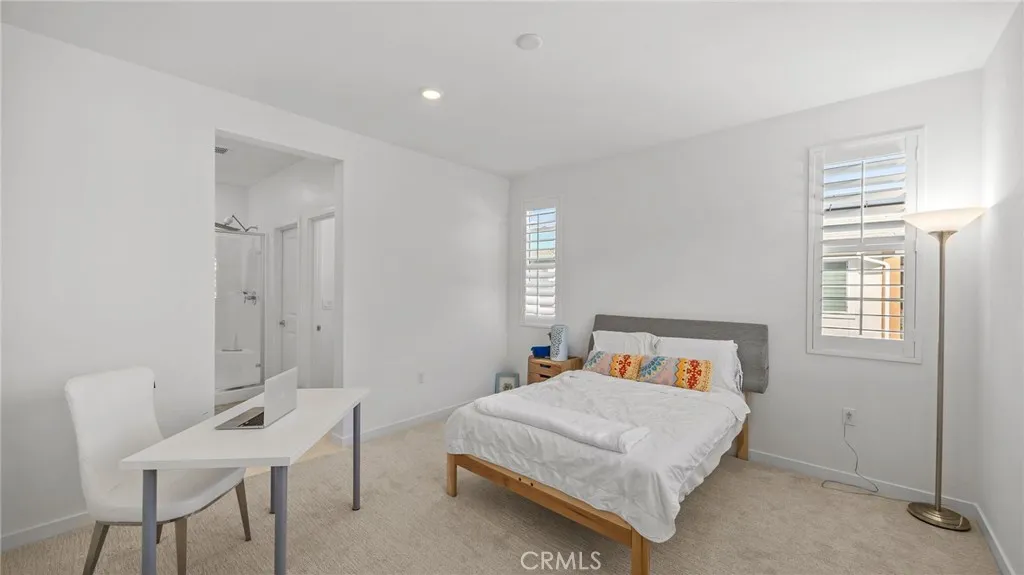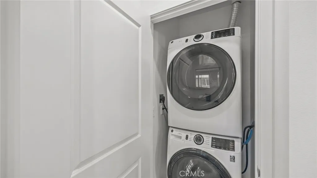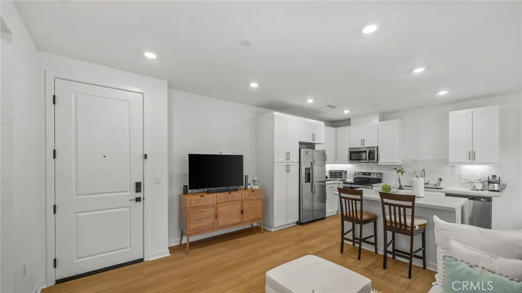 This 956-square-foot residence offers a sophisticated blend of modern efficiency and resort-style living. The thoughtfully designed layout features two spacious bedrooms and two bathrooms, highlighted by a primary suite with a private attached bath and a versatile second bedroom served by a convenient guest-accessible bathroom. The heart of the home is an expansive open-concept great room where the living, dining, and kitchen areas converge for effortless entertaining. The gourmet kitchen is a standout, featuring a large social island, sleek all-white cabinetry with under-cabinet lighting, and a full suite of brand-new appliances including a washer, dryer, and refrigerator, all provided for ultimate convenience. Every detail of this home has been curated for comfort and sustainability. Modern tech-ready features include a two-car tandem garage equipped with a dedicated EV charger. Enjoy access to sparkling pool, jacuzzi, fitness center, and clubhouse. Perfectly positioned just minutes from major shopping centers, dining, and essential services, this home offers an unparalleled rental opportunity in a highly desirable neighborhood.