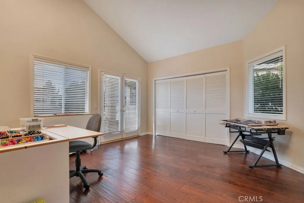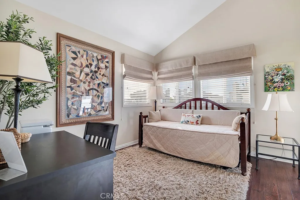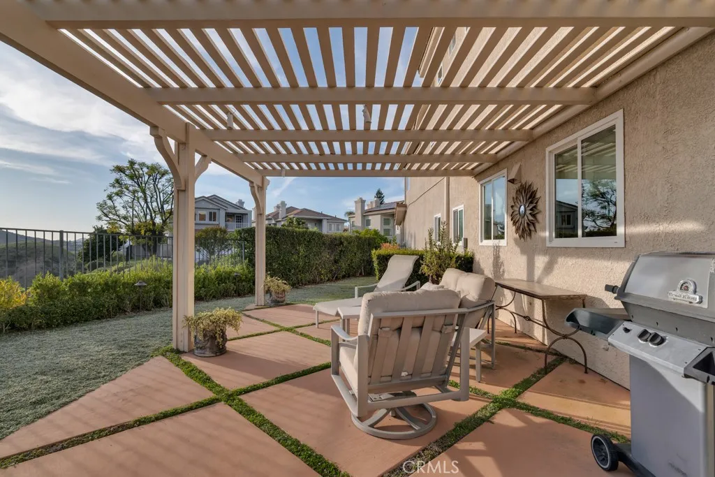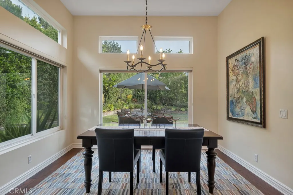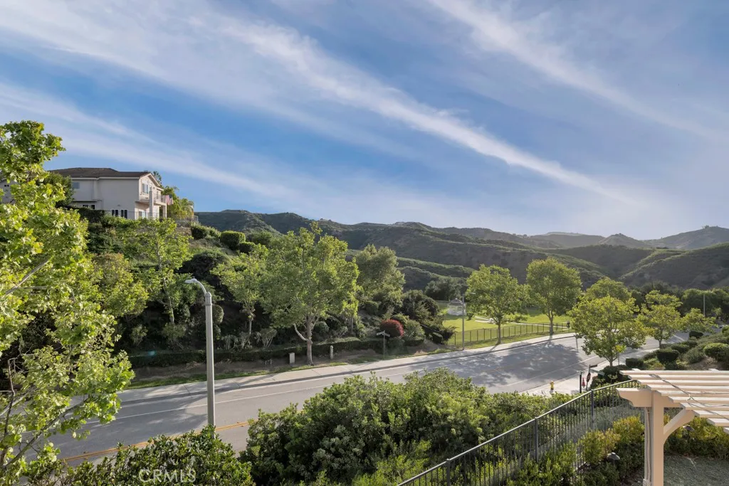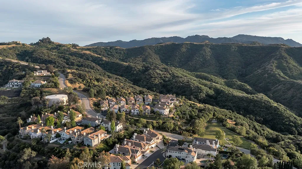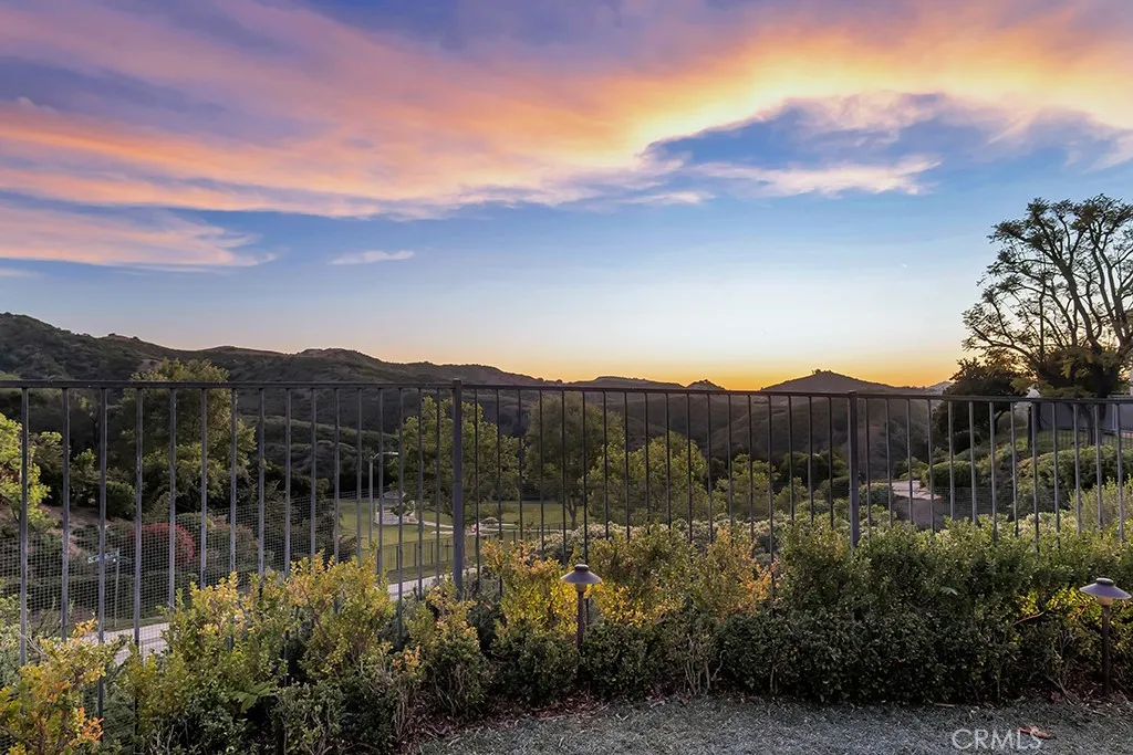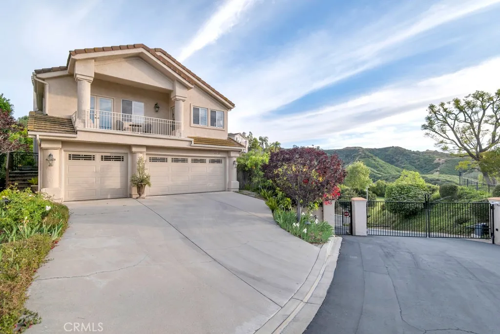 Imagine yourself sitting on your patio and watching the sun set over the majestic mountains in this beautiful gated community located on a cul de sac in the desirable Las Virgenes School District . When you enter this 3 bedroom, 2.5 bath home through double doors, you will be greeted with soaring ceilings as you walk into the living room with an adjacent dining room. The kitchen with granite countertops and Hunter Douglas’s window treatments, has an eating area/family room. Upstairs is an incredible en-suite primary bedroom with a fireplace in the sitting area, and lots of custom shelves, cabinets and large closets. From the primary bedroom balcony you can see a view of the mountains. The en-suite bathroom has 2 sinks across from each other and a separate tub and shower. There are 2 secondary bedrooms upstairs with a Jack and Jill bathroom and lots of storage and custom built in closets. The flexible floodplain allows the owner to adjust the space to their needs. There is a private community park. This house has lots of natural light, great storage, hardwood floors throughout and Hunter Douglas window coverings in the bedrooms. Custom landscaping with a low water lawn, custom outside lights, and 2 patio area ( one of which has a barbecue) This is paradise. Currently, the 3rd garage is being used for storage but can be converted back to a garage.