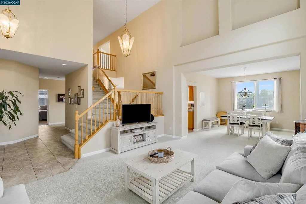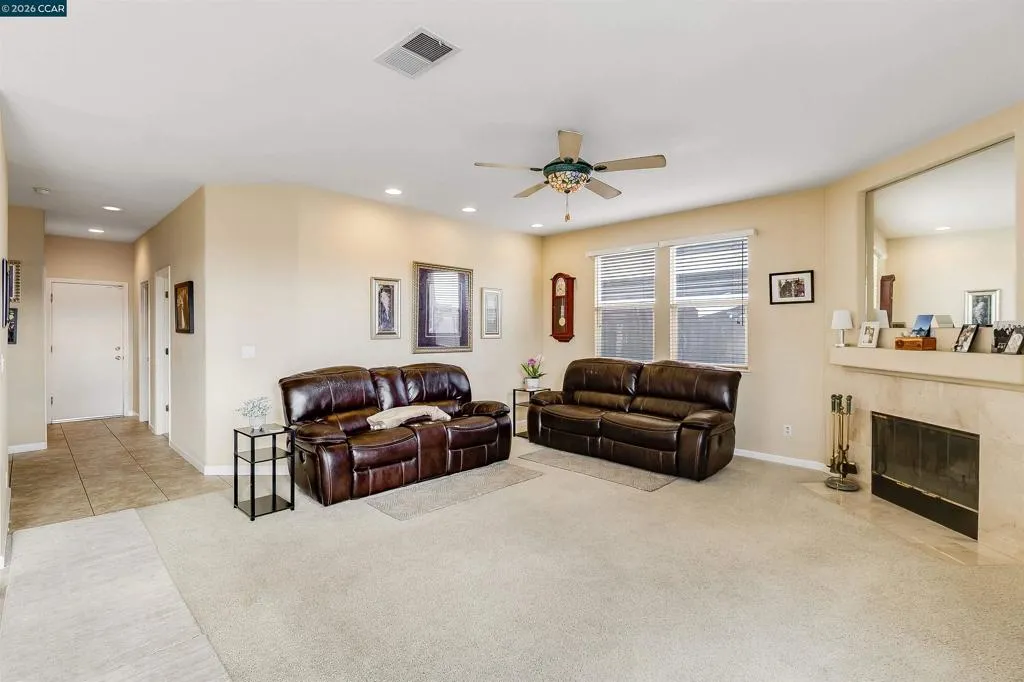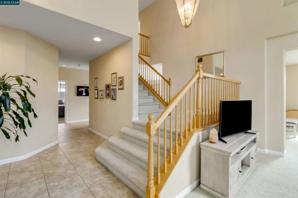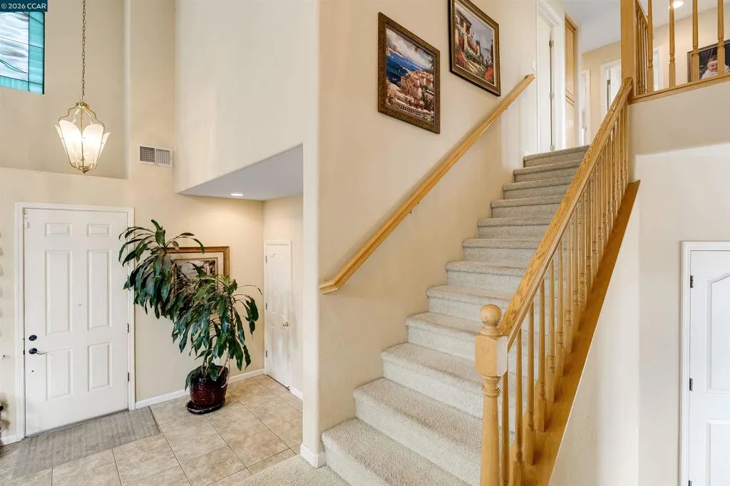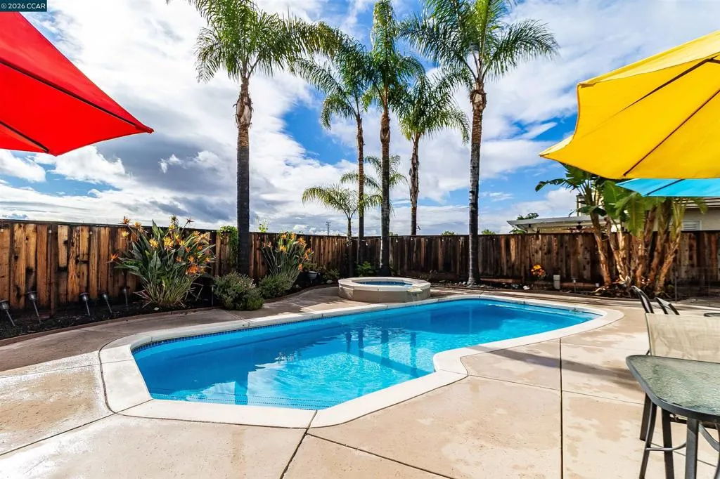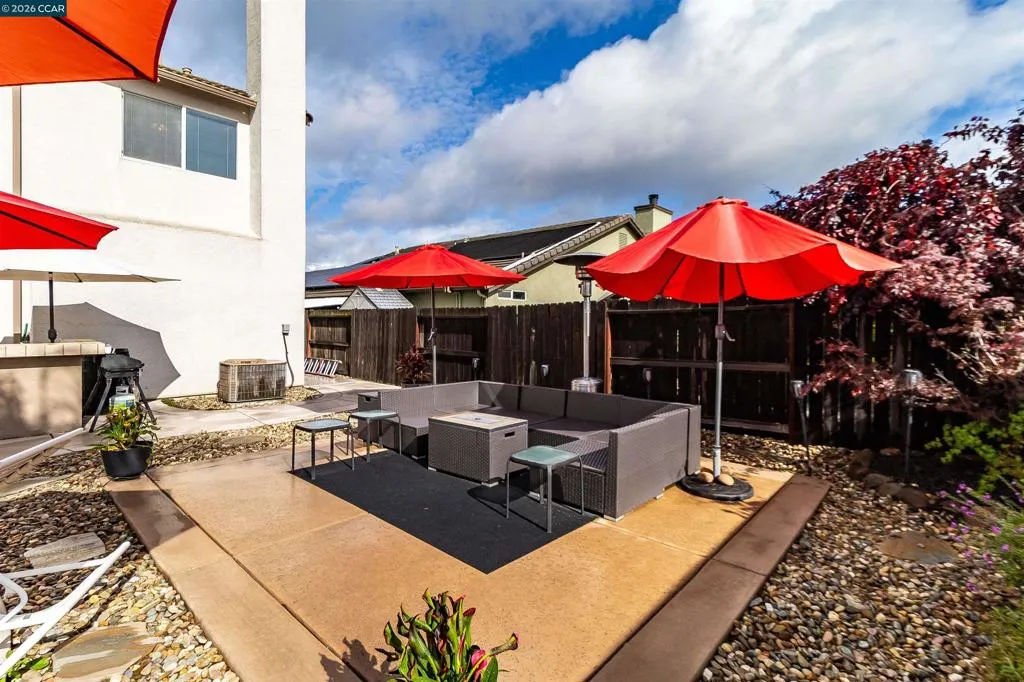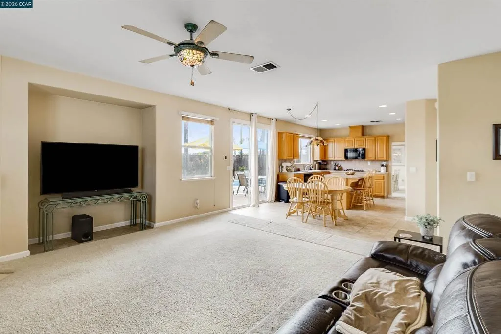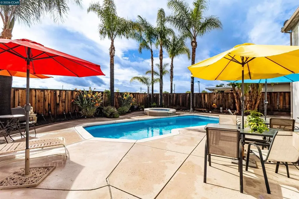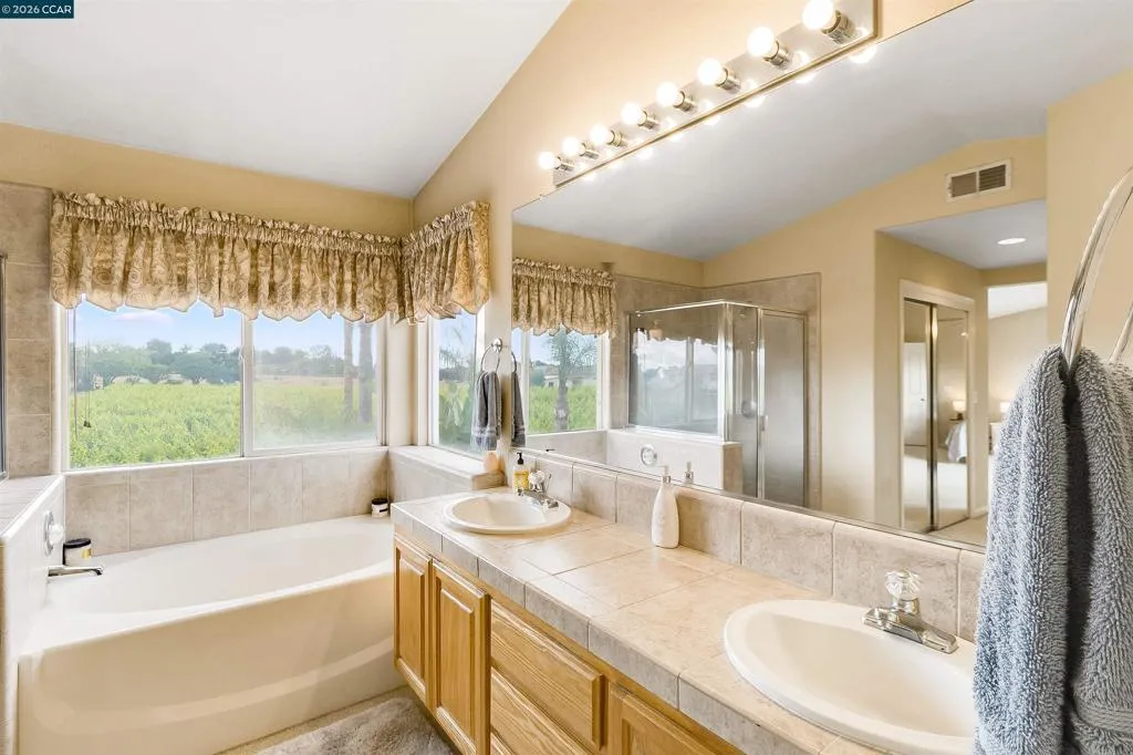 Welcome to 523 Whitehall Court in Oakley, set on a quiet court with no immediate rear neighbors and a rare vineyard backdrop. This 3,361 sq ft setting offers a level of privacy and openness not often found, with the home oriented around a backyard designed for everyday use and entertaining. Inside, the layout is open and functional, with vaulted ceilings and natural light enhancing the main living areas. The kitchen includes tile countertops, gas cooktop, double oven, and ample cabinetry. An expansive upstairs bonus room offers flexible space for a home theater, game room, or additional living area without sacrificing a bedroom. The primary suite is spacious, featuring two closets and a large bathroom, while additional living areas provide versatility. The backyard is the focal point, featuring a heated spa that cascades into the pool, patio area, and multiple seating spaces. An outdoor propane BBQ extends the entertaining space, while the vineyard backdrop creates a calm, unobstructed setting. Additional features include whole-house soft water treatment extending to the exterior and a three-car garage. A well-positioned home offering privacy, flexibility, and a setting that stands apart.