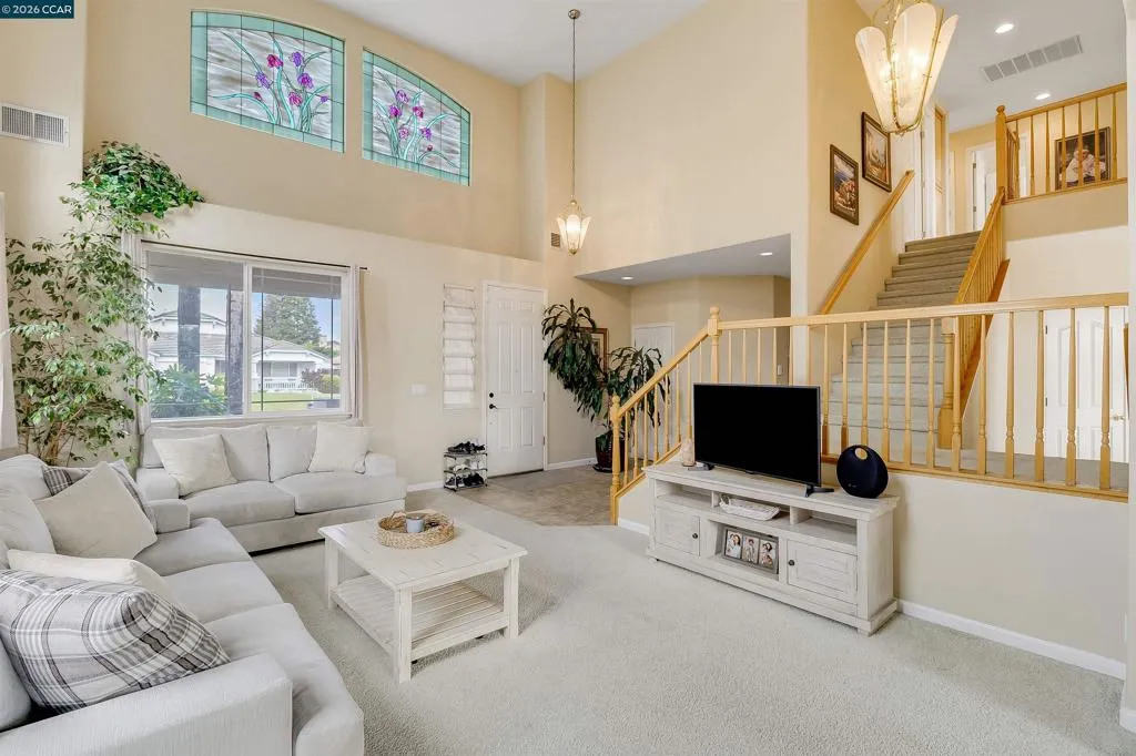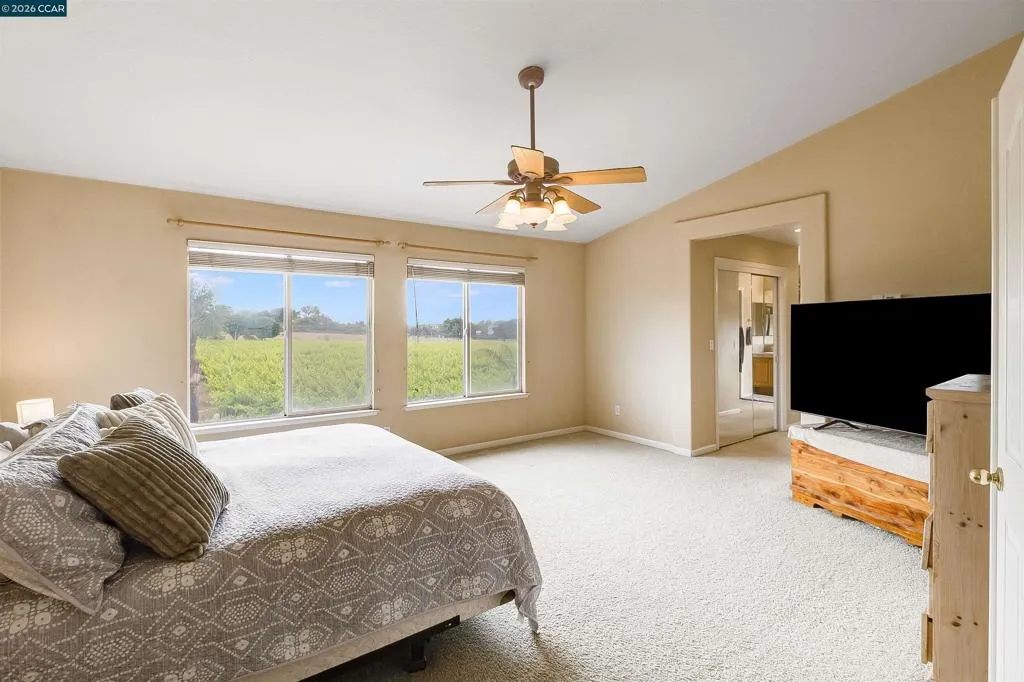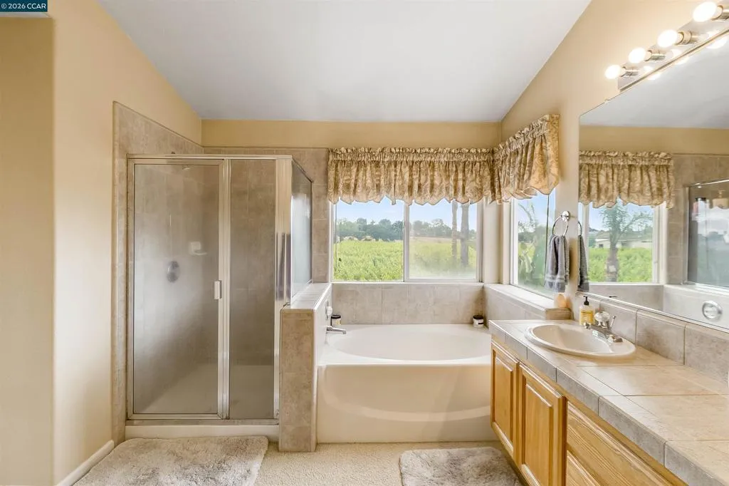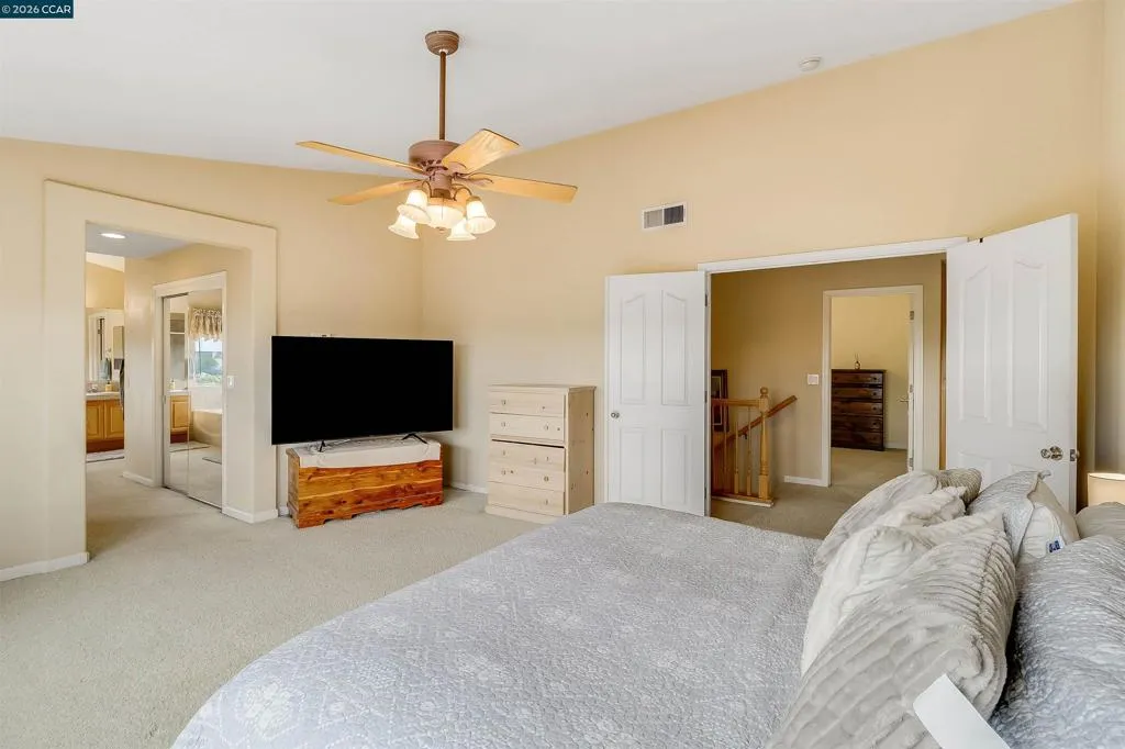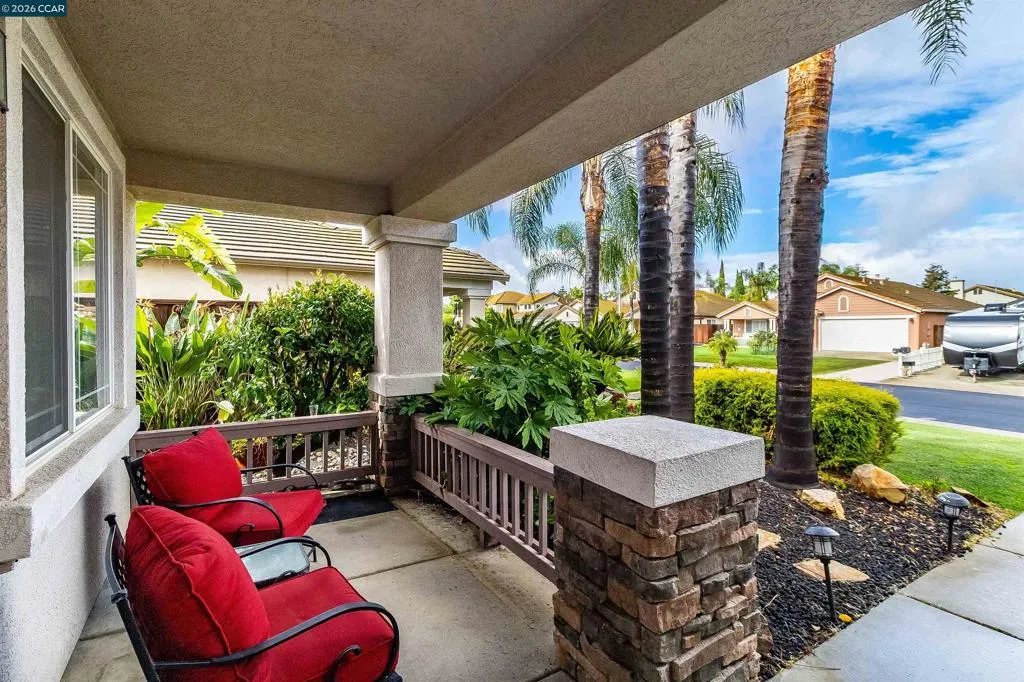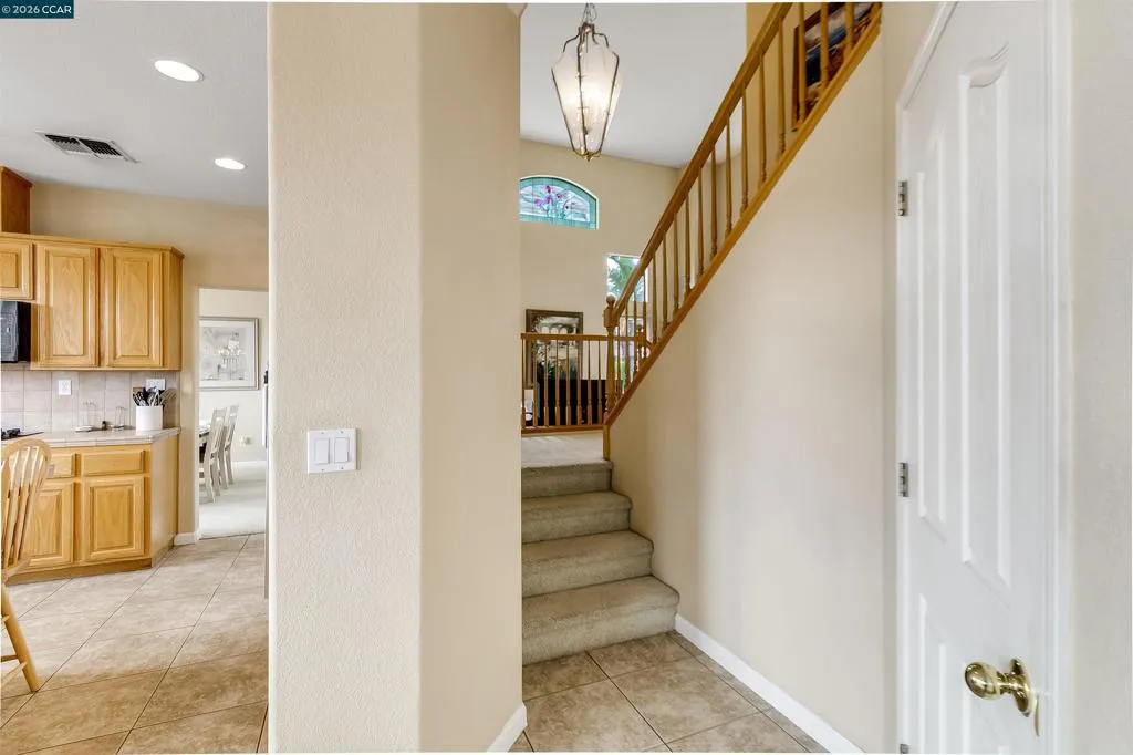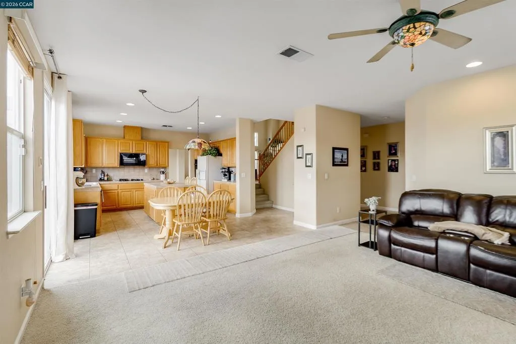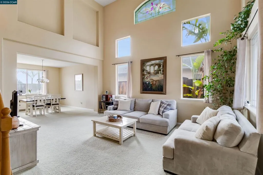 Welcome to 523 Whitehall Court in Oakley, set on a quiet court with no immediate rear neighbors and a rare vineyard backdrop. This 3,361 sq ft setting offers a level of privacy and openness not often found, with the home oriented around a backyard designed for everyday use and entertaining. Inside, the layout is open and functional, with vaulted ceilings and natural light enhancing the main living areas. The kitchen includes tile countertops, gas cooktop, double oven, and ample cabinetry. An expansive upstairs bonus room offers flexible space for a home theater, game room, or additional living area without sacrificing a bedroom. The primary suite is spacious, featuring two closets and a large bathroom, while additional living areas provide versatility. The backyard is the focal point, featuring a heated spa that cascades into the pool, patio area, and multiple seating spaces. An outdoor propane BBQ extends the entertaining space, while the vineyard backdrop creates a calm, unobstructed setting. Additional features include whole-house soft water treatment extending to the exterior and a three-car garage. A well-positioned home offering privacy, flexibility, and a setting that stands apart.