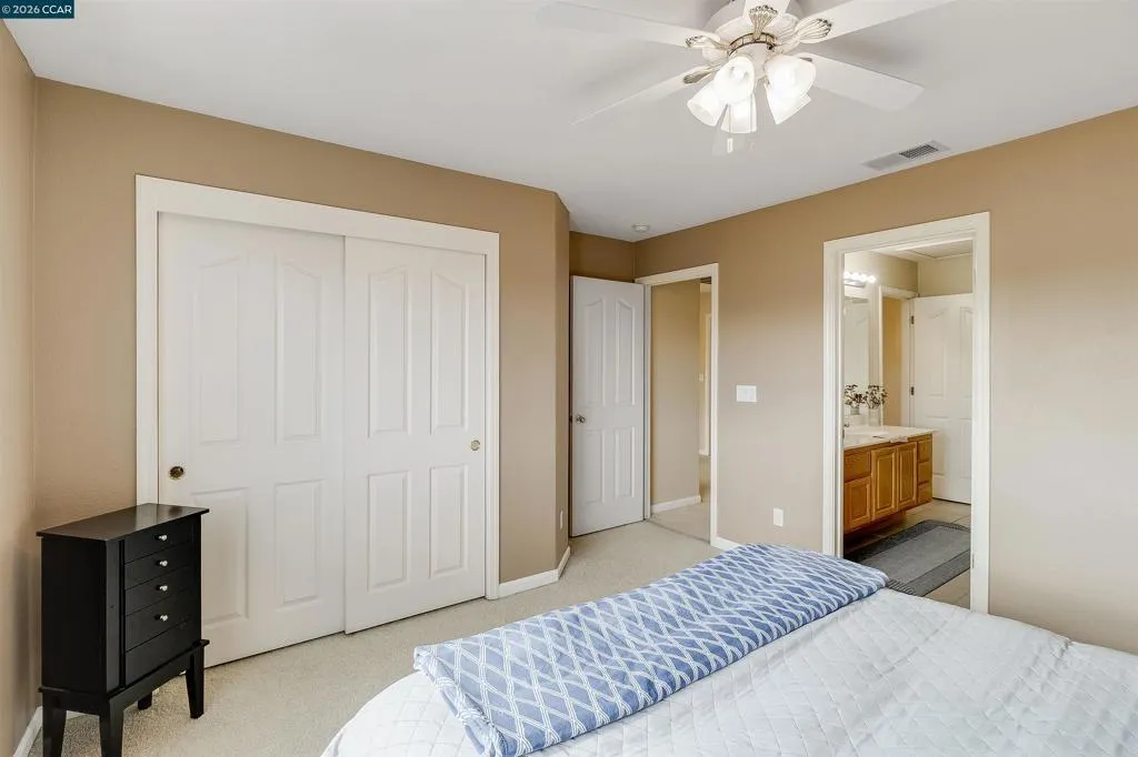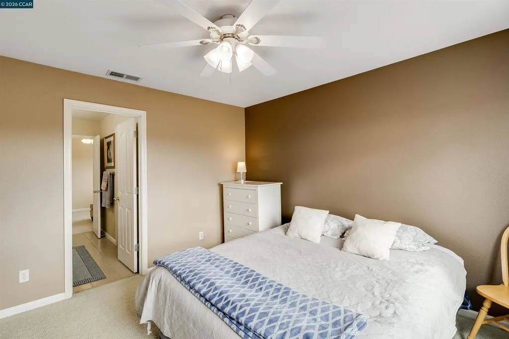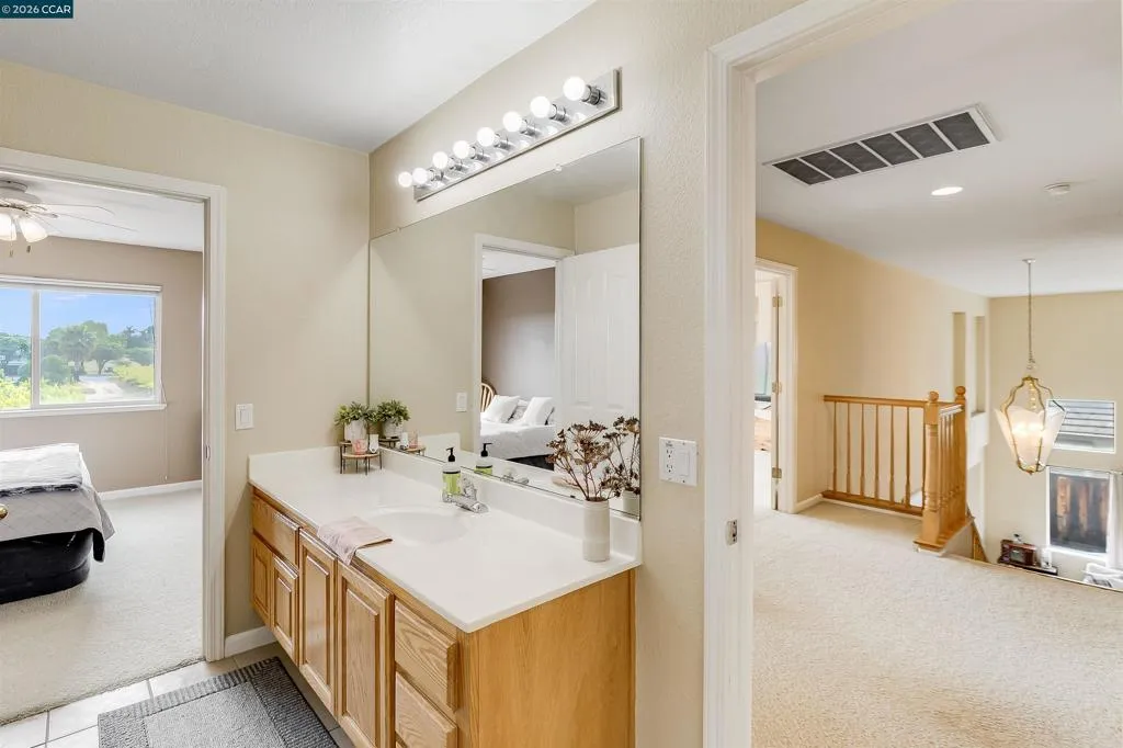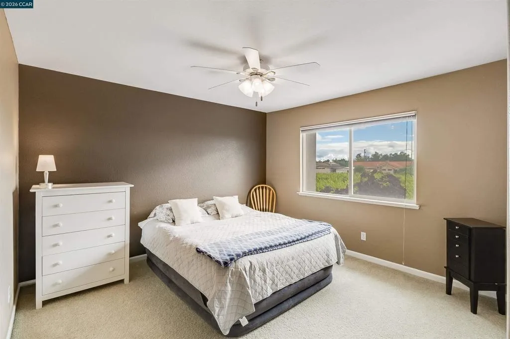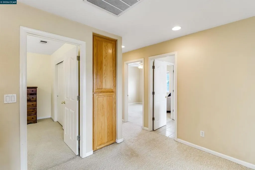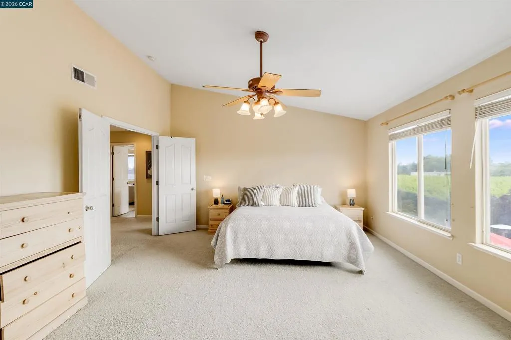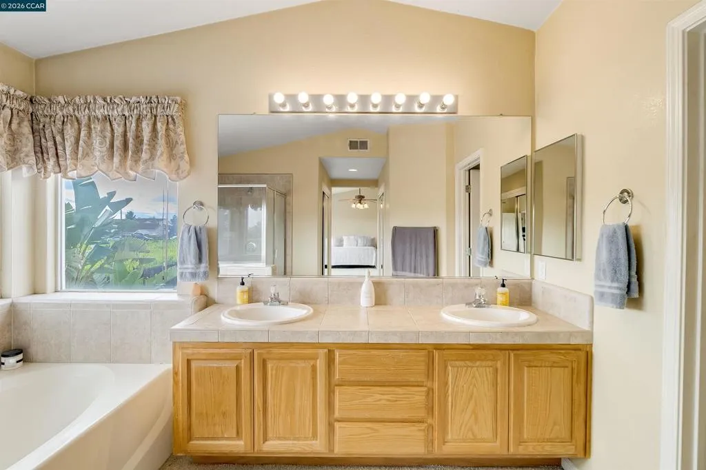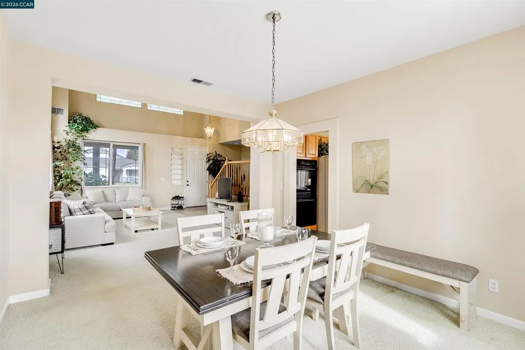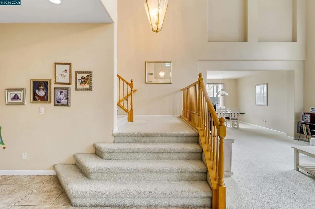 Welcome to 523 Whitehall Court in Oakley, set on a quiet court with no immediate rear neighbors and a rare vineyard backdrop. This 3,361 sq ft setting offers a level of privacy and openness not often found, with the home oriented around a backyard designed for everyday use and entertaining. Inside, the layout is open and functional, with vaulted ceilings and natural light enhancing the main living areas. The kitchen includes tile countertops, gas cooktop, double oven, and ample cabinetry. An expansive upstairs bonus room offers flexible space for a home theater, game room, or additional living area without sacrificing a bedroom. The primary suite is spacious, featuring two closets and a large bathroom, while additional living areas provide versatility. The backyard is the focal point, featuring a heated spa that cascades into the pool, patio area, and multiple seating spaces. An outdoor propane BBQ extends the entertaining space, while the vineyard backdrop creates a calm, unobstructed setting. Additional features include whole-house soft water treatment extending to the exterior and a three-car garage. A well-positioned home offering privacy, flexibility, and a setting that stands apart.