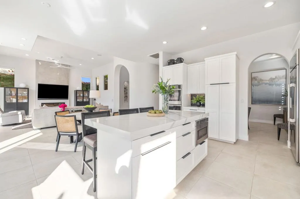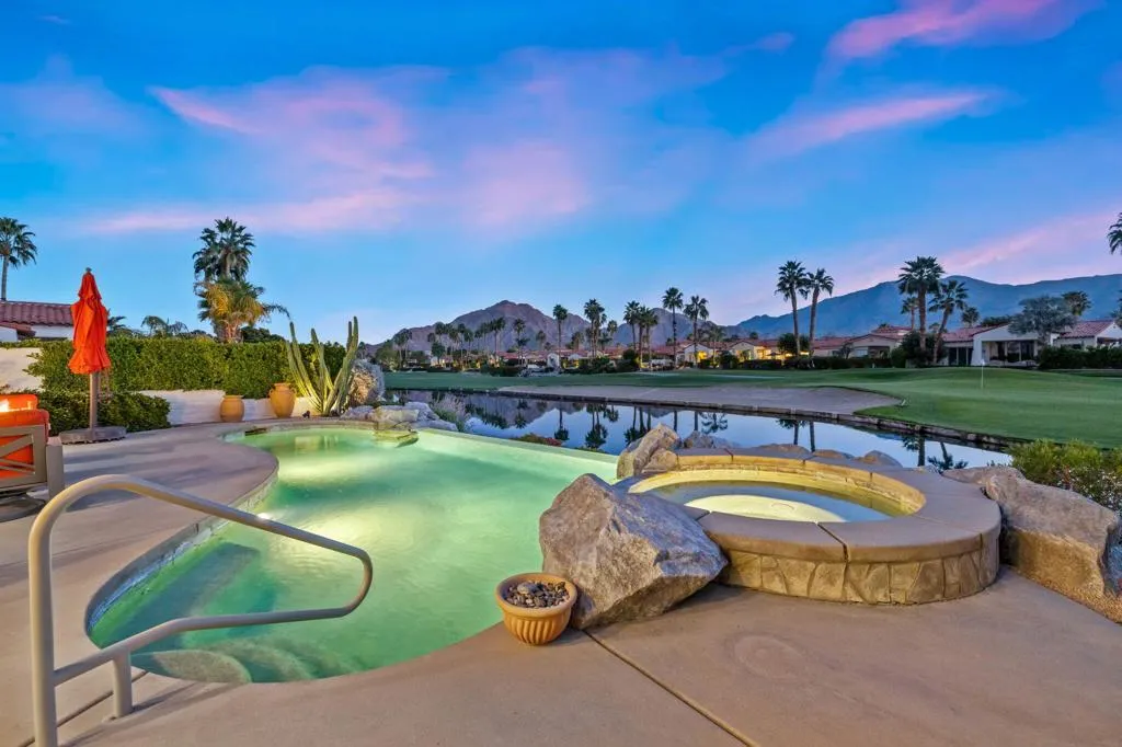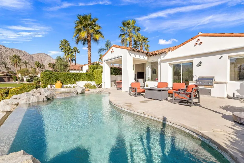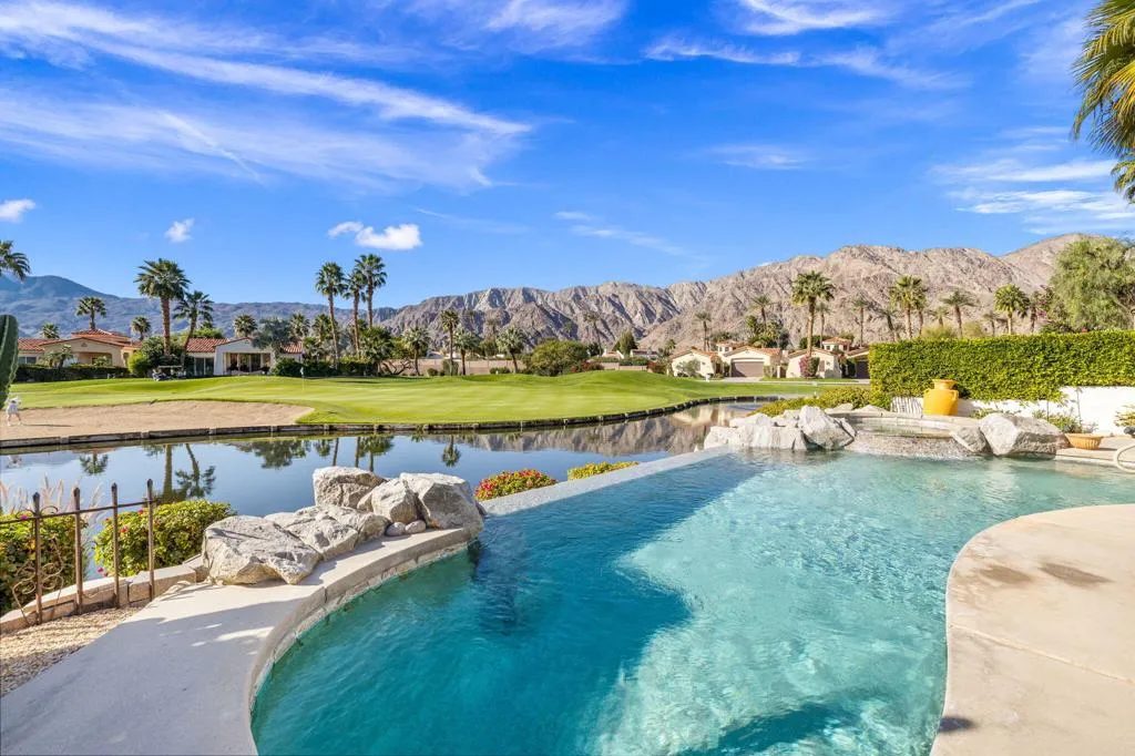 HACIENDAS AT LA QUINTA (DUNES COURSE): **OPEN THIS SAT 4/25 11:00AM-1:00PM. COME SEE!!** Want the best views in La Quinta? Want fully renovated? Want it for under $1.5M?This exceptional home delivers the ultimate view trifecta--mountains, lake, and golf course green views--all from one stunning property overlooking the 12th hole of the Dunes Course.Completely renovated throughout, this approximately 2,300 sq ft residence features a bright, modern interior with a cohesive, contemporary design. Every bedroom and every bathroom has been renovated, and the home is truly move-in ready--there is nothing left to upgrade!!The kitchen is sleek and modern with quartz countertops and a striking black contrasting backsplash, opening seamlessly to the main living areas and views beyond. Dual A/C systems were installed in 2021, providing efficient climate control and peace of mind.The outdoor living experience is exceptional. A stunning infinity-edge pool sits directly above the lake, creating a dramatic visual effect with water seemingly spilling into the lake below. The spa, golf course green, and expansive 180-degree mountain views complete a resort-style setting that changes beautifully throughout the day as the mountains shift in color and light.This is a rare opportunity to own a fully renovated, view-oriented home in one of La Quinta's most desirable communities--offering mountains, water, and golf in a single package, all under $1.5 million.