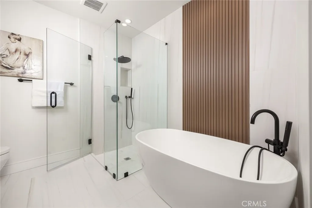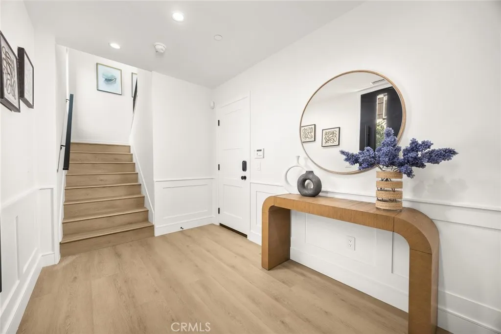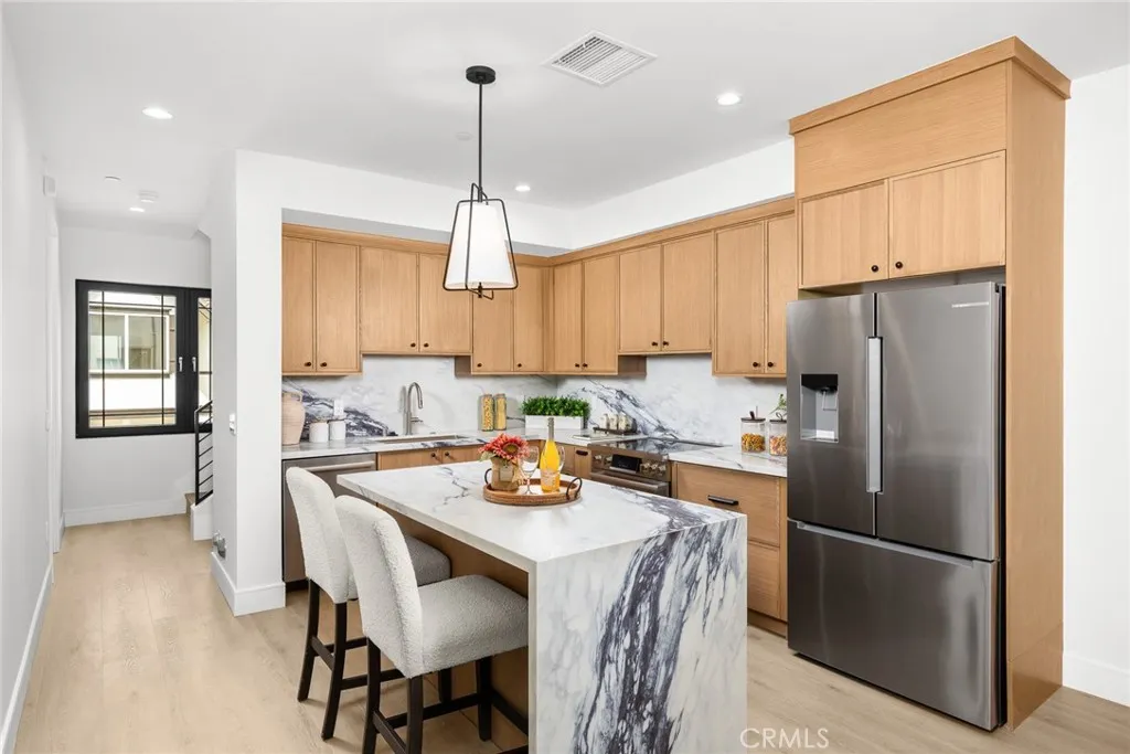 Stunning brand-new 8-unit luxury complex with modern design in the highly desirable Arcadia, located within the award-winning Arcadia Unified School District and developed by Rodeo Development. Conveniently situated near Westfield Santa Anita, Santa Anita Park, the Los Angeles County Arboretum and Botanic Garden, Santa Anita Golf Course, and USC Arcadia Hospital, with easy access to Interstate 210. This property features a 4-unit duplex-style building, with each residence shares only one wall and has three sides exposed to natural light, providing excellent brightness and cross-ventilation. Each unit offers approximately 1,660 sq. ft. of living space with 3 bedrooms and 3 bathrooms. The open and functional floor plan showcases European-style windows, luxury vinyl plank floors, and designer finishes throughout. The second level features a spacious great room, dining area, and a gourmet kitchen equipped with quartz countertops, Bosch appliances, and custom cabinetry, seamlessly connected for both everyday living and entertaining. One en-suite bedroom is also conveniently located on this level. The third level is dedicated to the primary suite, complete with a designer bathroom, along with an additional well-appointed en-suite bedroom.This all-electric home features a heat pump A/C system, electric water heater, stove, washer, and dryer (no gas service). Each unit includes a fully paid 6-panel solar system, a private outdoor space, and a dedicated laundry area. The attached 2-car garage is equipped with a Level 2 EV charger for each unit. Located near Hugo Reid Elementary School and Foothill Middle School, this property is just minutes from shopping, dining, parks, and popular markets including H Mart and 99 Ranch Market.