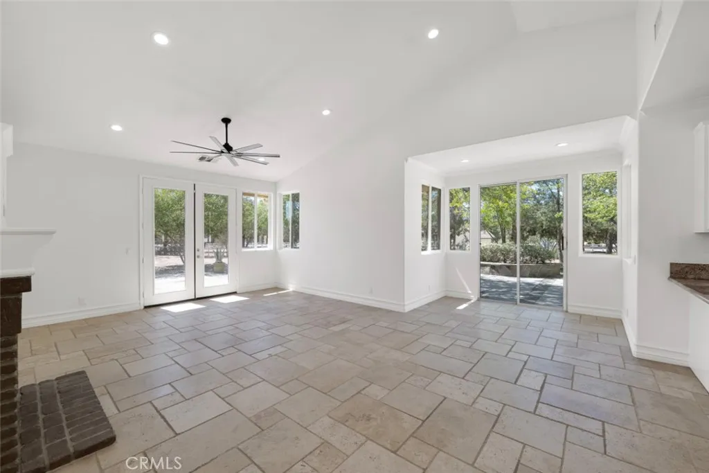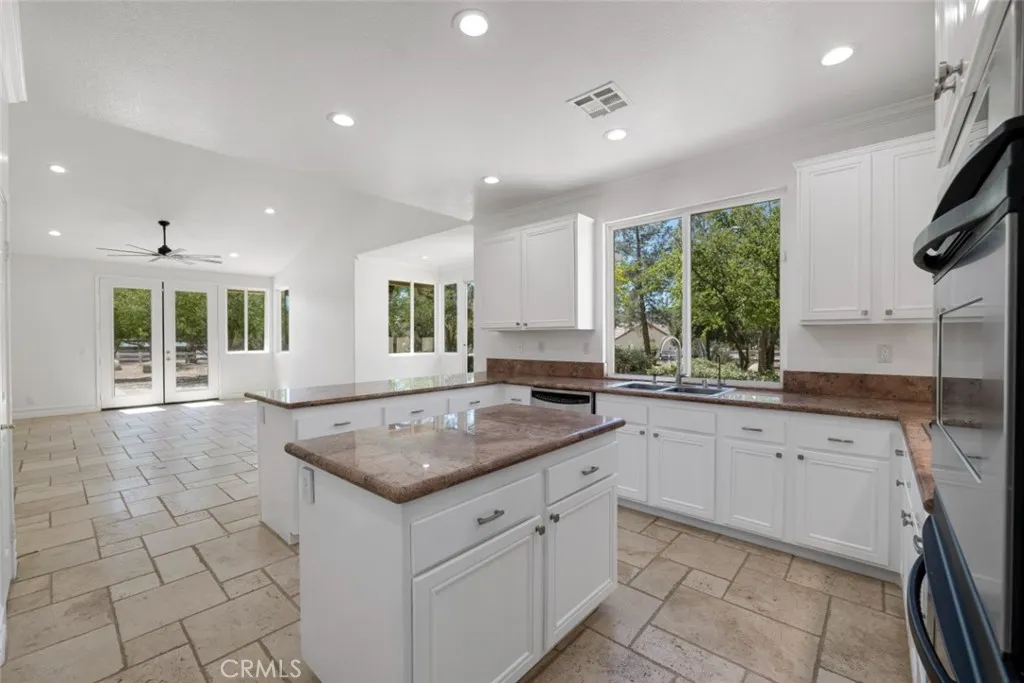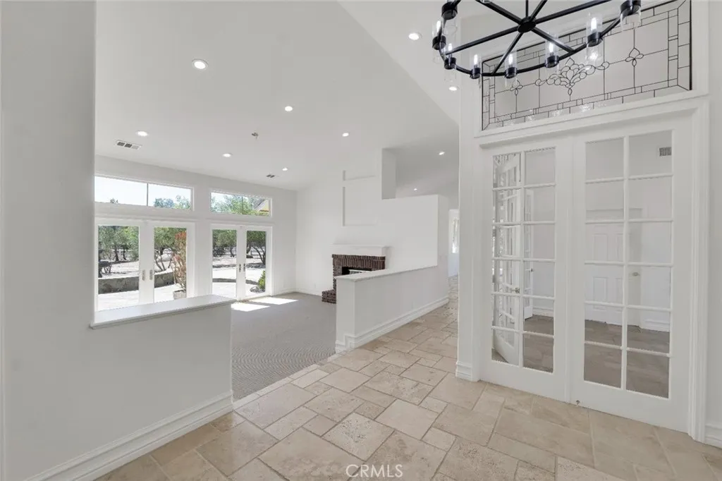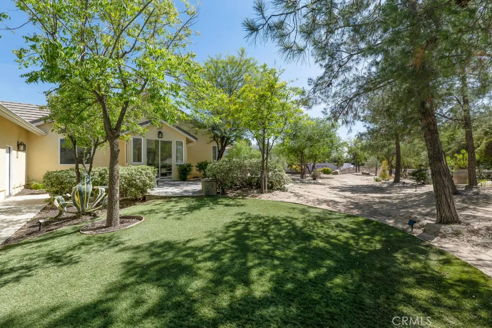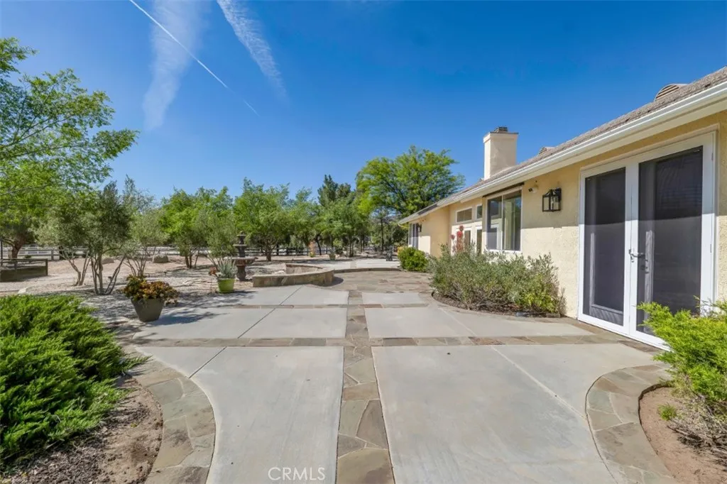 Set on a prime corner lot in Agua Dulce’s sought-after Sierra Colony, this exceptional single-story estate rests on just over 2 acres of scenic land & breathtaking mountain views. Spanning approximately 3,210 sq ft, the home features 3 bedrooms, 3 baths, a dedicated office, & a versatile bonus room with its own entrance—ideal as a guest suite, studio, or 4th bedroom. A circular driveway & gated front courtyard with stone patio create a welcoming first impression, leading to a double-door entry & an open, light-filled interior with cathedral ceilings, crown moldings, plantation shutters, & expansive windows throughout. The thoughtfully designed layout includes a spacious foyer flanked by a built-in office & glass-enclosed formal dining room, opening to an elegant step-down living room with a fireplace that shares a striking double-sided design with the adjacent family room, creating warmth & continuity between the spaces. The beautifully update kitchen showcases stainless-steel appliances, double wall ovens, a built-in gas range, paneled refrigerator, white shaker cabinetry, designer granite countertops, a center island, & peninsula with seating, all open to a sun-filled breakfast nook & family room with fireplace, a wet bar, built-in media nook, & additional French doors that enhance the indoor-outdoor lifestyle. The primary suite is a private retreat with backyard access, & a two-way fireplace that connects to a jetted soaking tub in the spa-inspired en-suite with separate shower, dual sink vanity, & an oversized walk-in closet with safe. Two additional bedrooms share a full bath, while a ¾ bath is conveniently located for guests. A breezeway off the kitchen leads to a dedicated laundry room with direct access to the 3-car attached garage with built-ins & workspace, & access to the versatile bonus room. The grounds are equally impressive, offering a fully fenced property with lush landscaping, mature trees, automatic irrigation, & extensive hardscaping, including a meandering wraparound patio of stone & concrete, a sunken mosaic stone entertaining area centered around a tiered fountain, & a large freestanding pergola. Beyond the landscaped areas lies expansive usable land, perfect for customization or recreation. Located near local favorites like Vasquez Rocks Natural Area Park & Agua Dulce Winery, with easy access to Santa Clarita’s shopping, dining, & major freeways, this home offers the perfect blend of privacy, luxury, & natural beauty.