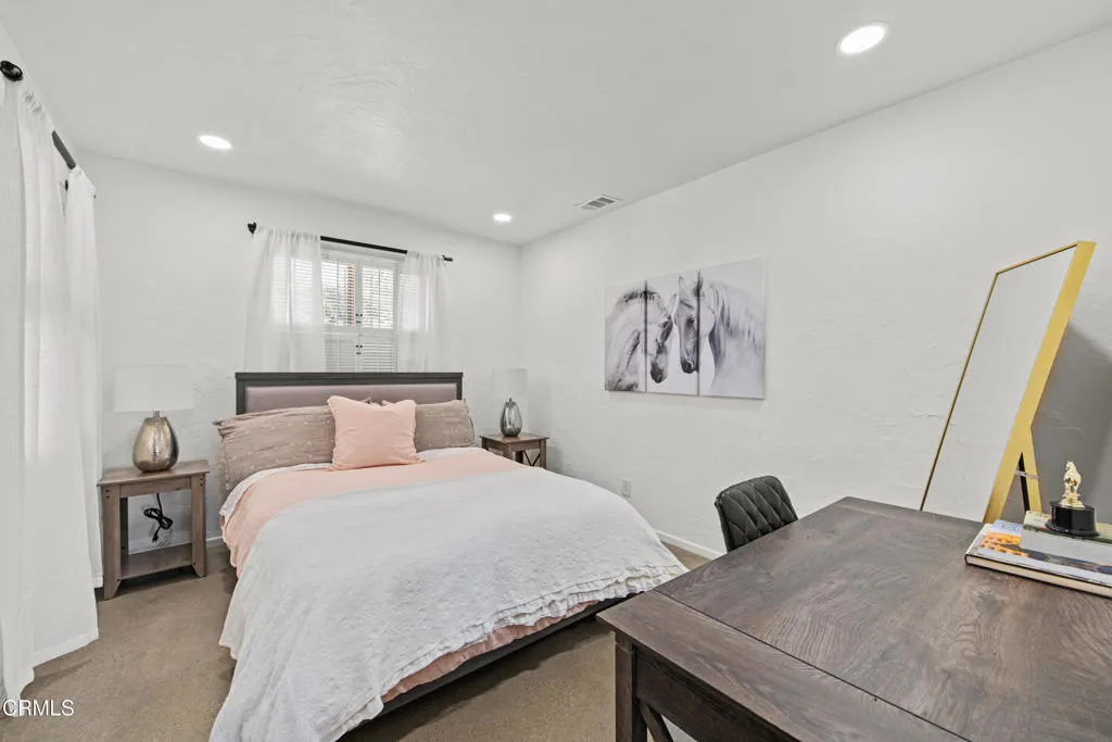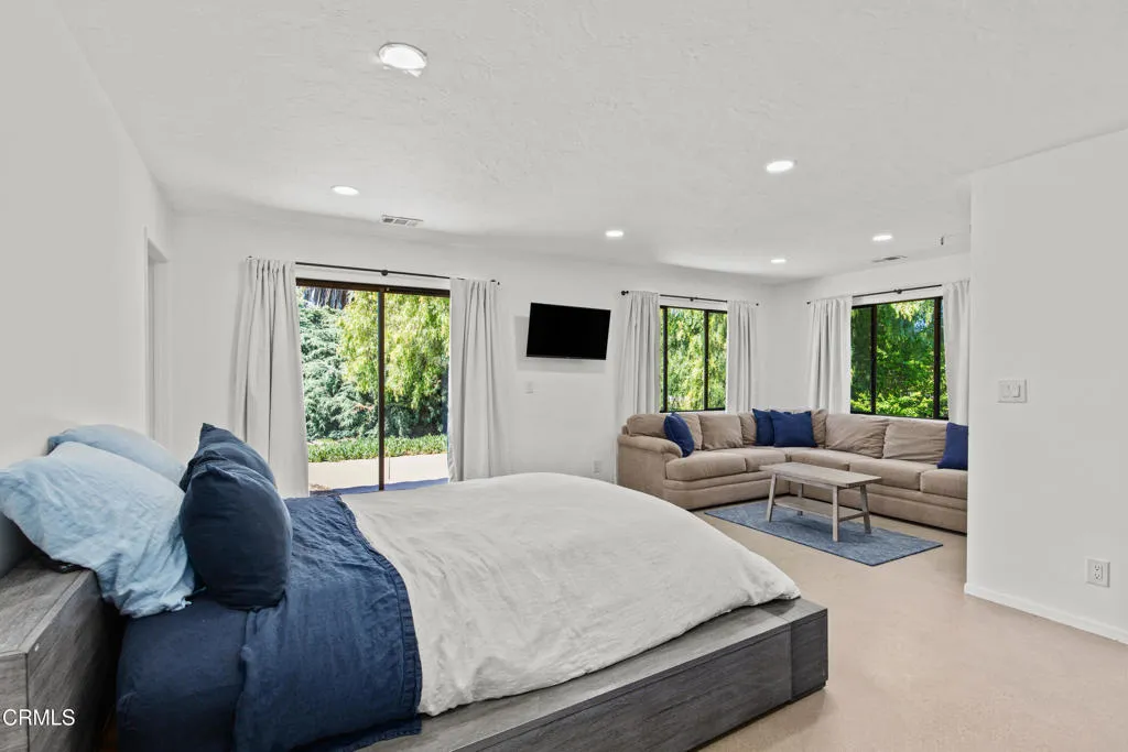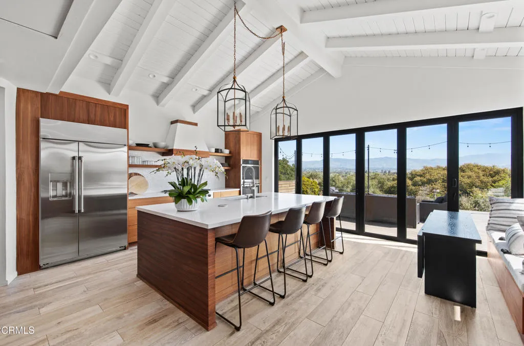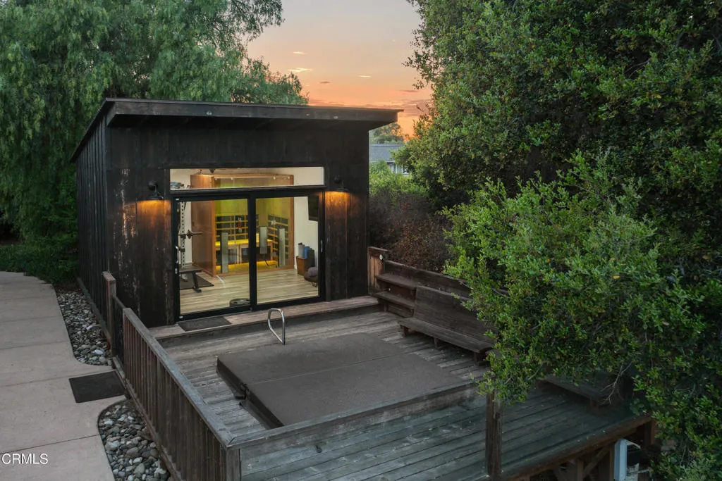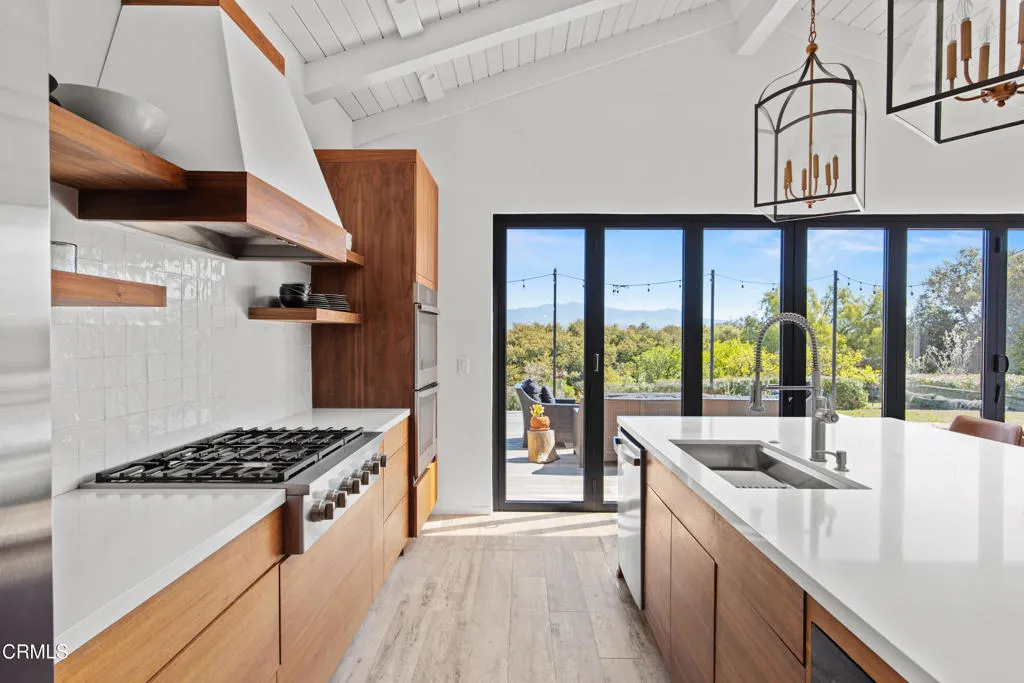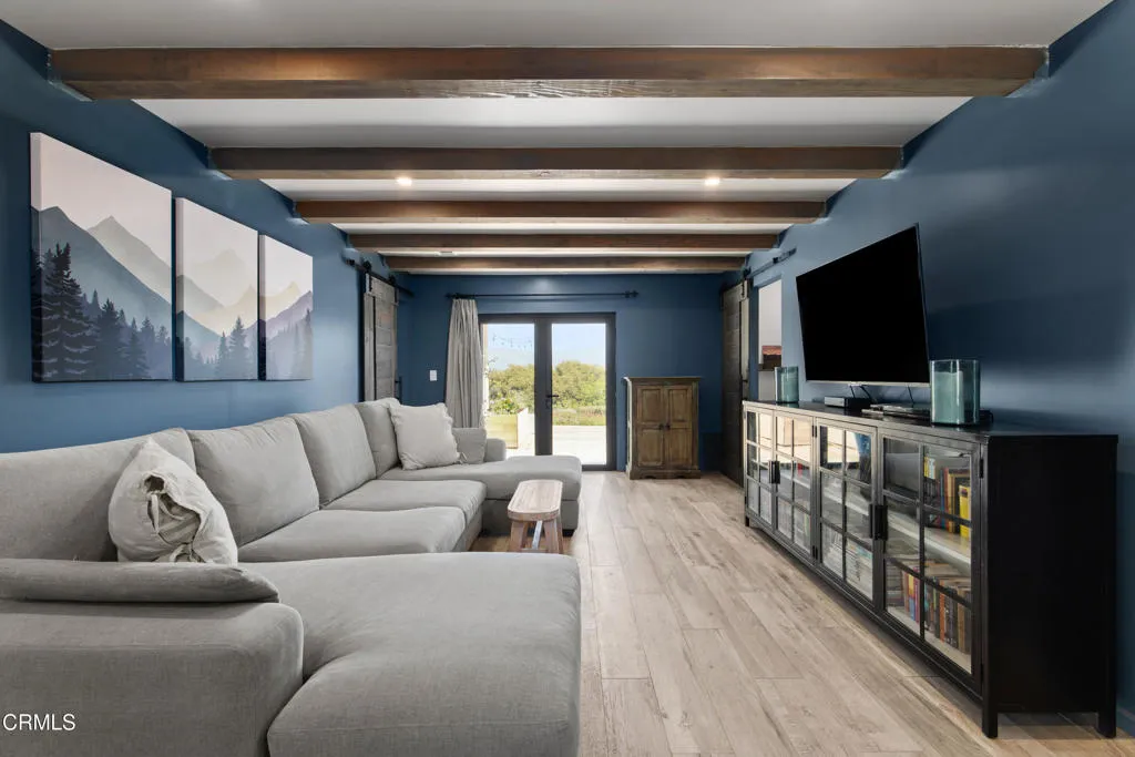 An elevated escape with sweeping views, where comfort and ease feel almost dreamlike. Set on 5+/- acres in the heart of Santa Ynez Valley Wine Country, this modern Spanish-style ranchette rests within the highly sought-after Ballard School District. Gated and framed by natural beauty, a long, scenic drive winds its way to a setting defined by open skies, golden light, and a quietly enchanting sense of arrival. The remodeled 4 bedroom, 3 bath main home blends warmth with contemporary design, creating spaces that feel both inviting and inspired. At its heart, a chef's kitchen opens effortlessly to the outdoors through a full wall of bi-fold glass doors, while a sunlit built-in breakfast banquette invites slow mornings and easy conversation. Vaulted wood-beamed ceilings, polished concrete floors, custom imported wrought iron lighting, and a cozy fireplace lend texture and character, striking a balance between relaxed comfort and understated elegance. Picture windows frame the surrounding landscape, while a separate family room and bonus office offer flexibility for both quiet retreat and lively gatherings. A detached 1 bedroom, 1 bath guest house offers a charming extension of the property, complete with its own private driveway, a two-car garage, and a lower-level studio or office, ideal for visitors, creative pursuits, or additional income potential. Outdoors, the grounds unfold like a hidden world waiting to be experienced. The lower three acres have been thoughtfully groomed into a magical forest of live oaks, where these protected, majestic trees create a canopy of dappled light and winding paths. It's a setting that feels straight out of a storybook, inviting exploration, imagination, and peaceful moments beneath the branches. Nearby, the expansive flat driveway offers a versatile setting for recreation and gathering, with plenty of room for bikes, roller skating, and carefree afternoons. A charming greenhouse, trellised potting shed, and flourishing fruit orchards add to the property's sense of abundance, while a stylish tiny house gym with a deck offers a peaceful space to recharge, all set against a backdrop of breathtaking natural beauty and views of Figueroa Mountain.