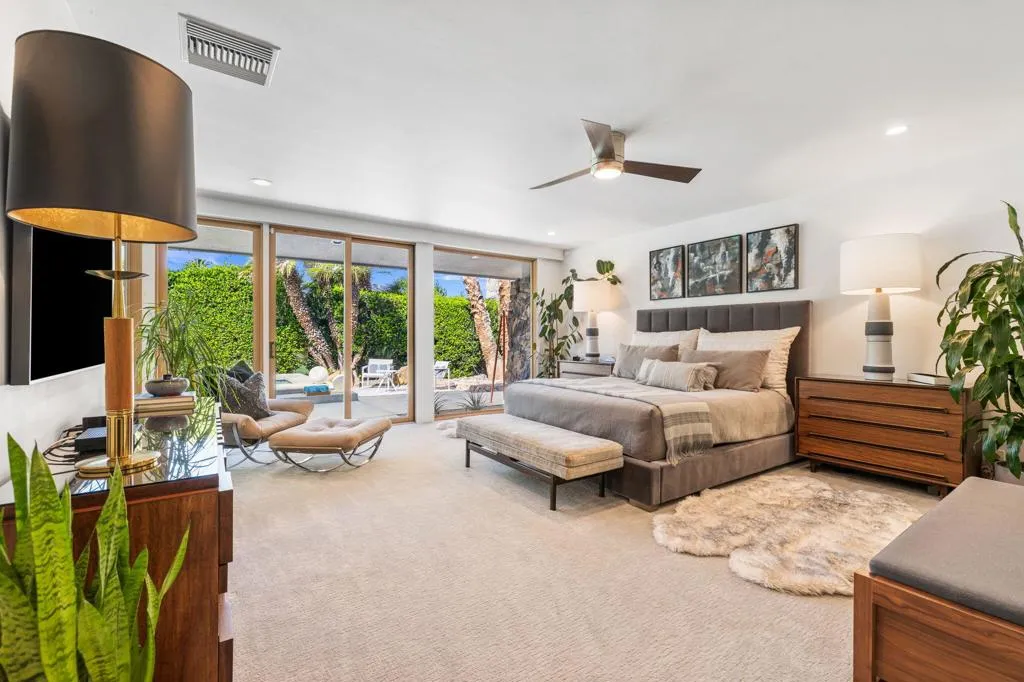 Experience refined desert living in this exceptional mid-century inspired residence, a true expression of the iconic desert aesthetic. Ideally located within the prestigious Thunderbird Country Club, 40225 Sand Dune is perfectly positioned along the 13th hole with panoramic mountain, lake and golf course views.Architecturally striking, the residence features vaulted ceilings and dramatic walls of glass that flood the interiors with natural light while seamlessly blending indoor and outdoor living. The beautifully curated living room is both sophisticated and inviting, complete with a stylish sunken bar--ideal for effortless entertaining.Featuring four spacious bedrooms and four bathrooms, the thoughtfully designed layout offers ideal separation, including three en-suite guest rooms and a private primary retreat. The primary suite serves as a true sanctuary, showcasing picturesque views of the lush backyard, rolling fairways, serene lake, and iconic desert mountains beyond.Step outside to a resort-style backyard featuring an expansive pool and spa, along with multiple seating areas perfectly positioned to relax, entertain, and take in the breathtaking scenery.A rare opportunity to own a truly remarkable home in one of Rancho Mirage's most prestigious communities.