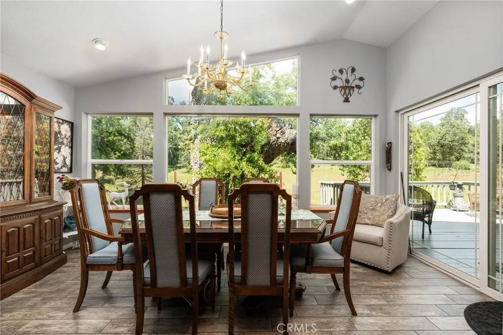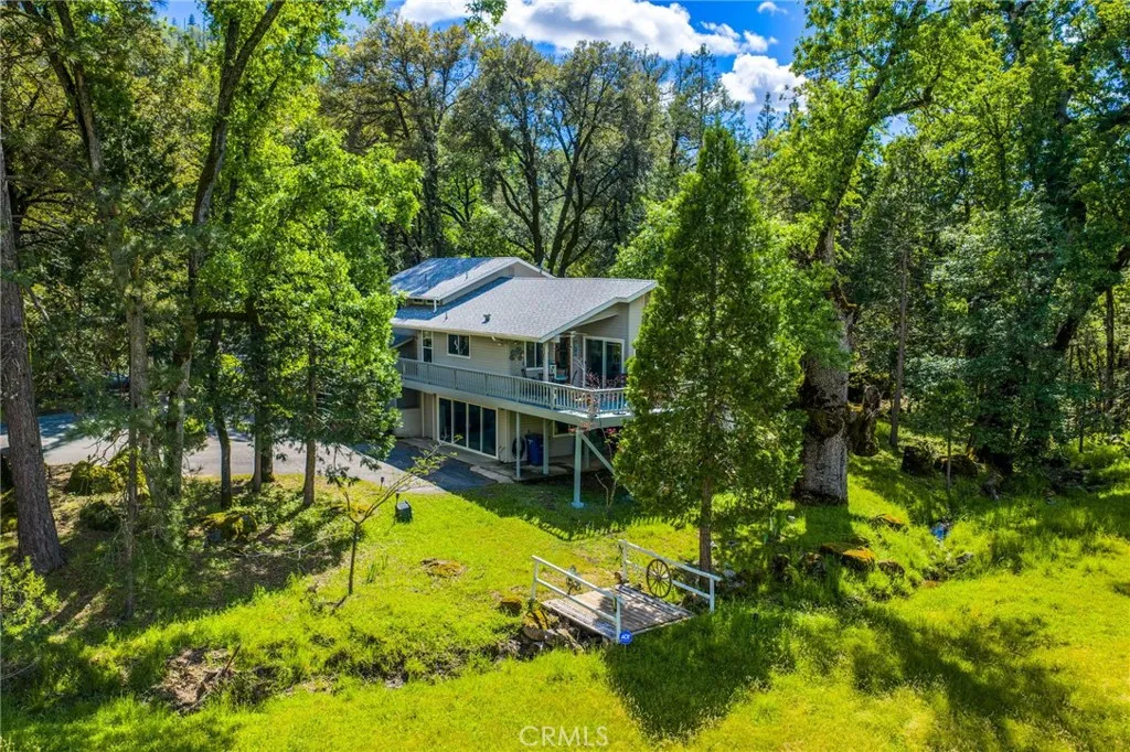 Turnkey 5-bedroom vacation rental in Coarsegold—just a short drive to Yosemite—with RV parking, game room potential, and 3.5+ acres. A rare find in Mudge Ranch for investors or second-home buyers. Welcome to your private mountain retreat set among towering pines and mature oaks at 3,300 ft elevation, offering a comfortable year-round escape. With over 2,800 sq ft, 5 bedrooms, and 2.5 bathrooms, the layout is ideal for hosting large groups and maximizing short-term rental income. The updated kitchen with granite countertops and bar-top seating provides a central gathering space, while the separate dining room features a wood slider, allowing you to create a more private, flexible space off the living area—perfect for entertaining or guest separation. Large windows bring in abundant natural light and frame peaceful views of the surrounding meadow and seasonal creek, creating a warm and inviting mountain atmosphere. The primary suite includes a private covered patio, offering a quiet place to unwind. Outside, the newly painted deck is perfect for enjoying morning coffee while watching deer and wild turkeys pass through. Additional features include RV parking, a detached garage, a Rinnai tankless water heater, newer roof, and built-in cabinetry throughout for added storage and functionality. The 3.5+ acre lot provides space, privacy, and future potential. Conveniently located 10 minutes to Oakhurst, 35 minutes to Yosemite National Park, and 45 minutes to Fresno, this home sits in a high-demand vacation rental corridor with strong appeal for both investors and second-home buyers. A versatile property offering both lifestyle and income potential—don’t miss this opportunity.