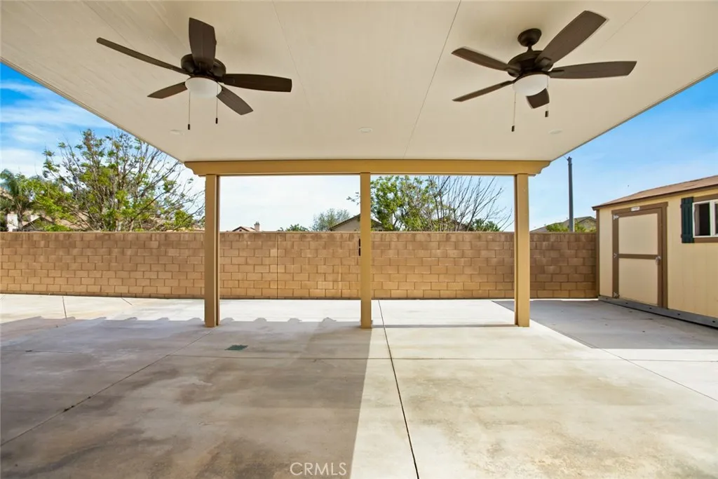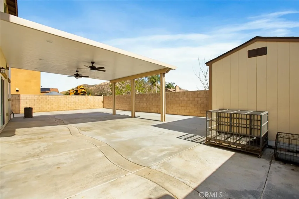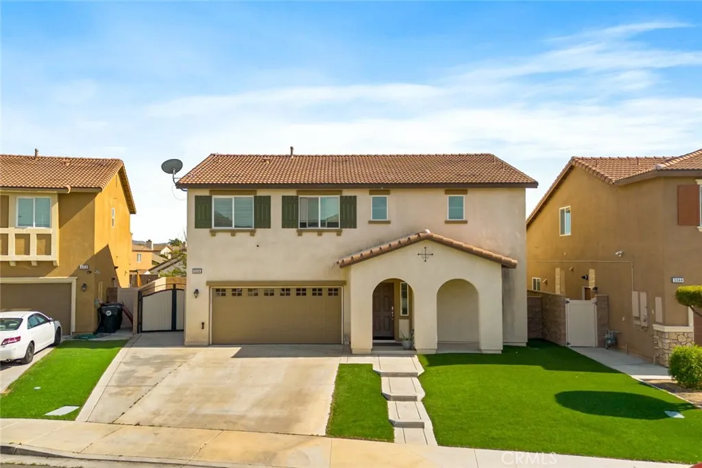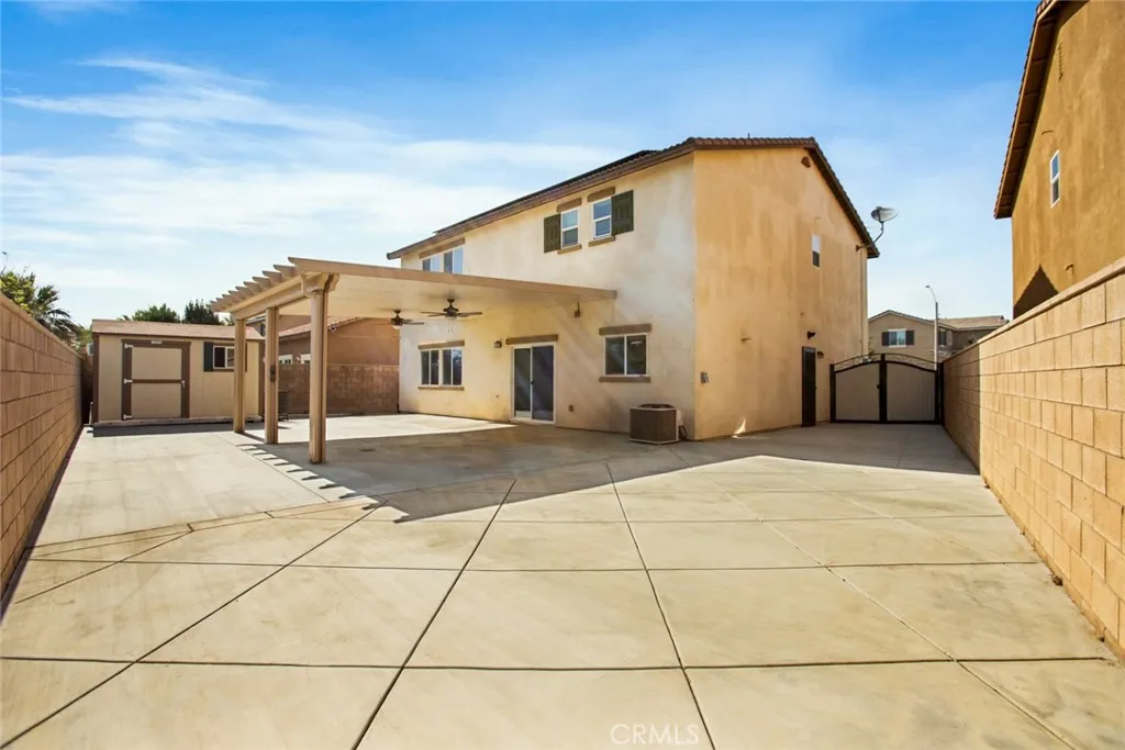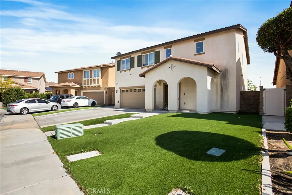 Welcome to this beautifully maintained 4-bedroom, 3-bath home, built in 2018, where modern style meets everyday comfort and thoughtful design! From the moment you step inside, you’ll appreciate the light and bright interior, upgraded flooring, and recessed lighting throughout—creating a warm and inviting atmosphere in every room. A bedroom and full bathroom on the main floor offer the perfect setup for multi-generational living, guests, or a private home office. Upstairs, an oversized loft creates an incredible flex space—ideal for a kids’ hangout, game room, or cozy movie nights. The spacious primary suite is a true retreat, featuring a beautifully appointed en-suite bathroom with dual sinks, a large walk-in shower, and a generous walk-in closet. Step outside and fall in love with the no-maintenance backyard, thoughtfully designed for easy living and effortless entertaining. Enjoy the covered patio with two ceiling fans—perfect for weekend gatherings, or simply unwinding at the end of the day. The widened driveway adds extra convenience and functionality, while a backyard storage shed adds valuable extra space. Located in the heart of Jurupa Valley, you’re just minutes from Jurupa Valley Regional Park, Sky Park, and Mt. Rubidoux, offering endless opportunities for outdoor fun. Golf courses are also nearby, making this an ideal location for an active lifestyle. Even better—this home comes with no HOA, giving you the freedom and flexibility that’s hard to find. Plus, this home features leased solar panels with two attached batteries. As an added bonus, all appliances are included in the sale, making this home truly move-in ready!