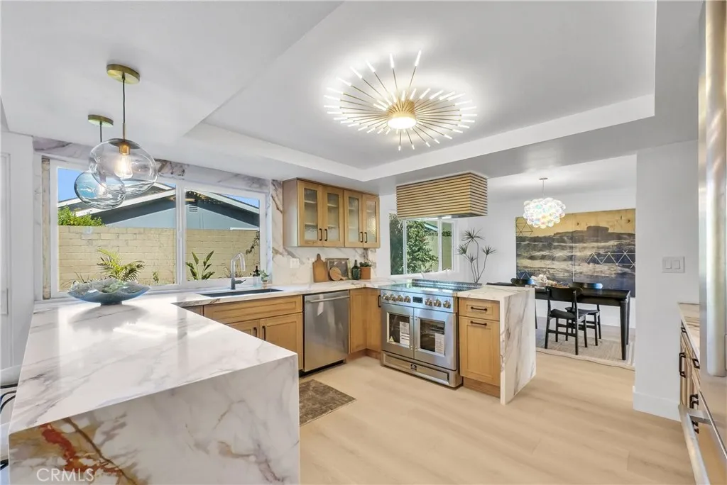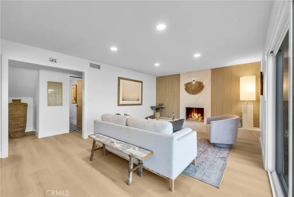 Extensively updated and move-in ready, this stunning Stanford Jr. model is located in the highly sought-after College Park East neighborhood of Seal Beach, within the award-winning Los Alamitos Unified School District. Offering 4 bedrooms & 2.5 bath home blends modern design with exceptional comfort. From the moment you enter, you’ll notice the attention to detail, new luxury laminate flooring, recessed lighting, and carefully selected designer light fixtures create a warm yet elevated atmosphere throughout. Multiple living spaces, including a formal living room and separate family room, each with its own fireplace, offer flexibility for both entertaining and everyday living. The fully remodeled kitchen is both stylish and functional, featuring quartz countertops, soft-close cabinetry, a built-in Thermador refrigerator, Thermador dishwasher, and a Forno Induction Range with a French door oven. The open layout allows the kitchen to flow seamlessly into the living area and dining space while overlooking the backyard. A main-floor bedroom provides added versatility for guests, a home office, or multi-generational living. Upstairs, the expansive primary suite offers a true retreat, complete with a fireplace, seating area, and a spa-inspired bathroom featuring a large walk-in shower designed for two, with dual rain shower heads, handheld fixtures, and dual vanities. Additional upgrades include dual-pane windows, a new AC, and a finished 2-car garage with drywall. New Concrete in driveway & garage floor. Outside, the freshly landscaped front and backyard benefit from an irregular lot, creating an unusually spacious outdoor setting with endless possibilities. College Park East offers and exceptional value with 4 parks, including basketball and tennis courts, many shopping and dining options & easy Freeway access, With high-end upgrades, a desirable floor plan, and a prime location, this home stands out as a rare opportunity in one of Seal Beach’s most desirable communities!