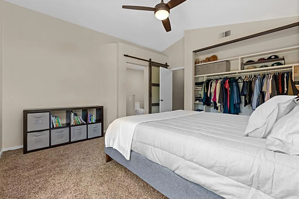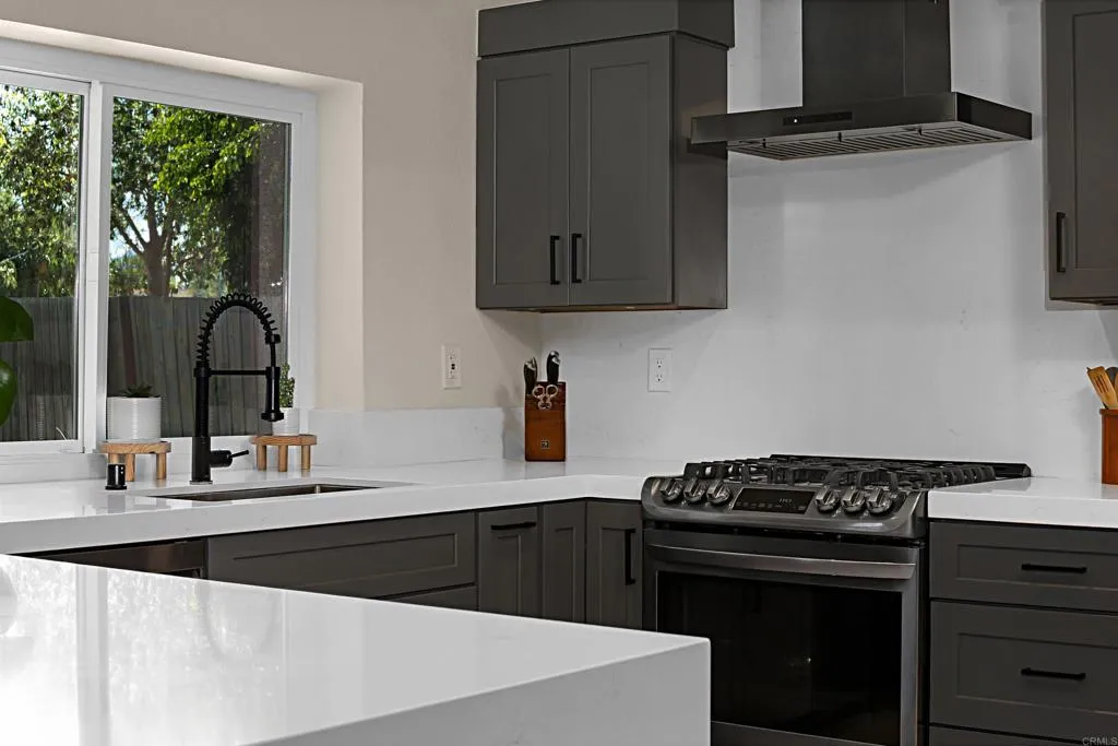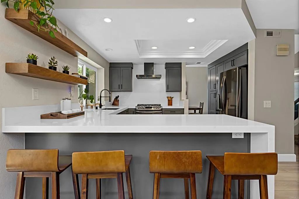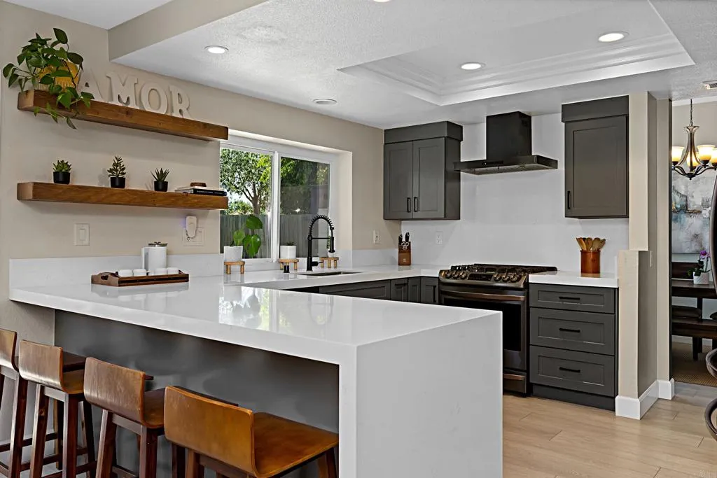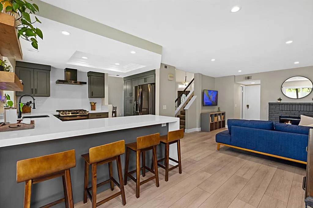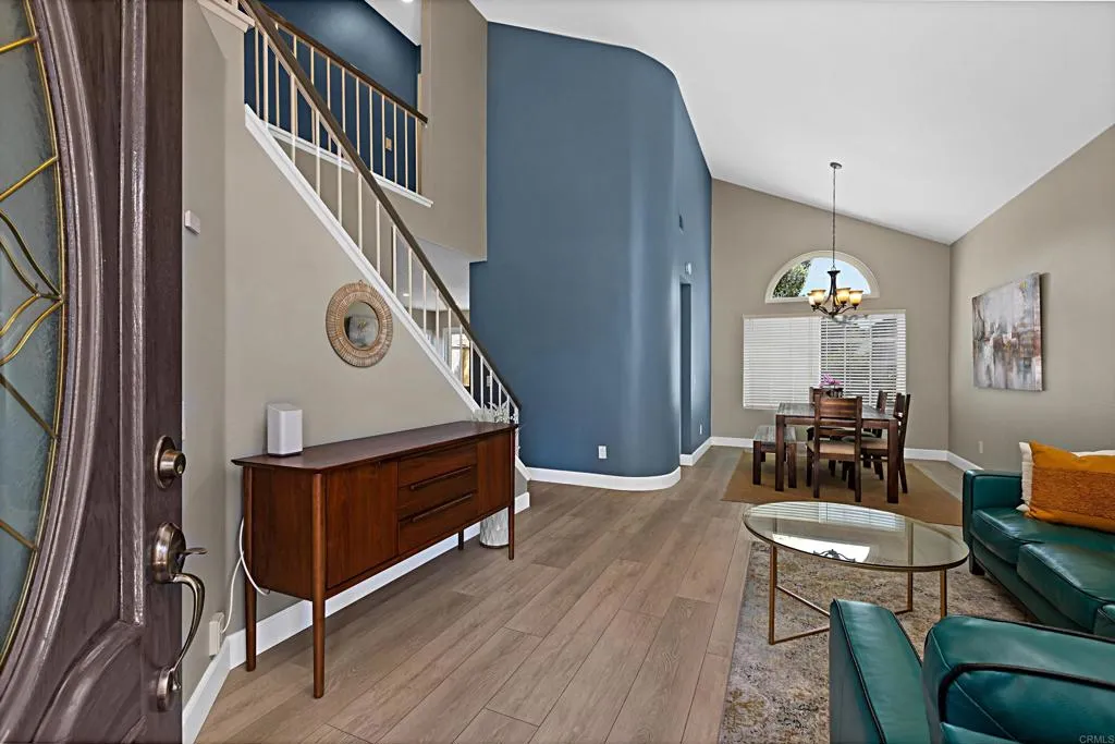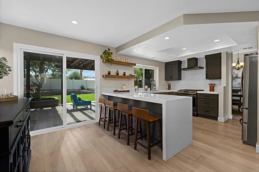 Welcome home to this beautifully updated property where contemporary style meets functionality, situated in the quiet & welcoming neighborhood of Las Casitas. Step inside to a beautifully remodeled first floor featuring luxury vinyl plank flooring and high ceilings that amplify the space. The fully redesigned kitchen is the centerpiece of the home, complete with sleek cabinetry, quartz countertops with a striking waterfall edge, and upgraded appliances including a gas range and stainless-steel sink. Natural light fills the home through newer Milgard windows and sliding doors, enhancing energy efficiency and comfort. The spacious layout flows seamlessly, creating an inviting atmosphere in every room. Upstairs, the home continues to impress with fully remodeled bathrooms, including spa-inspired touches and premium tile, stone and fixtures. Experience the comfort of your master bedroom with direct access to a deck, perfect for relaxing and enjoying quiet evenings after work. Step outside to a private backyard retreat, professionally redesigned with pavers, turf, and a stone retaining wall ideal for low-maintenance living and outdoor entertaining. Other major upgrades provide long-term value, such as a recently updated roof with new tile and custom gutters, a HALO ION water conditioner; and a high-efficiency 4-ton AC Pro system and furnace. Residents of Las Casitas enjoy access to a community pool, dog park, and plenty of guest parking. Ideally located near Daley Ranch and Dixon Lake, offering miles of scenic hiking trails, fishing, and camping. Schedule your private showing today!