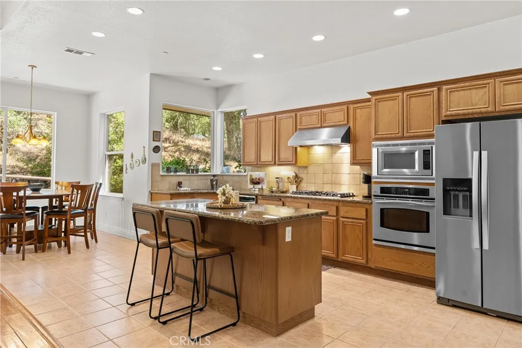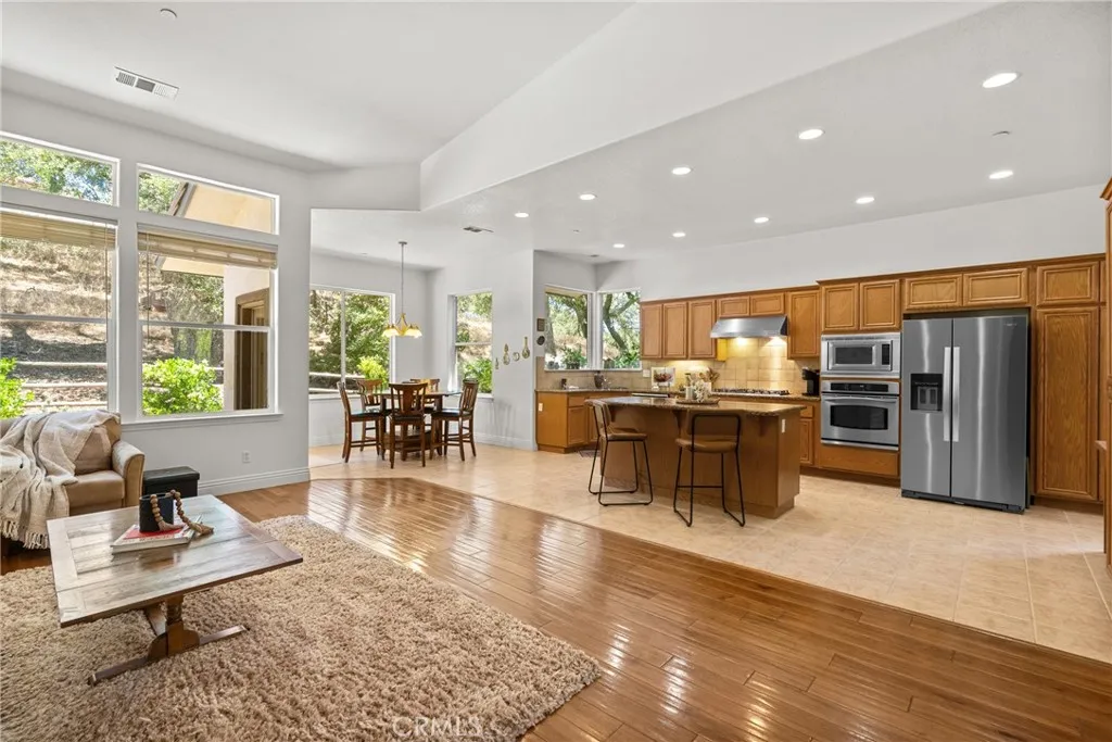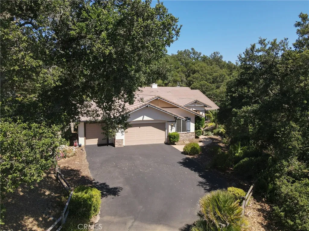 Welcome to 12703 Paso Verde Court, tucked at the end of a quiet cul-de-sac. Set on a gated and beautiful 6.13-acre parcel, this lightly lived-in 4-bedroom, 3-bathroom home offers 3,498± square feet of thoughtfully designed living space surrounded by stately oaks and serene natural beauty. Inside, a grand formal entry welcomes you with soaring vaulted ceilings, rich hickory hardwood floors, architectural details, and expansive windows that fill the home with natural light. The formal living and dining areas create an elegant first impression, while the spacious family room with a cozy fireplace opens seamlessly to the heart of the home, the chef’s kitchen. Designed for both everyday living and entertaining, the kitchen features granite countertops, a large center island with bar seating, stainless steel appliances, custom cabinetry, and generous prep space. Just beyond, a casual dining nook leads through French doors to an oversized patio—perfect for outdoor dining, relaxing evenings, and taking in the peaceful surroundings. The primary suite offers a private retreat with tall ceilings, a sitting area with a marble-surround fireplace, large picture windows, and direct patio access. The en-suite bathroom includes dual vanities, a soaking tub, dual-head walk-in shower, and two walk-in closets. Three additional guest bedrooms with 10-foot ceilings, two full bathrooms, and a well-appointed laundry room provide comfort and functionality for family and guests alike. Additional features include an owned solar system with Tesla battery backup, upgraded LeafGuard rain gutters, security wiring, 220V power in the oversized three-car garage and laundry room. The property also offers a variety of fruit trees—peach, orange, lemon, grapefruit, and olive—thriving in the area’s unique microclimate. Located just 12 miles from Morro Bay’s coastline and approximately 20 minutes to Paso Robles wine country, this property offers a peaceful setting with expansive views—on clear days stretching toward the ocean—along with a temperate microclimate that often brings cooler summers and milder winters than in-town locations. Positioned within a Firewise-certified community, the home includes an interior fire sprinkler system, with a fire hydrant conveniently located just outside the property—offering added peace of mind while enjoying the privacy of this exceptional setting. Seller may consider offering credits toward closing costs or updates.
