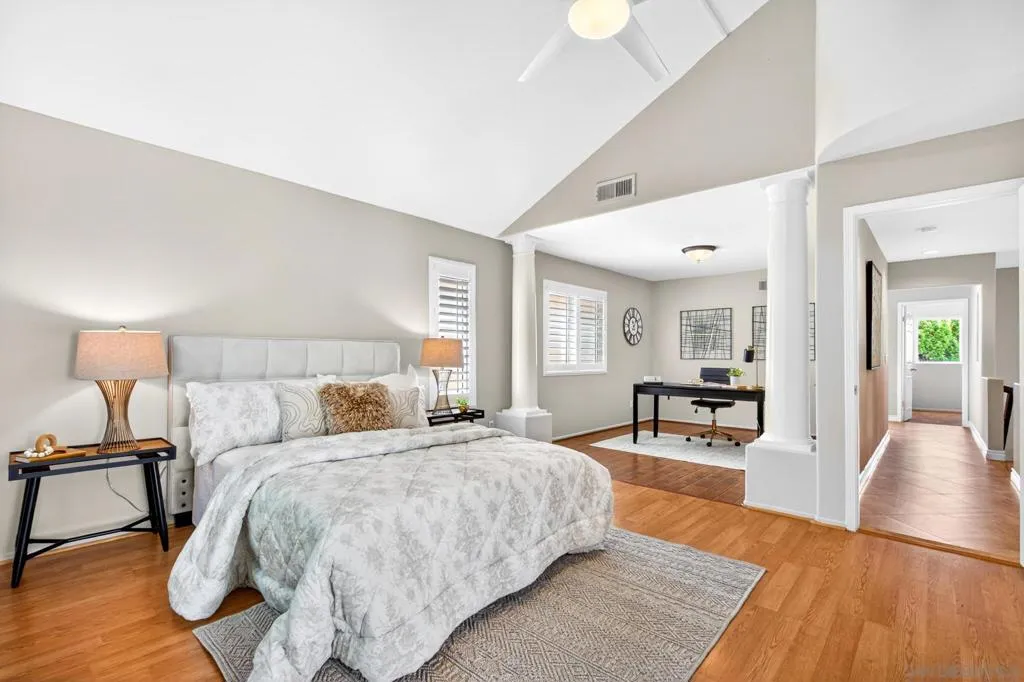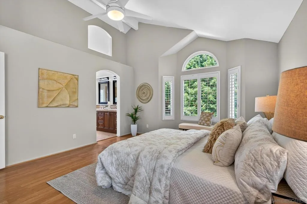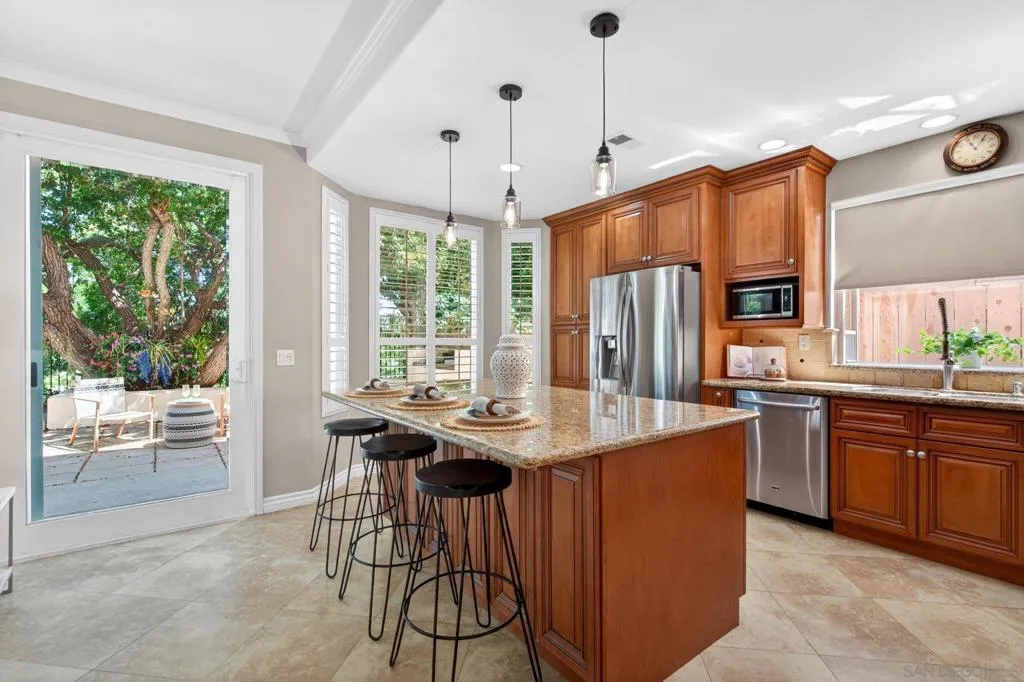 Located in the highly desirable Carmel Mountain Ranch community, this beautifully maintained home offers an exceptional combination of privacy, convenience, and pride of ownership. Ideally positioned within the neighborhood with no rear neighbors, the property provides a peaceful setting and enhanced privacy. The home features updated kitchen and bathrooms, showcasing modern finishes and thoughtful improvements throughout. The flexible floor plan includes three bedrooms upstairs plus an optional fourth bedroom currently configured as an extension of the primary suite—perfect for a home office, nursery, or fitness space. Meticulously cared for and truly move-in ready, this home reflects years of attentive ownership. Situated within the acclaimed Poway Unified School District. Enjoy close proximity to Carmel Mountain Ranch shopping, dining, and everyday conveniences—all within walking distance. Commuters will appreciate easy access to Highway 56 (Ted Williams Parkway), connecting to Sorrento Valley, La Jolla, and UTC.