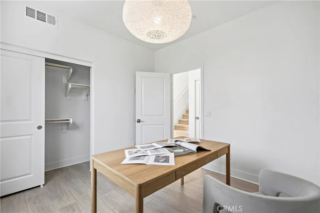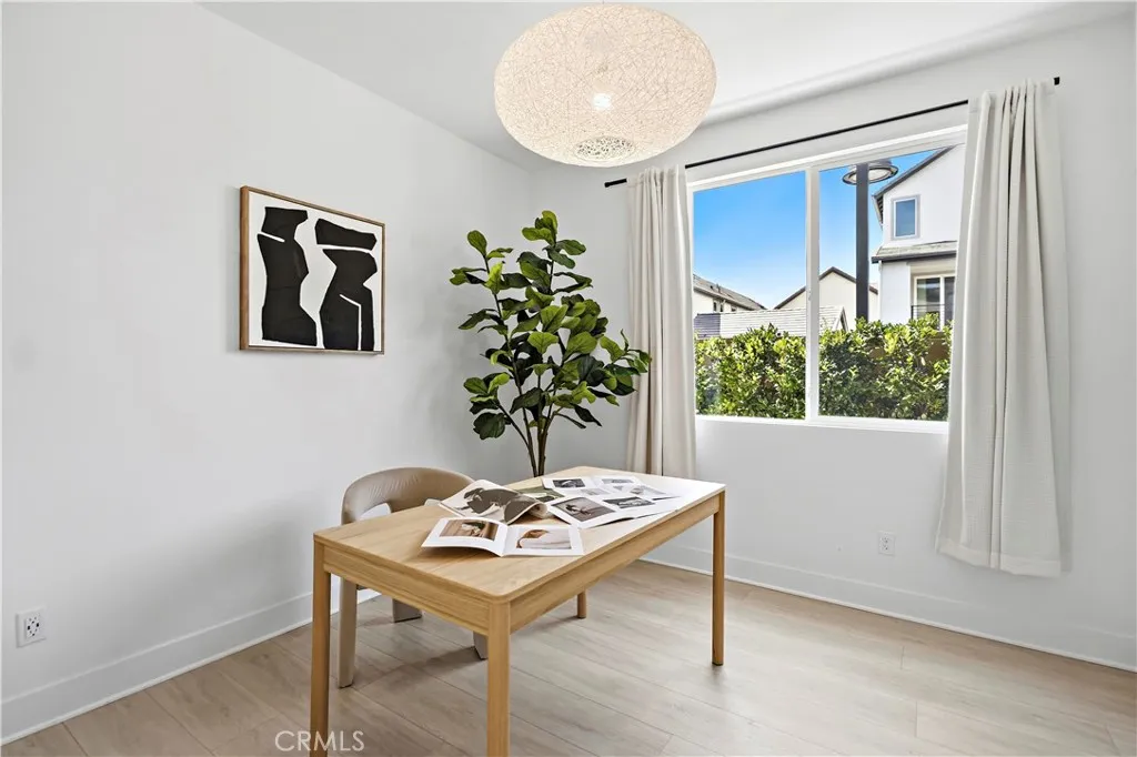 Nestled in the highly desirable Solis Park neighborhood of Great Park Community in Irvine, this stunning corner lot 4-bedroom, 3-bathroom residence offers modern comfort and an exceptional lifestyle. This thoughtfully designed floor plan is one of the most popular from Lennar, features a spacious side yard for entertaining or relaxing with family and friends. The main level includes a convenient bedroom and full bathroom, while the expansive open-concept living area showcases a gourmet kitchen equipped with a built-in GE Café™ smart refrigerator, convection oven, microwave, and a generous walk-in pantry—ideal for the home chef. The massive primary suite offers dual walk-in closets and a spa-inspired bathroom with a separate shower and soaking tub. An upstairs loft adds flexible living space. Oversized 2-car garage with a water filtration system and EV charger. Ideally located within walking distance to Solis Park School (K-8) and award-winning Portola High School, and short bike ride to resort-style amenities including 26 pools, parks, world class Ice Rink and upcoming The Canopy retail center. A rare opportunity to own a move-in ready home in one of Irvine’s most sought-after communities.