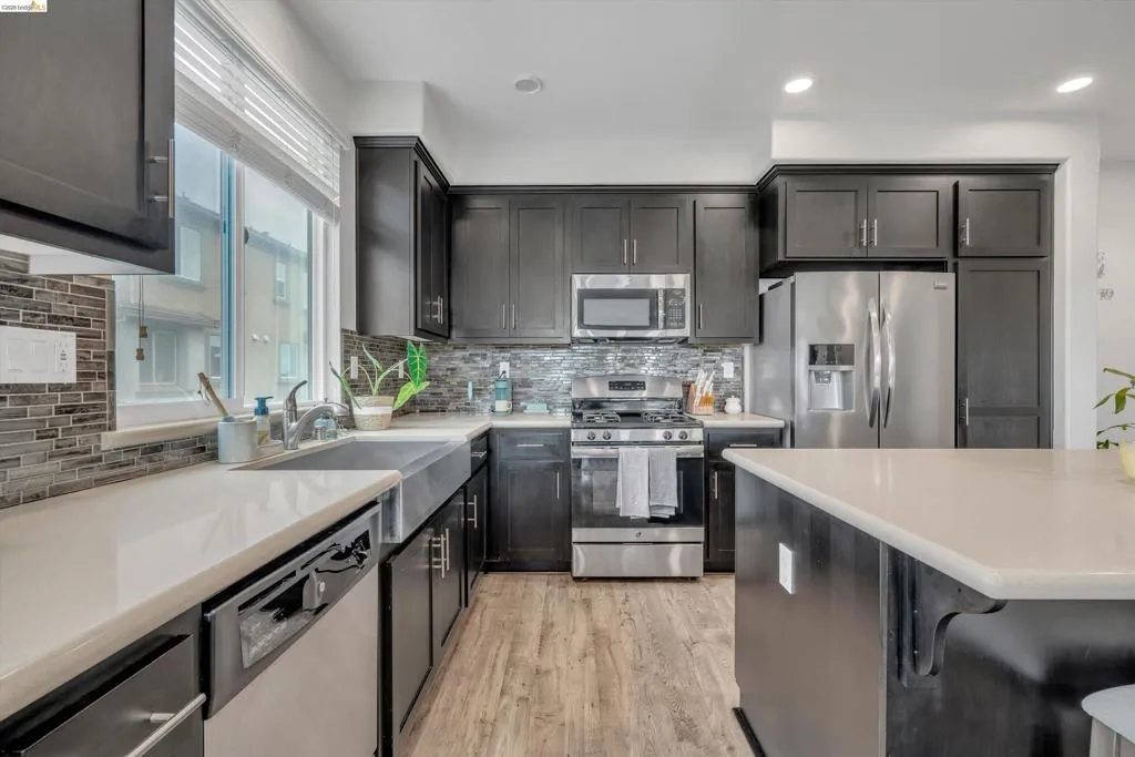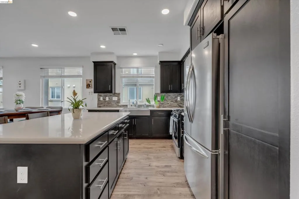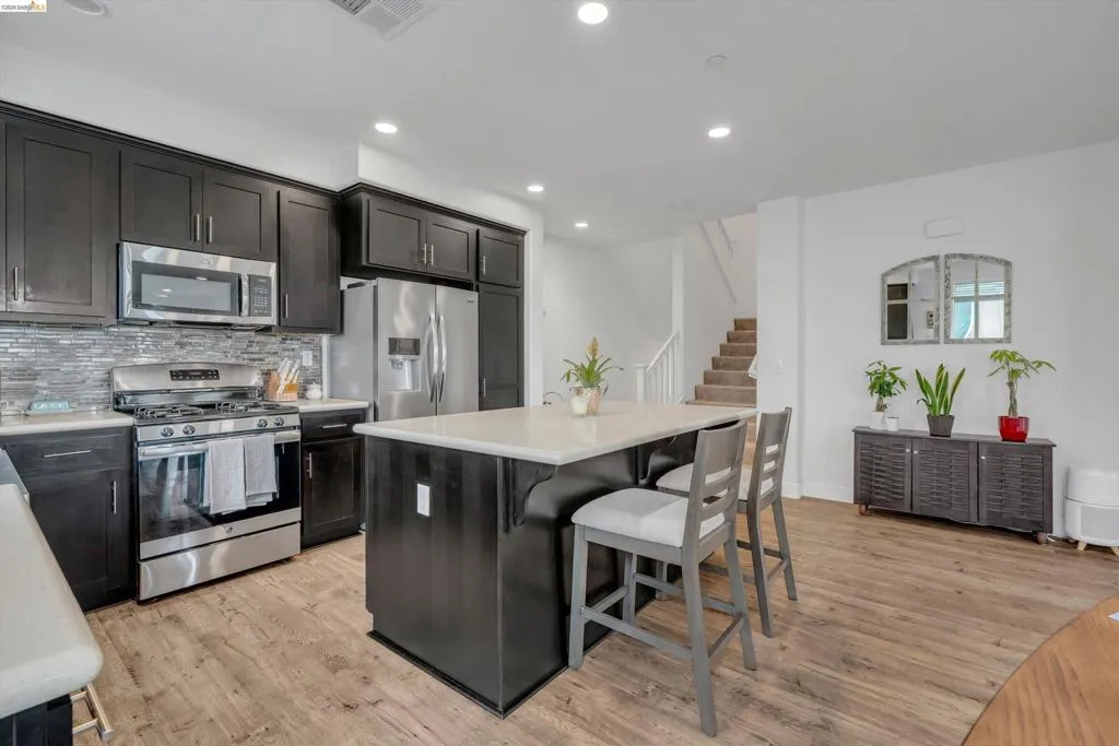 Don’t miss this Newark gem! This beautifully upgraded 3-story corner condo in the sought-after Prima community offers 3 bedrooms and 3 full baths with a modern, open layout. The kitchen is thoughtfully enhanced with an expanded center island, upgraded quartz countertops with a built-up edge, full tile backsplash, oversized farmhouse sink, and 40” upper cabinets for added storage. The main living areas feature Luxury Vinyl Plank flooring throughout the entry, staircase, kitchen, dining, and living spaces, along with builder-upgraded finishes. All three bathrooms include upgraded tile backsplashes and enhanced shower heads in the main-level and primary baths. The primary suite offers a walk-in closet, and a private balcony in the main level provides the perfect outdoor retreat. Ideally located near shopping, dining, NewPark Mall, Costco, and major commuter routes including I-880, Dumbarton Bridge, and BART, with easy access to tech hubs, parks, and Challenger School.