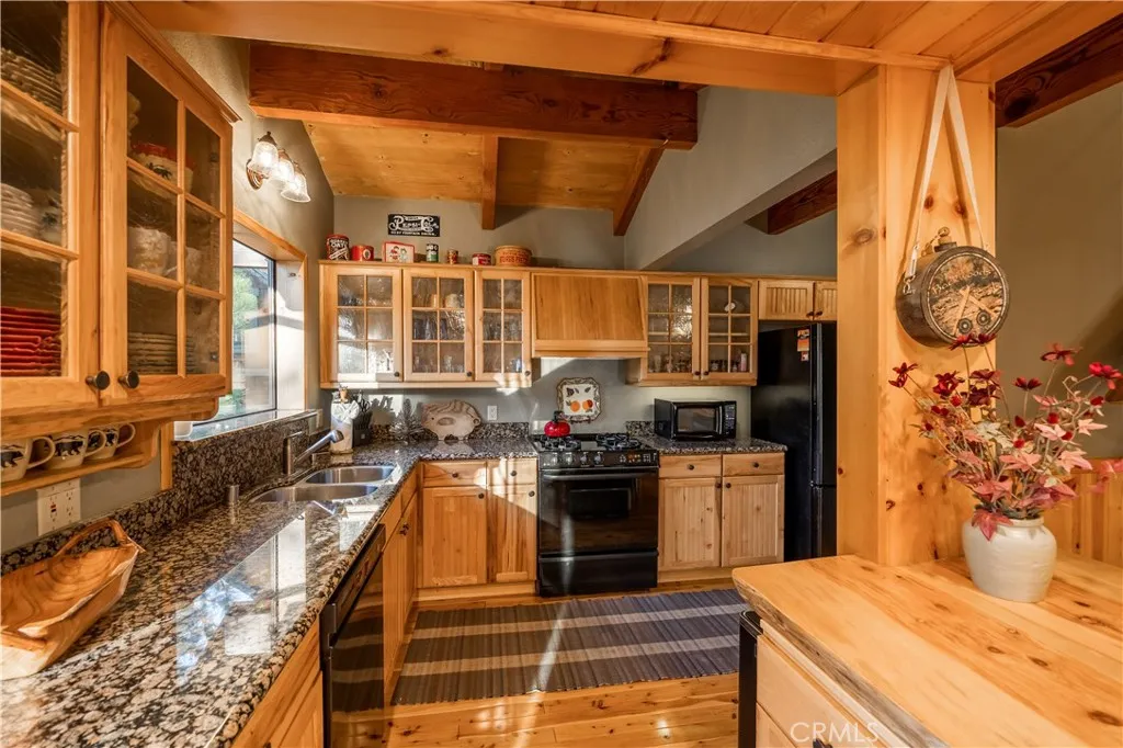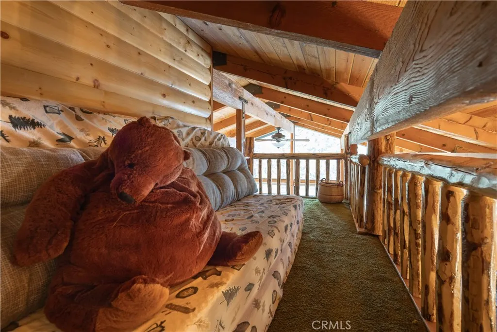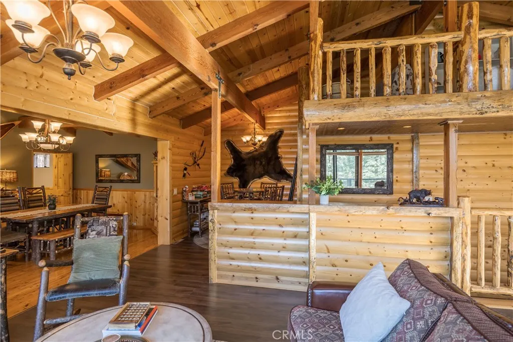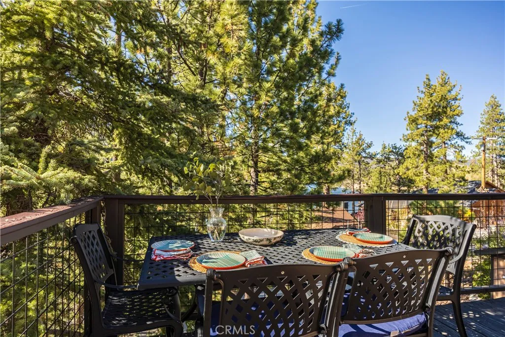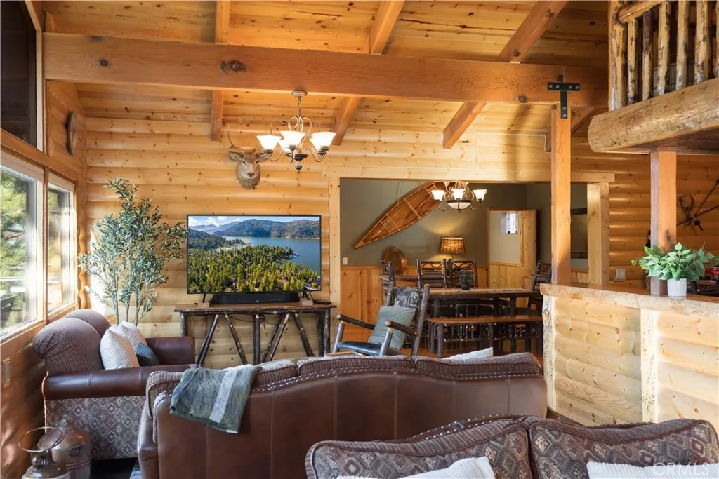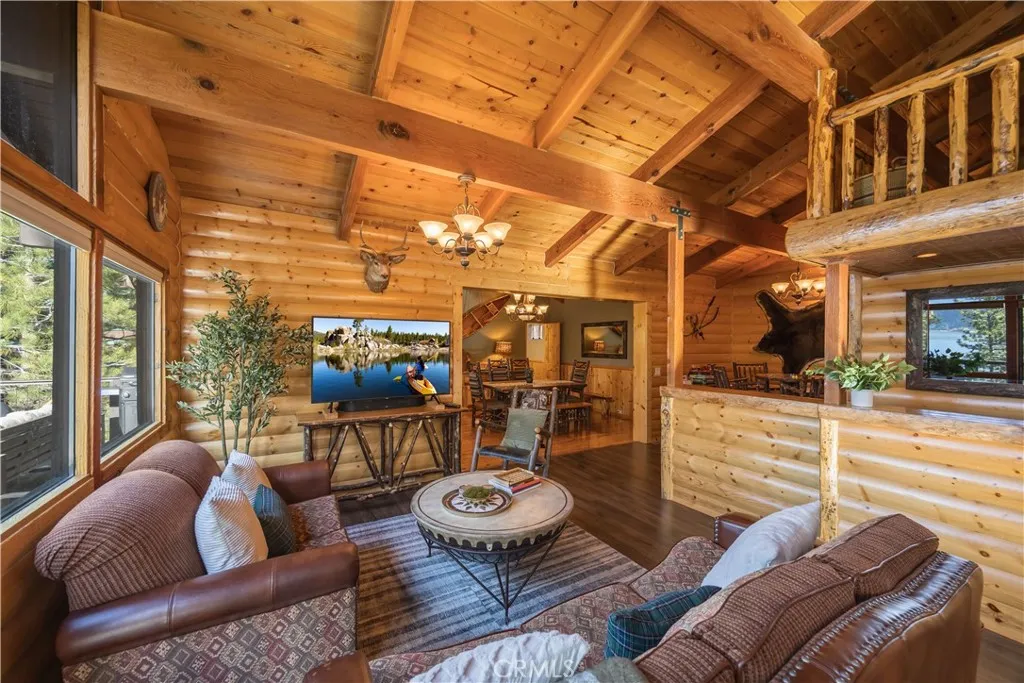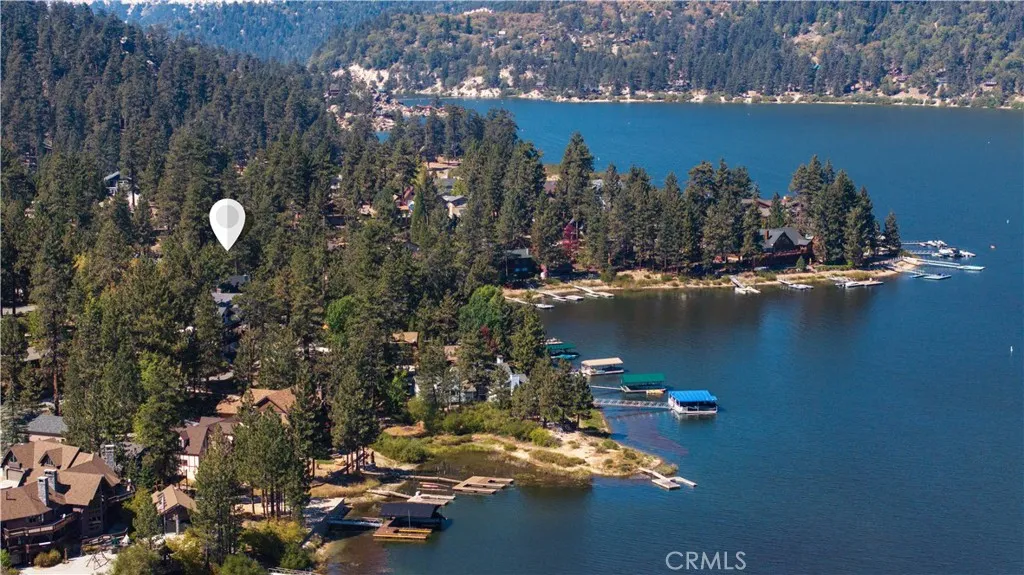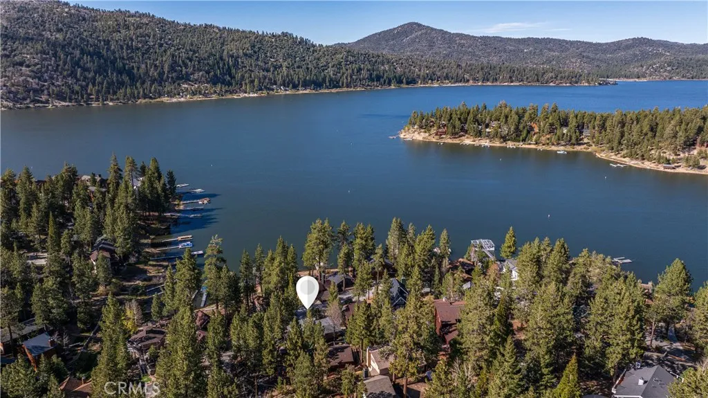 This Big Bear Lake West retreat offers a classic cabin feel with a prime elevation for rare, dramatic views of the lake and mountains. The interior features vaulted wood-beamed ceilings, a floor-to-ceiling stone fireplace, and a 30' great room with massive wall of glass that fills the space with natural light. With four spacious bedrooms, a kids' loft, and brand-new hot tub, the property is perfectly configured for either a high-occupancy short-term rental or spacious family retreat. The indoor-outdoor living is fantastic, featuring a 500 sf deck with grill, firepit and separate spaces for relaxing and dining. The home’s layout is designed for effortless entertaining, featuring a large formal dining area, eat-in kitchen with lake views, and a game area with custom wet bar. Outside, the large horseshoe driveway comfortably parks five cars, and is complemented by an oversized one-car garage that doubles as a secondary game room. Located in an ultra-quiet, premier neighborhood, you are just minutes from the iconic Castle Rock Trail and other scenic hiking paths. Residents enjoy easy access to Boulder Bay and nearby lake entry points perfect for launching a canoe or kayak. Offered fully furnished and move-in ready, this home provides a unique vantage point in one of the mountain's most desirable areas.