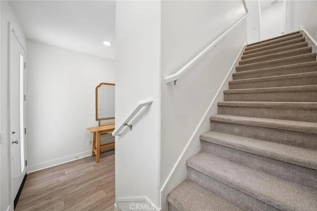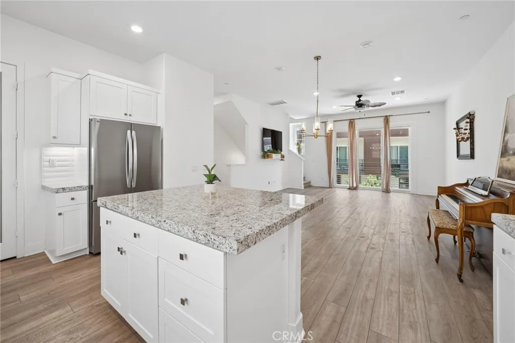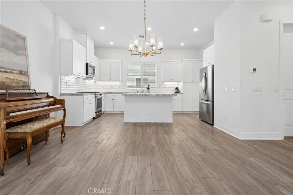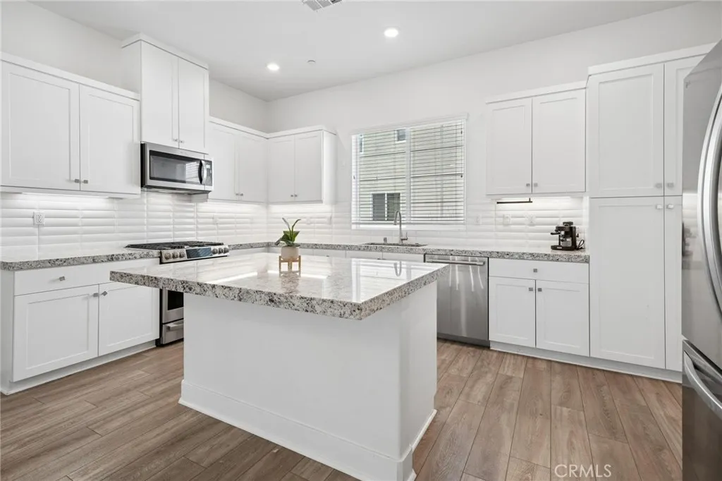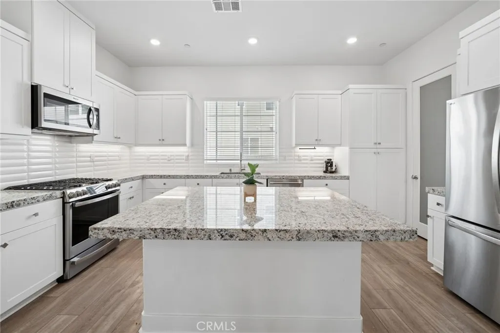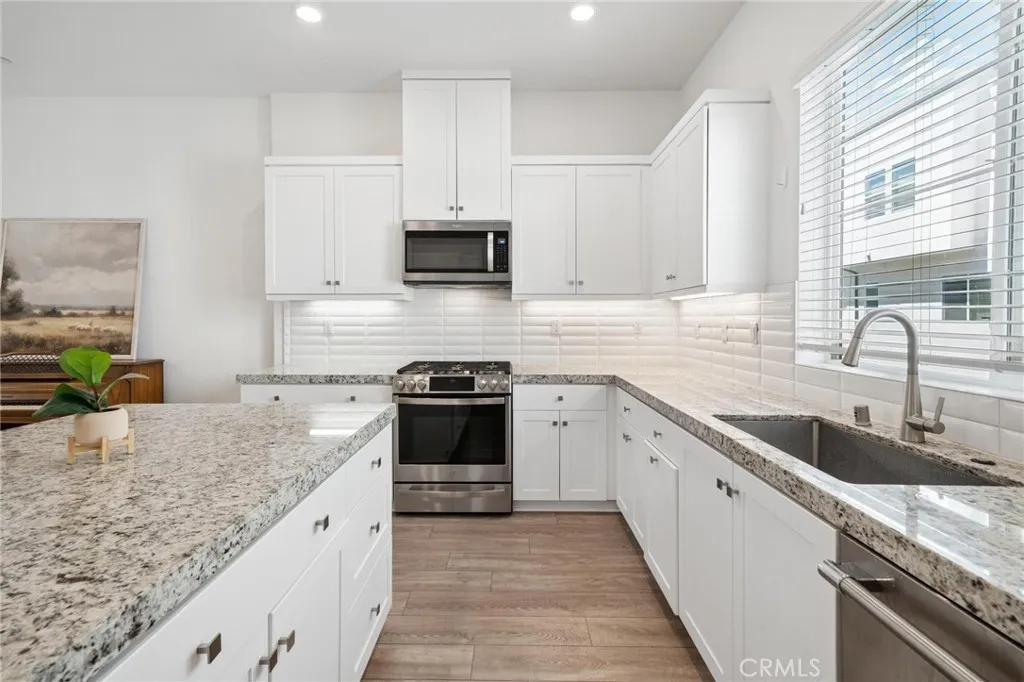 Gorgeous, model sharp Valencia townhome in a great location in this new planned community. This is the "Two Primaries" model with each bedroom having a private full bath with another half bath downstairs bath for guests. This model also is a true townhome with no one above or below, a private, not shared driveway and an oversized 2-car garage with direct access into the home. Sharp upgrades include plank style laminate flooring, lighting, window treatments and an oversized kitchen with center island, walk-in pantry, stone counters and stainless appliances, including a built-in refrigerator. All very light and bright, practically new and well maintained. Off the massive great room is a deck with views toward the hills. The two bedrooms are upstairs and have access to the indoor laundry area and two nice full baths. The 5 points Valencia community offers many amazing amenities including Confluence Park, multiple pools, Community Garden, lighted walking trails and more. The schools are also a major draw for the community as is the proximity to shopping, restaurants and freeway access for commuters. This well designed townhome is sharp and priced to sell!