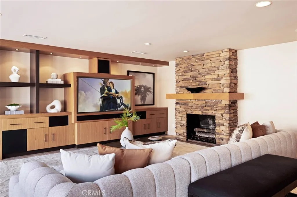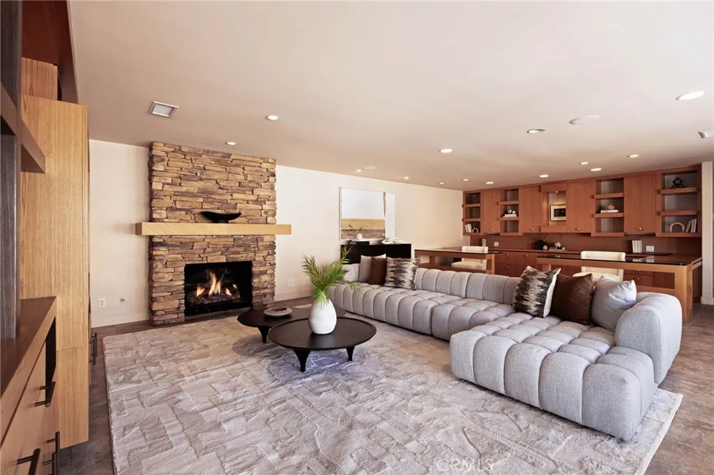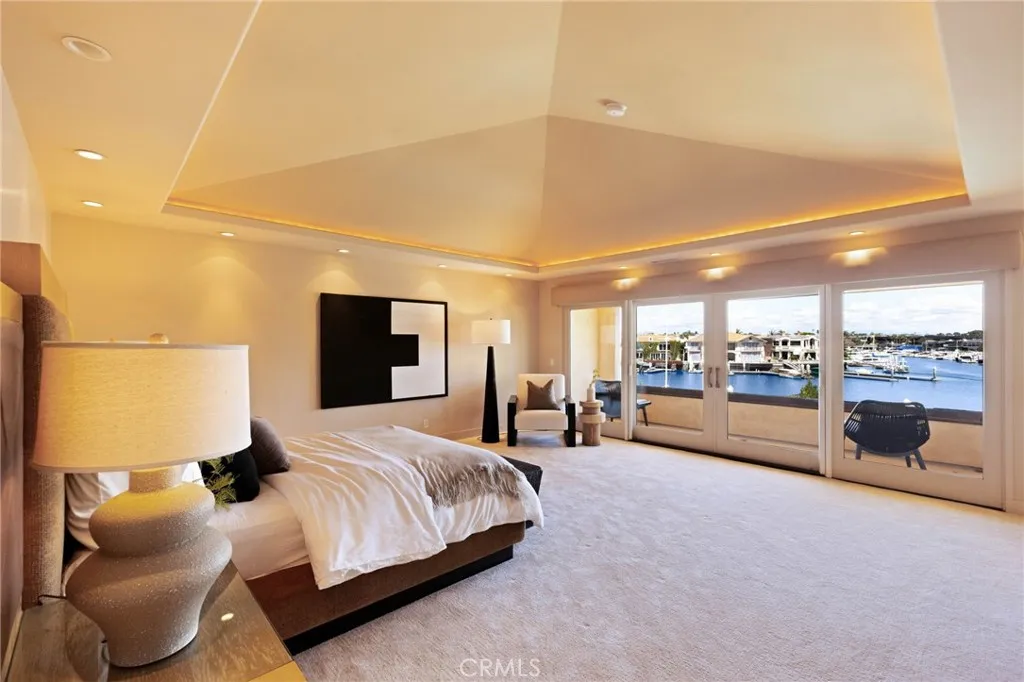 Positioned along a coveted stretch of bayfront on exclusive Harbor Island in Newport Beach—where waterfront homes are tightly held and seldom available—this exceptional Newport Harbor bayfront residence captures the essence of coastal luxury living with rare frontage, a large private dock, and panoramic water, city light, and mountain views. Originally reimagined in 2006 and thoughtfully maintained, the home reflects a timeless coastal aesthetic with generous scale, comfortable livability, and enduring design. The main living level is defined by a sequence of open waterfront living and dining spaces that unfold with clean, intentional design, anchored by a sculptural sunken bar and opening seamlessly to the bayfront terrace and pool—creating an effortless indoor–outdoor environment for entertaining along the water’s edge. The adjoining island kitchen is both functional and beautifully scaled and is complemented by a separate breakfast room, walk-in pantry, and tranquil harbor views. An expansive, separate family room provides a more casual living environment, with integrated office accommodations that allow the space to function seamlessly as both a media lounge and a refined work-from-home setting. Upstairs, the primary suite is oriented to fully embrace its harbor vantage, offering sweeping water views and a sense of quiet seclusion. The suite is complemented by a spacious primary bath and adjoining walk-in dressing room, along with a sitting room and private terrace overlooking the bay. Two additional en-suite bedrooms complete the home’s second level. A private dock designed to accommodate a yacht of up to approximately 70 feet anchors the waterfront experience, offering seamless access to Newport Harbor and the open ocean beyond. The bayfront terrace, enhanced by a private lap pool and mature fruit trees, provides a relaxed yet refined setting for outdoor living and entertaining along the water’s edge. An oversized three-car garage boast additional storage for coastal lifestyle needs. Set within the prestigious enclave of Harbor Island—renowned for its security, exclusivity, architectural distinction, and one of Newport Beach’s most tightly held waterfront settings—this is a rare opportunity to secure a legacy bayfront residence. *Guest bedrooms virtually staged.