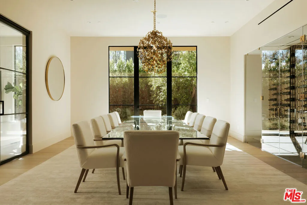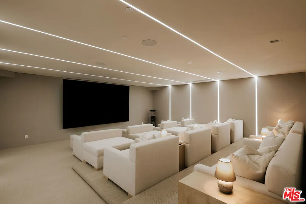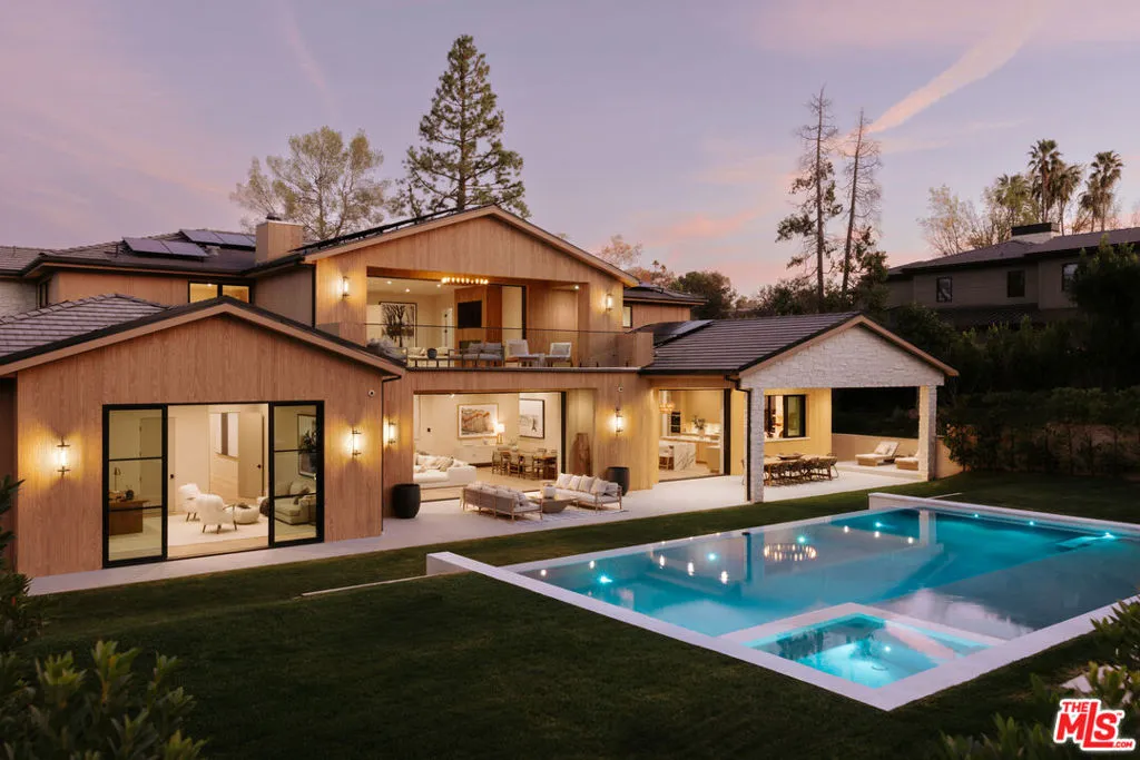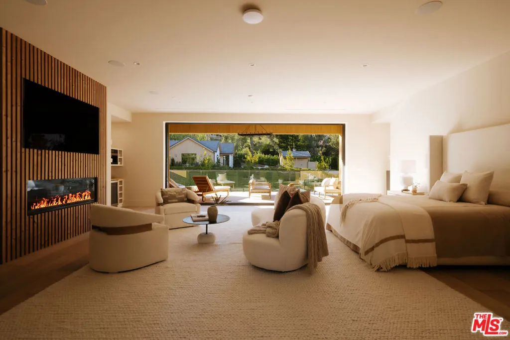 Set within the exclusive gates of Hidden Hills, this modern estate unfolds like a private resort, offering over 16,000 square feet of effortless luxury with a dramatic entry and sculptural staircase that open to expansive living spaces and a statement kitchen featuring dual waterfall islands, premium appliances, and a fully outfitted chef's kitchen; glass walls slide away to reveal a resort-style backyard complete with a reverse infinity-edge pool, spa, fire features, intimate lounge areas, and a refined guest house, while the primary suite provides a calm, indulgent retreat with a private terrace, spa-inspired bath, and dual custom closets, and the lower level enhances everyday living with a wellness-focused escape that includes a fitness studio, theater, cocktail bar, game room, sauna, steam room, cold plunge, and massage suiteprivate, polished, and impeccably executed, this home represents luxury living at its highest level in Hidden Hills.