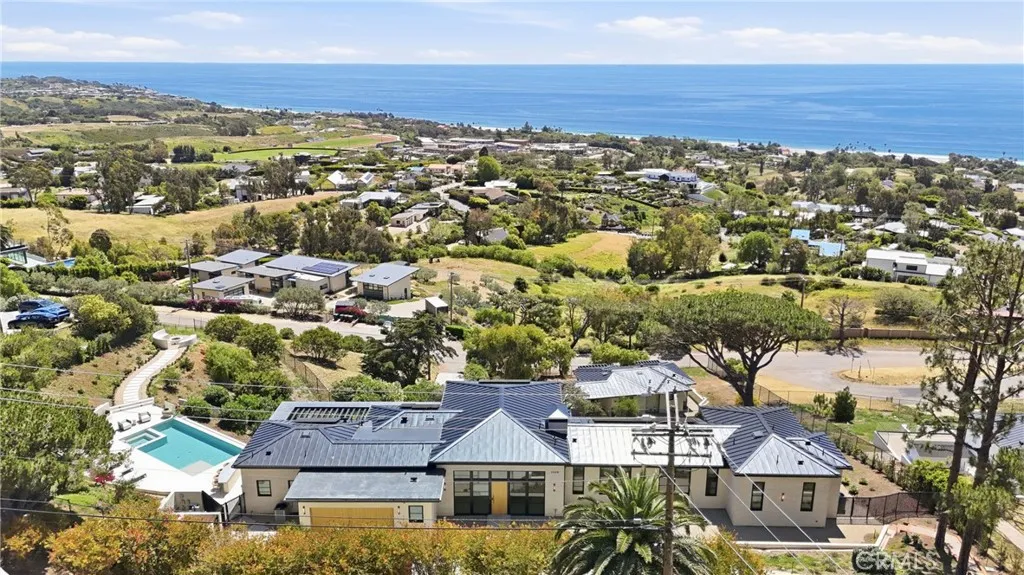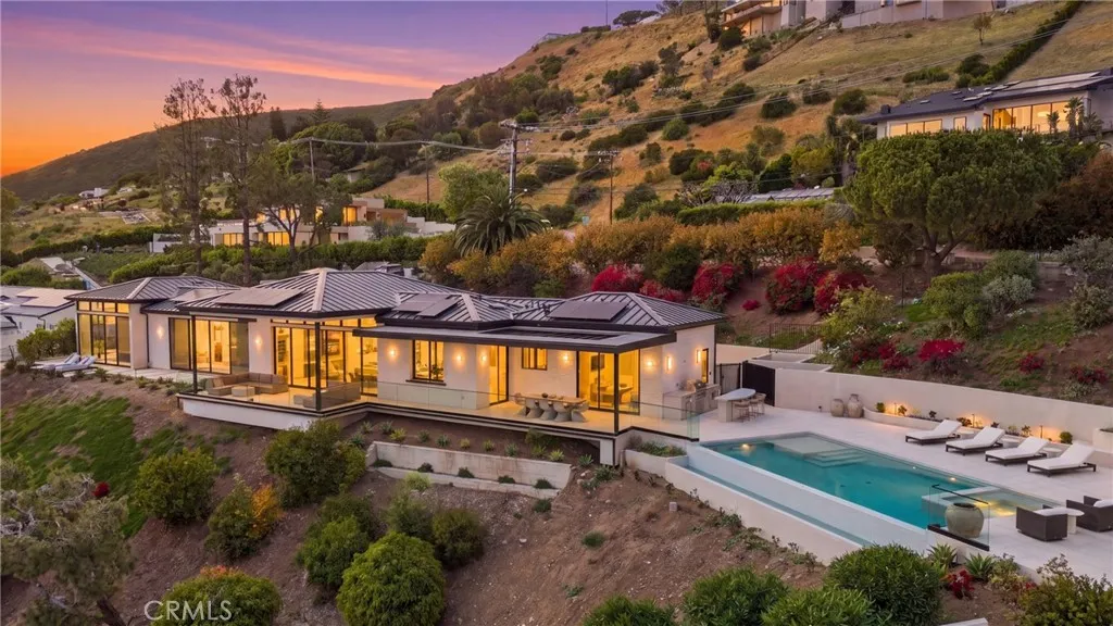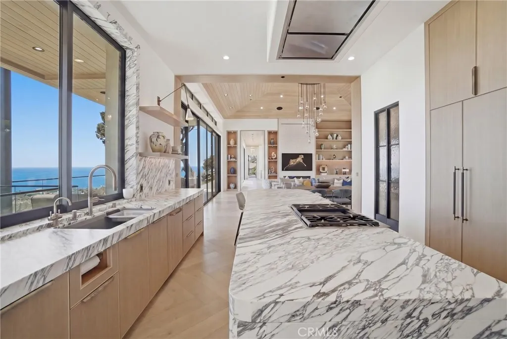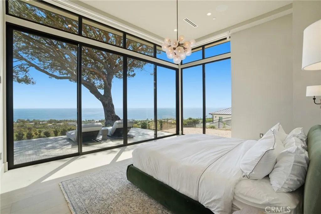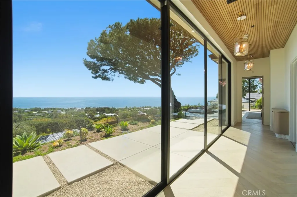 Experience elevated coastal living in this newly built modern transitional estate perfectly positioned to capture sweeping panoramic ocean and sunset views. Designed with intention by a discerning builder—not a spec home—this home showcases an exceptional blend of luxury, craftsmanship, warmth and comfort. Expansive walls of glass flood the home with natural light, while refreshing ocean breezes flow throughout, seamlessly connecting indoor spaces to the surrounding coastal beauty. The interior features exquisite plank/herringbone wood flooring, complemented by custom-stained white oak cabinetry and interior doors. Lavish Italian marble—including Calacatta Monet and Calacatta Ovulato—adds refined elegance throughout. The chef’s kitchen is outfitted with a top-of-the-line Thermador appliance package, including a built-in coffee machine, and a stunning pocket sink window opening to ocean breezes and endless views. Thoughtfully designed as a single-level home, all bedrooms are ensuite, providing ultimate privacy and comfort, and the property is offered fully furnished with curated, high-end pieces throughout. The home is equipped with a state-of-the-art Lutron smart system controlling lighting, shades, and climate, alongside a multi-zone Sonos sound system. Antique brass engraved switches and a statement rain chandelier by a renowned glass designer add distinctive character. The primary suite is a private retreat featuring touch-control blackout shades, breathtaking ocean views, and direct access to an outdoor seating area shaded by a stunning pine tree—perfect for quiet mornings or sunset relaxation. Roman clay walls add warmth and texture, elevating the space with a refined, designer finish. The spa-inspired bathroom includes a beauty vanity, soaking tub, and dual sink vanity. Outdoor living is equally exceptional, offering multiple seating areas, an outdoor dining table for al fresco meals, and an expansive loggia space. Enjoy the infinity-edge pool overlooking the ocean, a firepit lounge, and a fully equipped BBQ island—ideal for entertaining or unwinding in style. Lush landscaping and ambient lighting create a serene and inviting atmosphere day and night. Located in the desirable Malibu Park neighborhood, the home is just a 20-minute walk to the beach and Trancas. This meticulously furnished residence offers a rare opportunity for a short-term stay (30–90 days), for guests seeking a luxurious, private, and serene coastal experience.