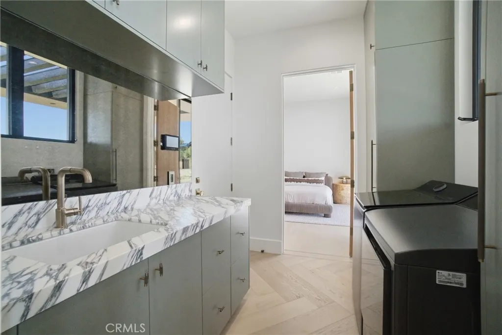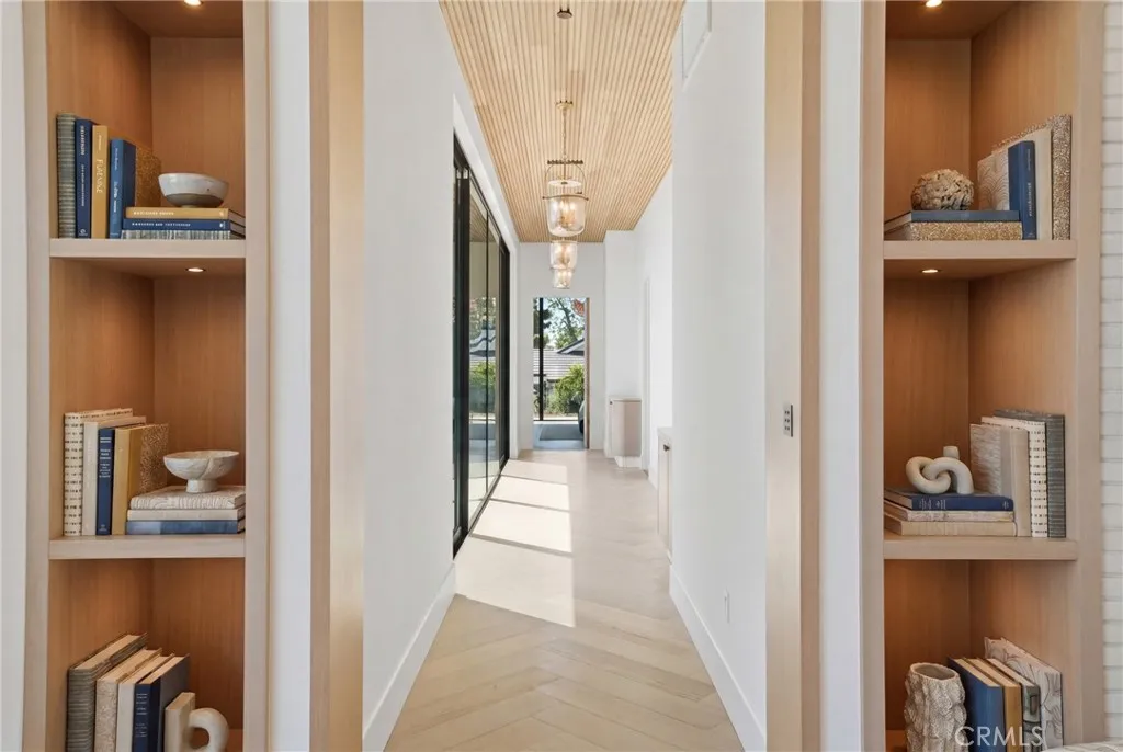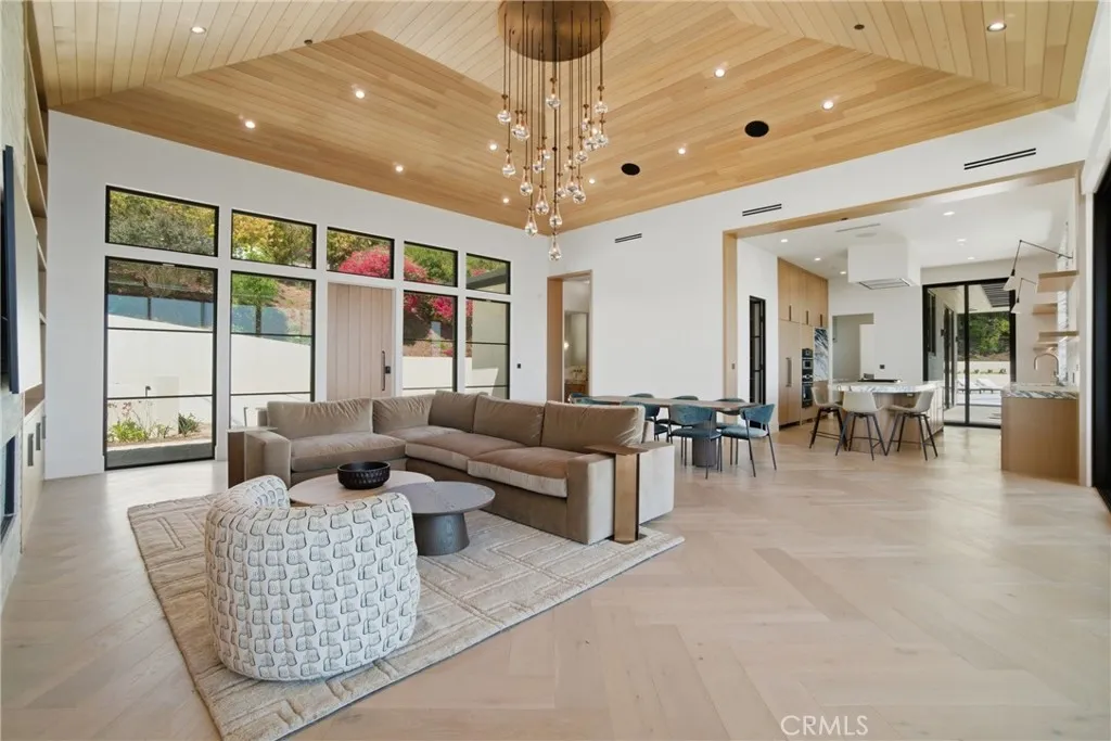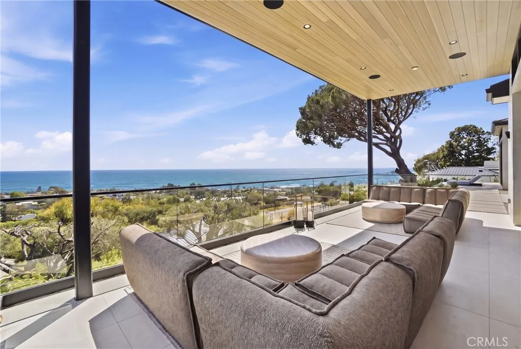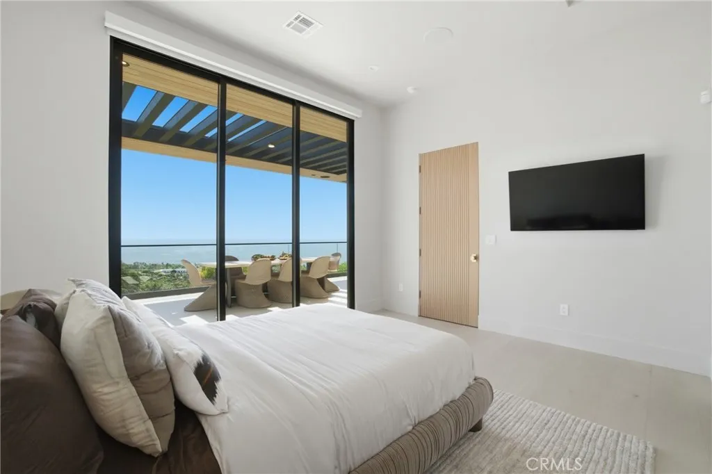 Experience elevated coastal living in this newly built modern transitional estate perfectly positioned to capture sweeping panoramic ocean and sunset views. Designed with intention by a discerning builder—not a spec home—this home showcases an exceptional blend of luxury, craftsmanship, warmth and comfort. Expansive walls of glass flood the home with natural light, while refreshing ocean breezes flow throughout, seamlessly connecting indoor spaces to the surrounding coastal beauty. The interior features exquisite plank/herringbone wood flooring, complemented by custom-stained white oak cabinetry and interior doors. Lavish Italian marble—including Calacatta Monet and Calacatta Ovulato—adds refined elegance throughout. The chef’s kitchen is outfitted with a top-of-the-line Thermador appliance package, including a built-in coffee machine, and a stunning pocket sink window opening to ocean breezes and endless views. Thoughtfully designed as a single-level home, all bedrooms are ensuite, providing ultimate privacy and comfort, and the property is offered fully furnished with curated, high-end pieces throughout. The home is equipped with a state-of-the-art Lutron smart system controlling lighting, shades, and climate, alongside a multi-zone Sonos sound system. Antique brass engraved switches and a statement rain chandelier by a renowned glass designer add distinctive character. The primary suite is a private retreat featuring touch-control blackout shades, breathtaking ocean views, and direct access to an outdoor seating area shaded by a stunning pine tree—perfect for quiet mornings or sunset relaxation. Roman clay walls add warmth and texture, elevating the space with a refined, designer finish. The spa-inspired bathroom includes a beauty vanity, soaking tub, and dual sink vanity. Outdoor living is equally exceptional, offering multiple seating areas, an outdoor dining table for al fresco meals, and an expansive loggia space. Enjoy the infinity-edge pool overlooking the ocean, a firepit lounge, and a fully equipped BBQ island—ideal for entertaining or unwinding in style. Lush landscaping and ambient lighting create a serene and inviting atmosphere day and night. Located in the desirable Malibu Park neighborhood, the home is just a 20-minute walk to the beach and Trancas. This meticulously furnished residence offers a rare opportunity for a short-term stay (30–90 days), for guests seeking a luxurious, private, and serene coastal experience.