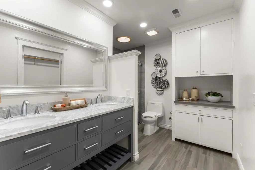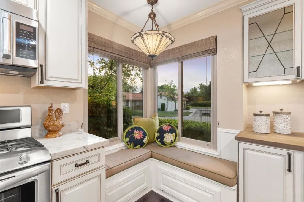 Welcome to one of the most private settings at The Villages Golf and Country Club, an active 55+ gated community. This stunning 2-bedroom 1 1/2 -bath single-level condo has been elegantly updated throughout, with an incredible open-concept and a ton of natural light. The kitchen is a chef's dream with high-end stainless steel appliances and granite countertops.. Freshly painted interior, beautiful engineered hardwood flooring, central heating & cooling, dual pane windows, and convenient indoor laundry. Plenty of storage space available. The living room has vaulted ceilings, fireplace, and sliding door access to the peaceful, private patio, surrounded by greenery and perfect for entertaining or just relaxing. The Villages is one of the only guard-gated, 24/7 security developments in the Bay Area with meticulously manicured grounds surrounding the 13 Villages. (1 person must be 55+) Enjoy all the wonderful amenities of the community, which include Tennis Courts, Golf, Pickleball, Bocce Ball, Swimming Pools, Fitness Facility, walking trails, clubhouse, and many organized social activities. There are so many wonderful features of this home that you won't want to miss. This home is move-in ready and a must-see! By appointment only - call us today to learn more!