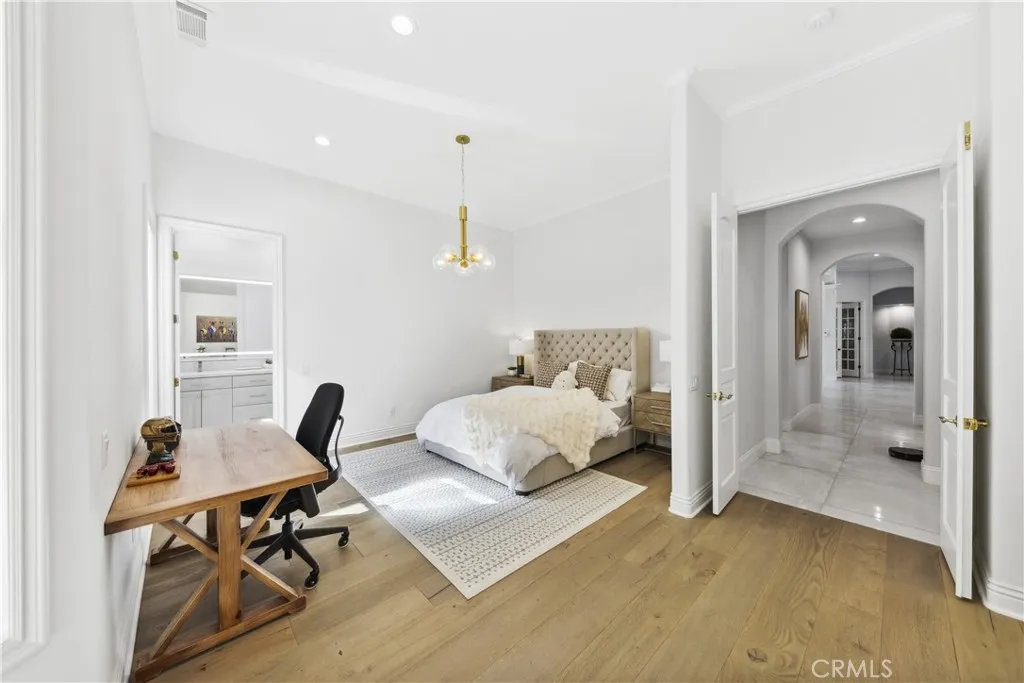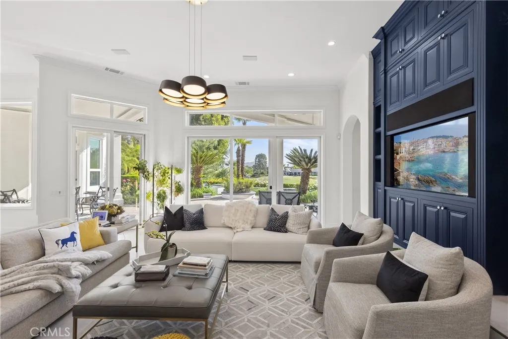 There are homes, and then there are places designed for a different pace of life. Set within the gates of the exclusive Bear Creek Country Club, this private Murrieta retreat offers a level of elegance and attention to detail more commonly found in Orange County or Los Angeles, yet with a sense of space and calm that those markets rarely allow. Positioned on an expansive lot of nearly 32,000 square feet and set apart above the fairway, the home enjoys sweeping views, remarkable privacy, and a setting that feels quietly elevated. From the circular drive to the moment you step inside, there's a sense that everything here has been thoughtfully considered. And it has. This is not a cosmetic remodel; it's a complete reimagining. Every system has been addressed, from plumbing and electrical to the finest design details. Flooring, textures, fixtures, lighting, windows, and custom closet systems have all been replaced or refined, guided by a renowned Las Vegas designer whose influence is seen in the home's clean lines and understated sophistication. Offering 4 bedrooms, 4 baths, a dedicated office, and approximately 4,407 square feet, the layout balances openness with intention. Natural light fills the living spaces, while multiple fireplaces and an indoor bar create an easy rhythm for both everyday living and entertaining. The office, complete with built-in desk and shelving, offers a quiet place to work or retreat without ever feeling disconnected from the home. Outdoors, the property continues to impress. An outdoor kitchen, mature fruit trees, and open space create an environment designed for both relaxation and gathering, all overlooking one of the most beautiful fairway views in the community. An oversized three-car garage adds function to the home's design, while the guard-gated setting provides security and ease, making it an ideal lock-and-leave residence or a refined escape from busier coastal living. And perhaps what makes this property most compelling is what it represents. A home of this caliber, this level of finish, privacy, and setting would command significantly more in Orange County or along the coast. Here, it becomes something else entirely. A place to step away, without giving anything up.