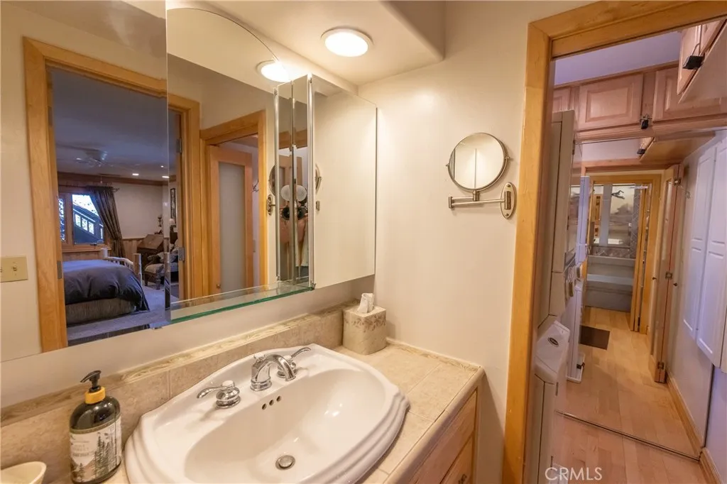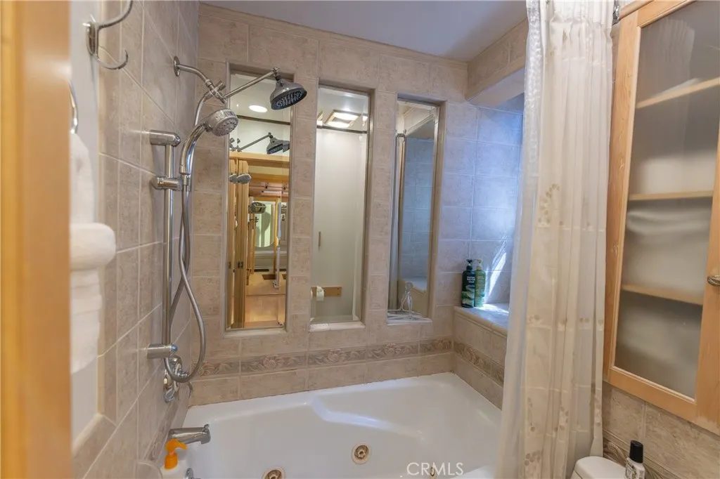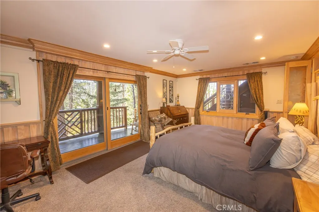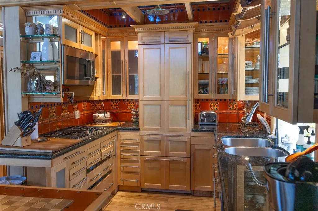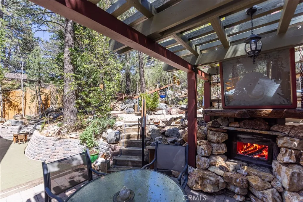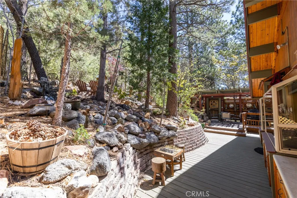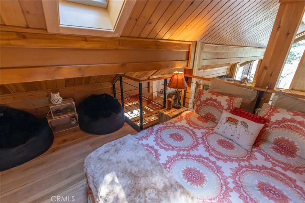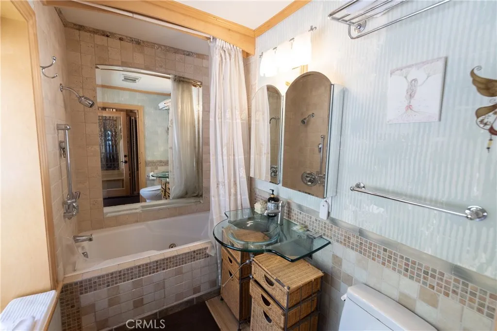 Perched among the trees in sought-after Moonridge, this one-of-a-kind “Tree of Life” retreat is far more than a cabin—it’s an enchanted artistic and writer’s retreat, a living work of art. This 2-bedroom with a loft, 2-bath artisan-crafted home offers a rare blend of architectural beauty, natural surroundings, and unforgettable views of the lake and ski slopes, all just minutes from Bear Mountain. Originally handcrafted over a decade by a master craftsman as a tribute to his wife, every inch of this home tells a story. Custom woodwork, intricate glass details, and curated artistic elements are thoughtfully woven throughout, highlighted by the stunning “Tree of Life” mosaic—an irreplaceable centerpiece that defines the home’s character. The open-concept living space is warm and inviting, designed to bring the outdoors in with expansive windows framing treetop vistas. A custom kitchen features high-end appliances, unique finishes, and a handcrafted island, flowing seamlessly into the dining and living areas—perfect for entertaining, quiet mountain evenings, or creative inspiration. The main-level “Tree of Life” suite serves as a romantic and artistic sanctuary, ideal for reflection, writing, or peaceful escape. It features a cozy queen bed and one of the home’s most breathtaking focal points. This room showcases extraordinary custom leaded glasswork and three handcrafted cedar closet doors, each weighing approximately 200 pounds and adorned with an intricate mosaic of crushed stone, glass, and tile. Taking over a year to complete, this remarkable installation stands as a true testament to craftsmanship, artistry, and devotion. Step outside to find a private, serene setting complete with a landscaped garden, tranquil waterfall, gazebo, and spa—creating a truly enchanted retreat atmosphere surrounded by nature, perfect for artists, writers, or anyone seeking inspiration and escape. Homes of this caliber and character rarely come to market. When they do, they command attention and often sell well above typical market comparisons due to their irreplaceable design and craftsmanship. There truly is nothing else like it in Big Bear. Whether you’re looking for a personal escape, a luxury short-term rental, or a standout investment, this property offers an opportunity that simply cannot be replicated. Don’t miss your chance to own one of Big Bear’s most iconic and unforgettable homes.