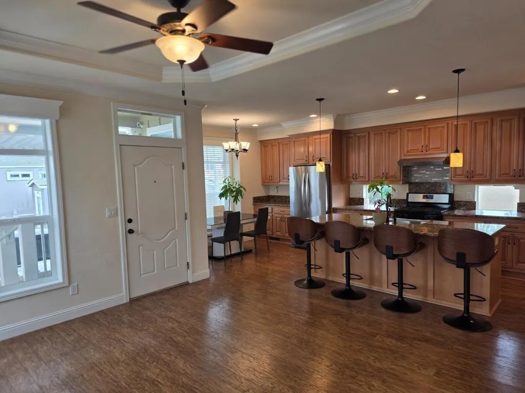 Beautiful and Spacious home located in Silver Creek Mobile Home Estates. Built in 2017, featuring 3 bedrooms and 3 full baths, with two large bedrooms and large family room. High ceiling, Kitchen granite counter top, Laminate flooring Stainless Steel appliances, refrigerator, oven, stove, central heated & Shed.