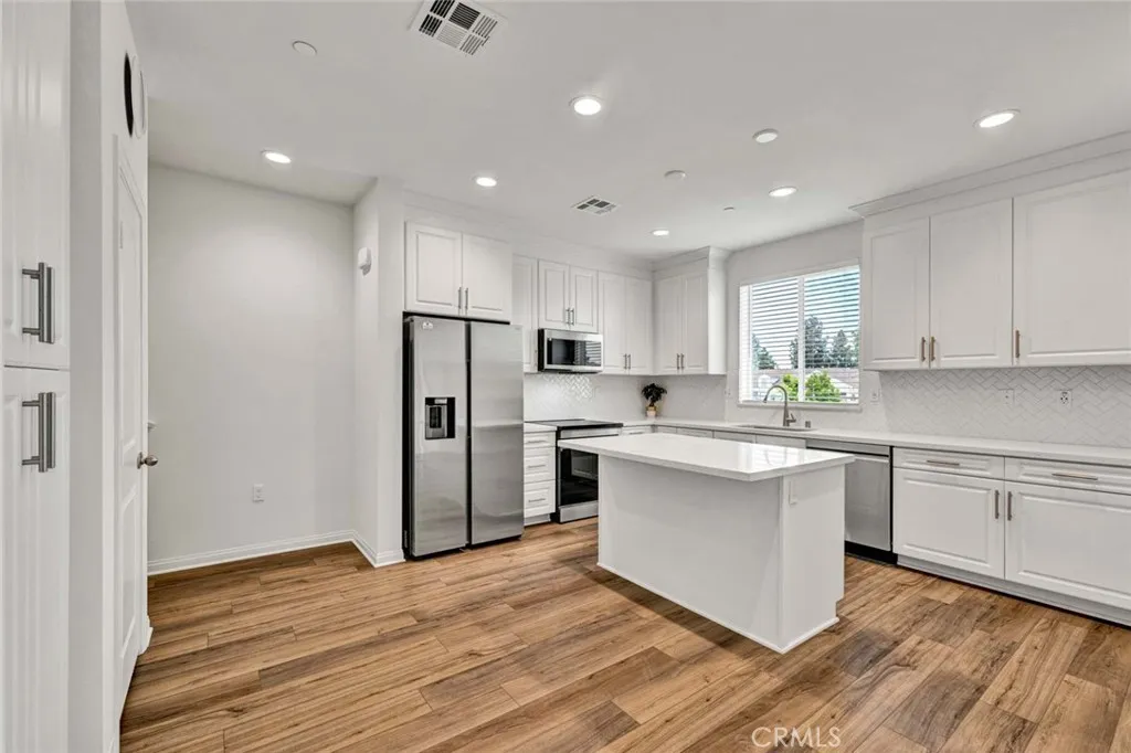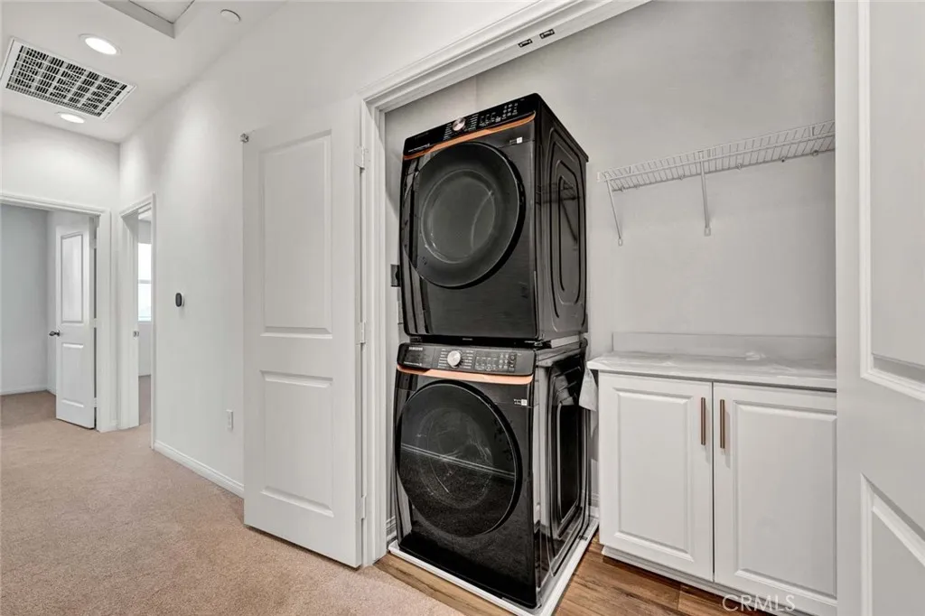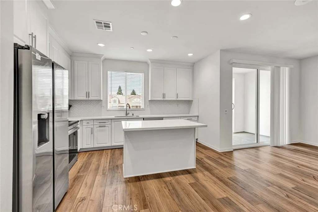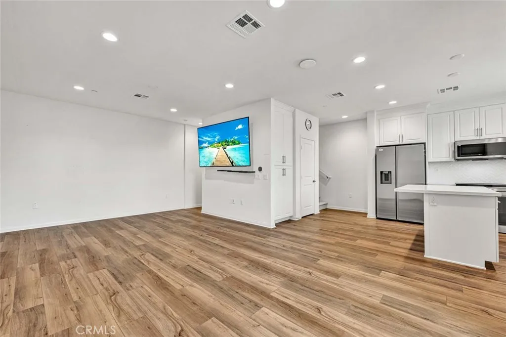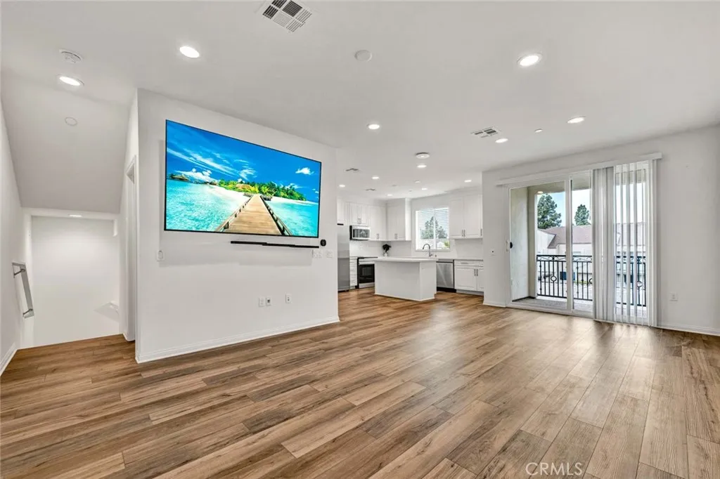 Welcome to this brand-new smart home in the Sunflower Community of Anaheim, offering a clean, modern design and an open, light-filled layout. This 2-bedroom, 2.5-bath residence is thoughtfully upgraded throughout and ready for immediate move-in. The main living space features a spacious open-concept design with high ceilings, recessed lighting, and wide-plank flooring that flows seamlessly from the living area into the kitchen. Large sliding doors open to a private covered balcony, creating an easy indoor-outdoor connection and a comfortable place to unwind. The kitchen is both functional and stylish, complete with a large center island, quartz countertops, designer backsplash, stainless steel appliances, and abundant cabinetry. The layout is ideal for everyday living while still offering a clean, modern aesthetic. Upstairs, both bedrooms are generously sized and each features its own private en-suite bathroom, offering ideal comfort and privacy. The primary suite includes dual vanities, a walk-in closet, and a well-appointed bath, while a dedicated laundry area with built-in cabinetry adds everyday convenience. Additional features include an attached two-car garage with overhead storage and electric vehicle charging capability. The home is equipped with solar panels to help reduce electricity costs, along with integrated smart home features for added efficiency and ease. Located within walking distance to Pioneer Park and just minutes from the 5, 57, and 91 freeways, this home offers both convenience and comfort in one of Anaheim’s newer communities.
