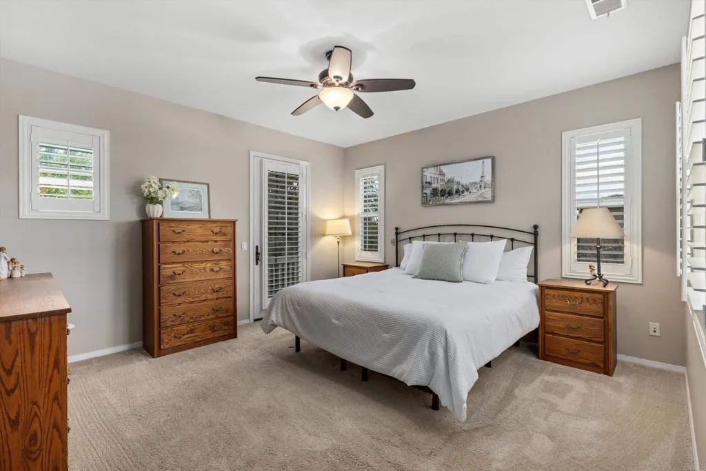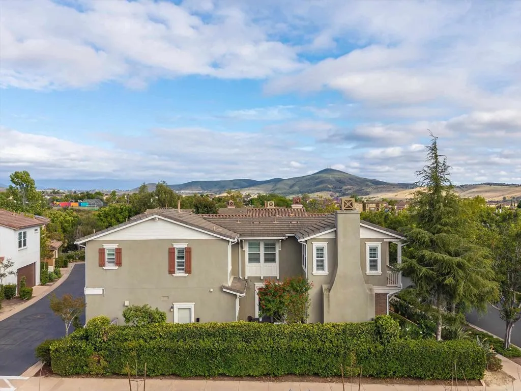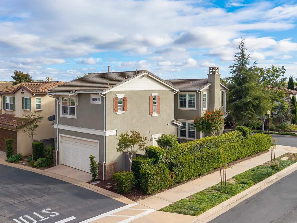 Classic American Craftsman Charm Meets Modern Luxury Living! A rare elevated corner lot location means that each morning you wake up to sweeping views of the tree-lined street and hills from the private walk-out balcony of your primary suite. With its iconic brick façade and welcoming front porch, this home makes a statement before you ever step inside! The main living level is designed for how people actually live today. An open, flowing floor plan connects the living room to the dining area and a chef-inspired kitchen with a generous center island, perfect for weekend brunches, homework sessions, or entertaining friends. A sliding glass door extends the kitchen seamlessly to a private paver patio, ideal for al fresco dining and summer gatherings. With no neighbor to one side, the corner lot setting delivers a rare sense of space and privacy in a community setting. Thoughtful upgrades throughout elevate everyday living... rich hardwood floors, custom lighting, and classic wood shutters create a warm, curated aesthetic that feels both elevated and livable. The fully remodeled primary bathroom is a true retreat featuring quartz countertops, a designer subway tile shower, and new ceramic tile floors. Two secondary bedrooms share a convenient Jack-and-Jill bathroom, a layout that works beautifully for families and guests alike. Del Sur is consistently recognized as one of San Diego's premier communities for good reason. Enjoy multiple resort-style pools, beautifully maintained parks, miles of hiking and walking trails, and a dedicated dog park. A vibrant calendar of community events brings neighbors together throughout the year, creating the kind of genuine neighborhood connection that's hard to find. The community is served by some of the region's highest-ranked schools, making this an exceptional place to put down roots and grow.